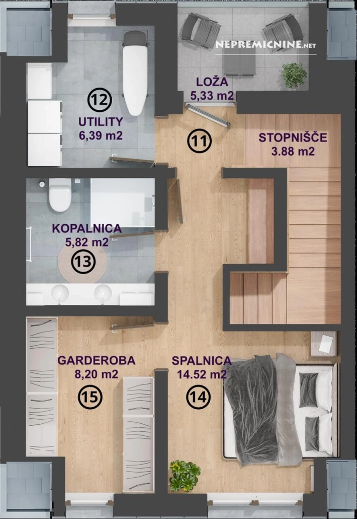 Ontdek deze prachtige moderne gezinswoning in het rustige en goed onderhouden dorp Vir bij Domžale. Deze nieuwbouw rijtjeshuis, voltooid in september 2025, biedt een unieke kans voor gezinnen en individuen die willen genieten van een serene omgeving met gemakkelijke toegang tot alle belangrijke voorzieningen. De woning is momenteel in de derde verlengde bouwfase, met de mogelijkheid tot sleutelklare afwerking binnen ongeveer zes maanden. De woning is gunstig gelegen op een zonnige zuidoostelijke locatie en biedt een comfortabele leefruimte met een moderne indeling. Nabijgelegen voorzieningen zijn onder andere het winkelcentrum Arkadia op slechts 200 meter afstand, de snelweg op 2 km afstand, en scholen en kinderdagverblijven binnen een straal van 1,3 km. De woning beschikt over drie slaapkamers, twee badkamers, een ruime woonkamer met eetkamer en keuken, en een tuin met een zuidelijke oriëntatie. Met drie eigen parkeerplaatsen en een energielabel B2, biedt deze woning een uitstekende kans voor comfortabel wonen in de nabijheid van Domžale en Ljubljana.