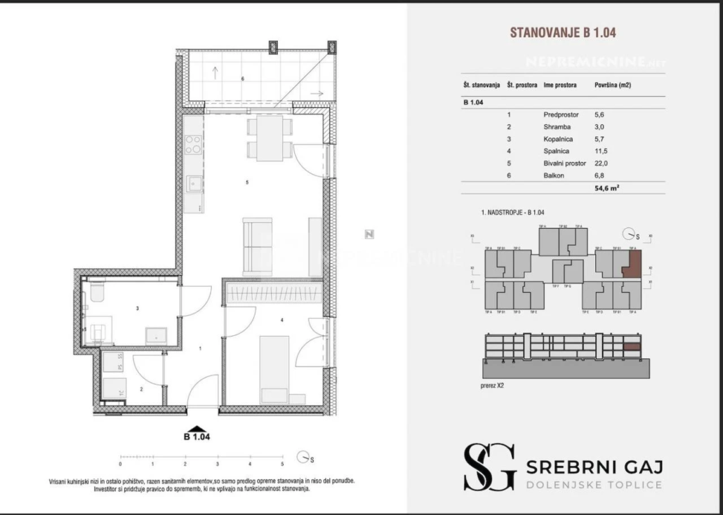 Ontdek de kans om een prachtig 2-kamer appartement te bezitten in de serene omgeving van Dolenjske Toplice. Gelegen in de nieuw ontwikkelde wijk SREBRNI GAJ, biedt dit appartement een moderne levensstijl met een gemeenschappelijke ruimte op de begane grond en eigen parkeergelegenheid. De nabijheid van thermale baden biedt uitgebreide medische en wellnessdiensten, terwijl het charmante stadscentrum tal van sociale en culturele activiteiten biedt. Het appartement is voorzien van vloerverwarming, een eigen warmtepomp en lokale rekuperatoren. De regio Dolenjska staat bekend om zijn prachtige natuur en culturele bezienswaardigheden, en biedt gemakkelijke toegang tot winkels, restaurants en openbaar vervoer.