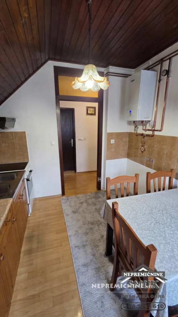 Dit prachtige 2-kamer appartement van 50,2 m² is gelegen in een rustige omgeving in Kranjska Gora, een van de meest gewilde toeristische bestemmingen in Slovenië. Het appartement bevindt zich op de tweede verdieping van een goed onderhouden meergezinsgebouw en biedt een eigen parkeerplaats van 13 m². Het gebouw is in 2015 gerenoveerd met een nieuwe thermische schil, wat zorgt voor een energiezuinige woning met een energielabel D. De indeling van het appartement omvat een hal, een keuken met een nieuwe Vaillant elektrische kachel, een woonkamer, een slaapkamer, een badkamer met toilet en een berging. De ligging is ideaal, op loopafstand van het centrum van Kranjska Gora, met gemakkelijke toegang tot winkels, restaurants en wandelpaden. Kranjska Gora is beroemd om zijn skigebied en biedt tal van recreatieve activiteiten, zowel in de zomer als in de winter. De regio Gorenjska staat bekend om zijn adembenemende Alpenlandschap en biedt uitstekende mogelijkheden voor wandelen, fietsen en skiën. Dit appartement is perfect voor zowel permanente bewoning als vakantieverhuur, gezien de nabijheid van toeristische attracties en voorzieningen.