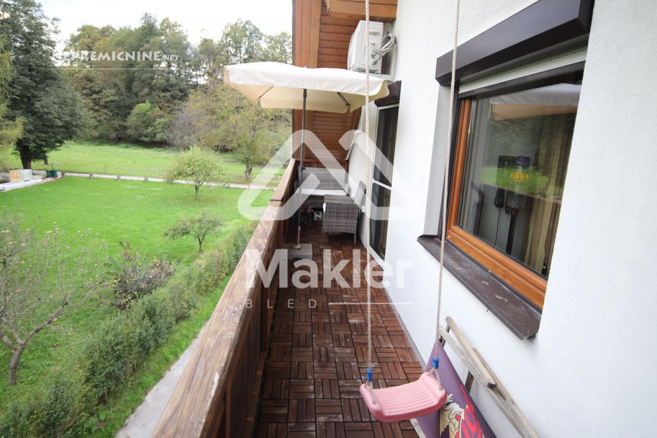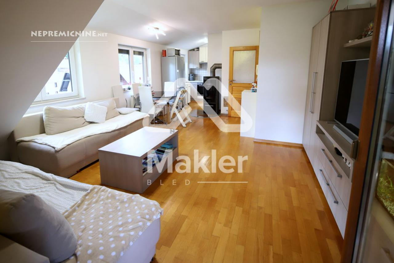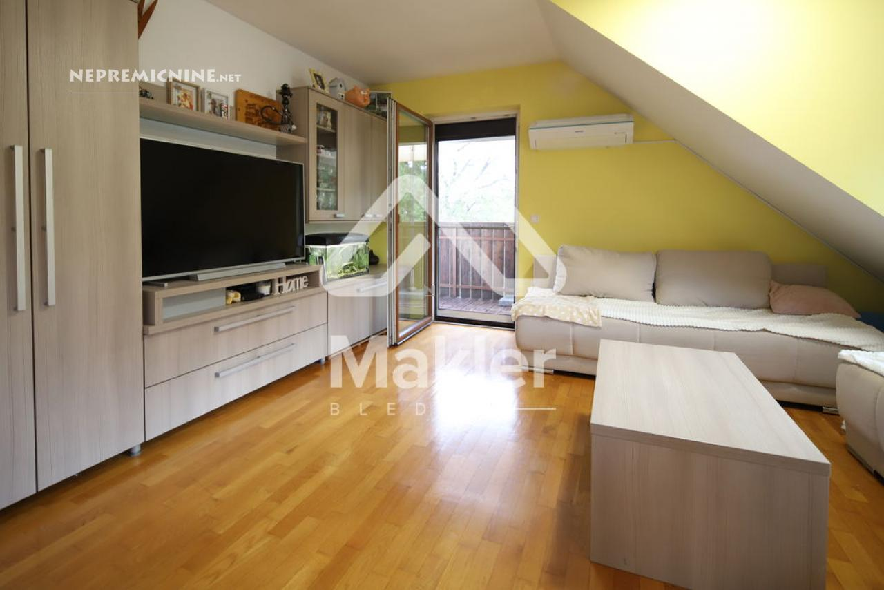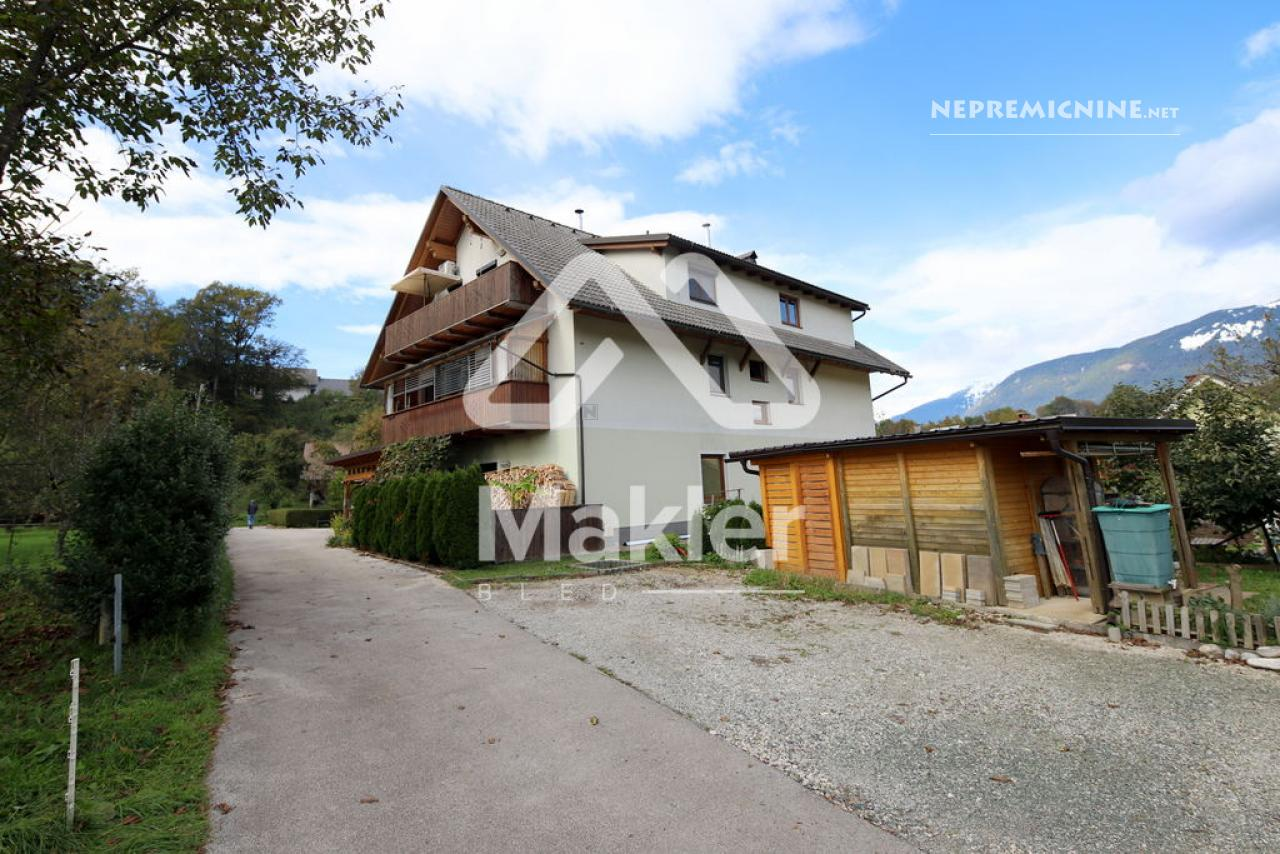 Dit prachtige 2,5-kamer appartement in Brezje, gelegen in de regio Gorenjska, biedt een unieke kans voor diegenen die op zoek zijn naar een rustige en zonnige woonomgeving. Het appartement bevindt zich in een gebouw met slechts vijf wooneenheden, gebouwd in 2008 met hoogwaardige klassieke bouwmaterialen. Het appartement is gelegen op de bovenste verdieping, wat zorgt voor een prachtig uitzicht op de omgeving. Het beschikt over een ruime woonkamer met veel natuurlijk licht, een keuken, eetkamer, en een zonnig balkon. Er zijn twee slaapkamers, een kinderkamer en een badkamer. Het appartement heeft ook een eigen tuin van 75 m², ideaal voor buitenactiviteiten en ontspanning. De locatie biedt gemakkelijke toegang tot de stad Radovljica, met tal van recreatiemogelijkheden en voorzieningen in de buurt. Het appartement is voorzien van een airconditioningsysteem en een houtkachel voor verwarming. Een eigen parkeerplaats onder een houten carport is inbegrepen. Dit appartement is perfect voor een gezin dat op zoek is naar een comfortabele en praktische woonruimte in een prachtige natuurlijke omgeving.