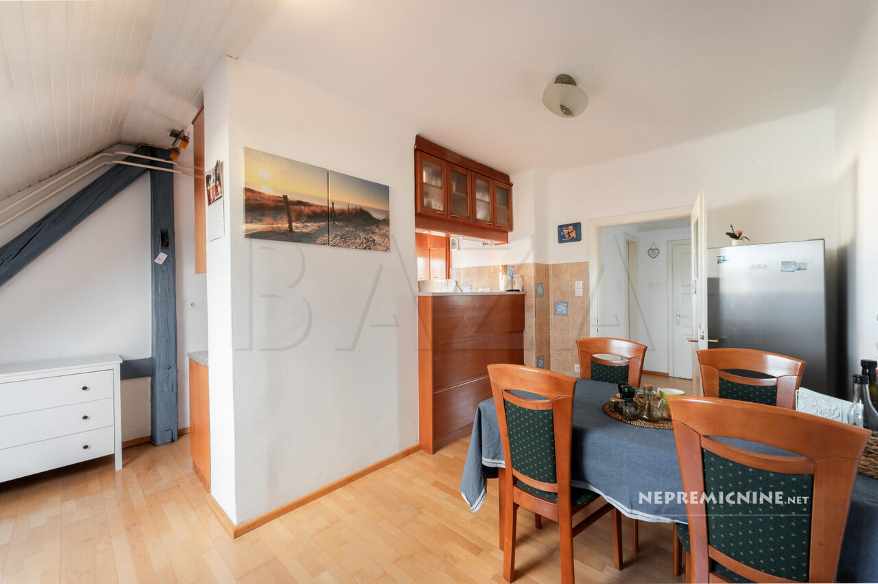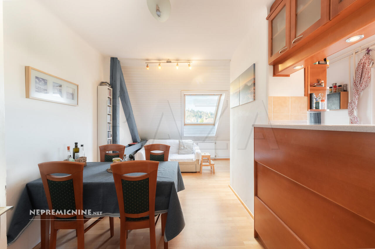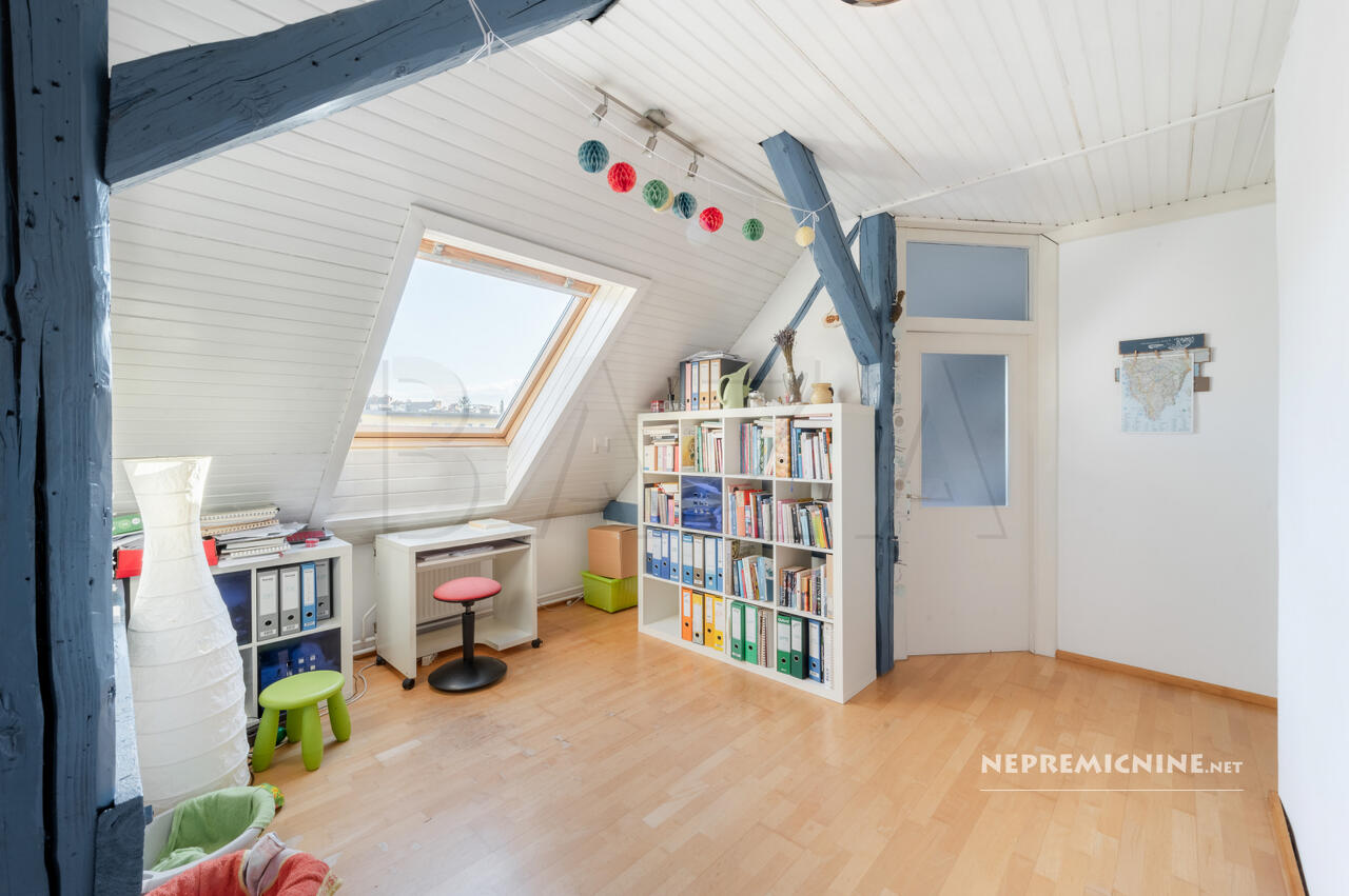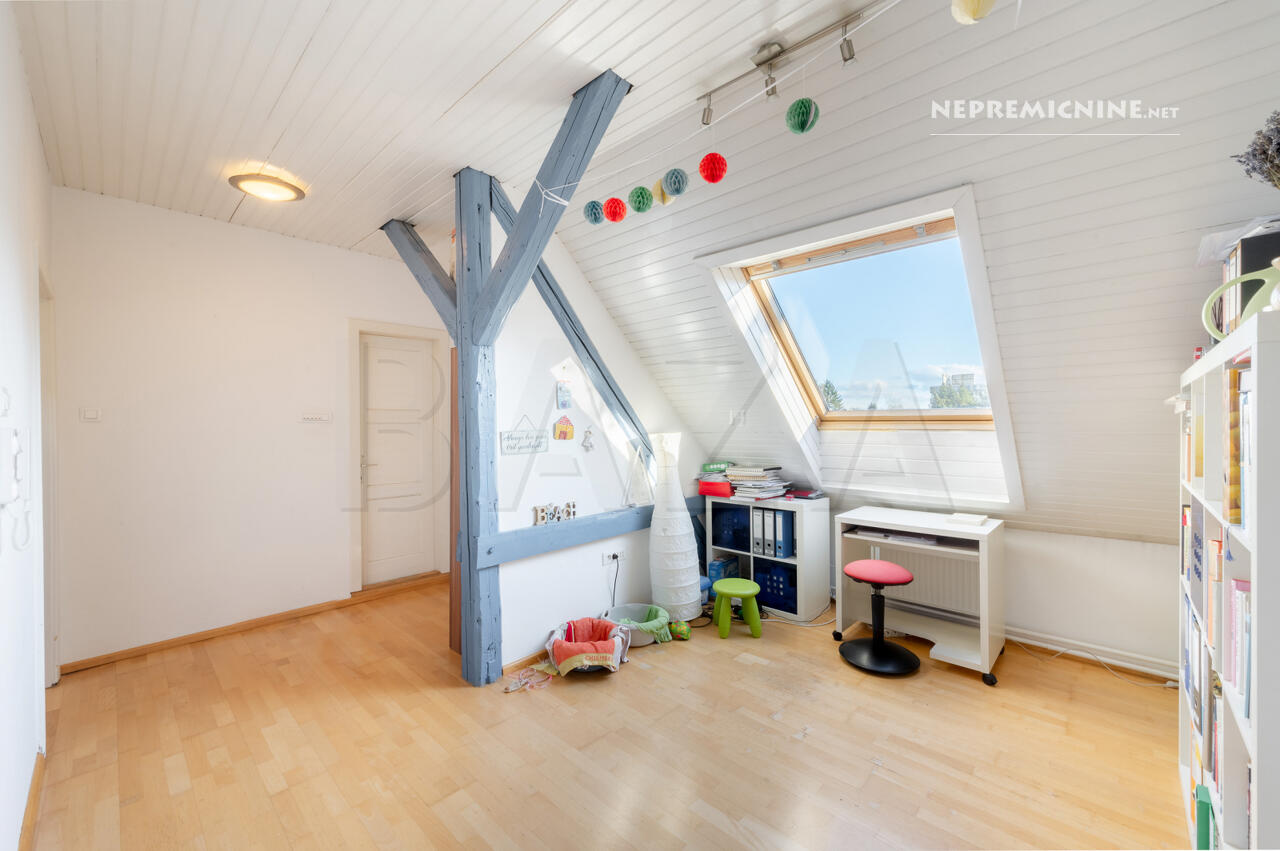 Dit prachtige 3-kamer appartement in Rožna Dolina, Ljubljana, biedt een unieke kans om te wonen in een charmante en historische omgeving. Gelegen in een goed onderhouden meergezinswoning zonder lift, biedt dit lichte zolderappartement een functionele indeling met een totale oppervlakte van 89,9 m². Het appartement beslaat de gehele bovenste verdieping en beschikt over een keuken met eetkamer en woonkamer, een badkamer, een berging, twee slaapkamers en een hal die kan dienen als kantoor of leesruimte. De grotere slaapkamer kan worden opgedeeld in twee aparte kamers. Het appartement is in 2005 gerenoveerd en de gevel is in 2018 vernieuwd. Het beschikt over een eigen parkeerplaats, een kelder en een garage, evenals gedeelde toegang tot gemeenschappelijke ruimtes en de binnenplaats. De locatie in Rožna Dolina biedt gemakkelijke toegang tot winkels, openbaar vervoer, een kleuterschool, een apotheek en een gezondheidscentrum. De regio Ljubljana staat bekend om zijn rijke geschiedenis en culturele bezienswaardigheden, zoals het kasteel van Ljubljana en de pittoreske oude binnenstad. Het openbaar vervoer is goed geregeld met nabijgelegen LPP-haltes, en de buurt biedt een rustige en groene omgeving met veel voorzieningen binnen handbereik.