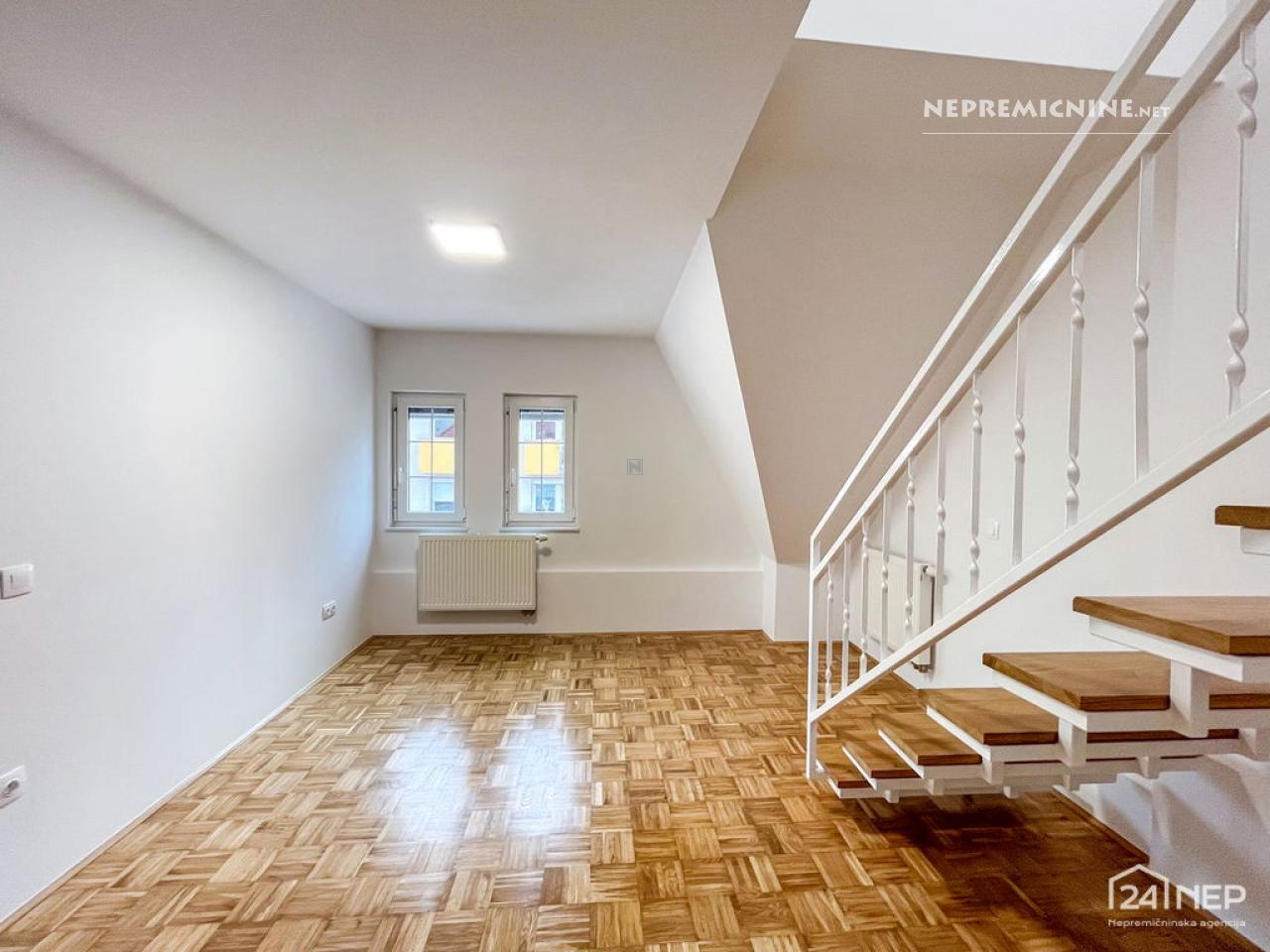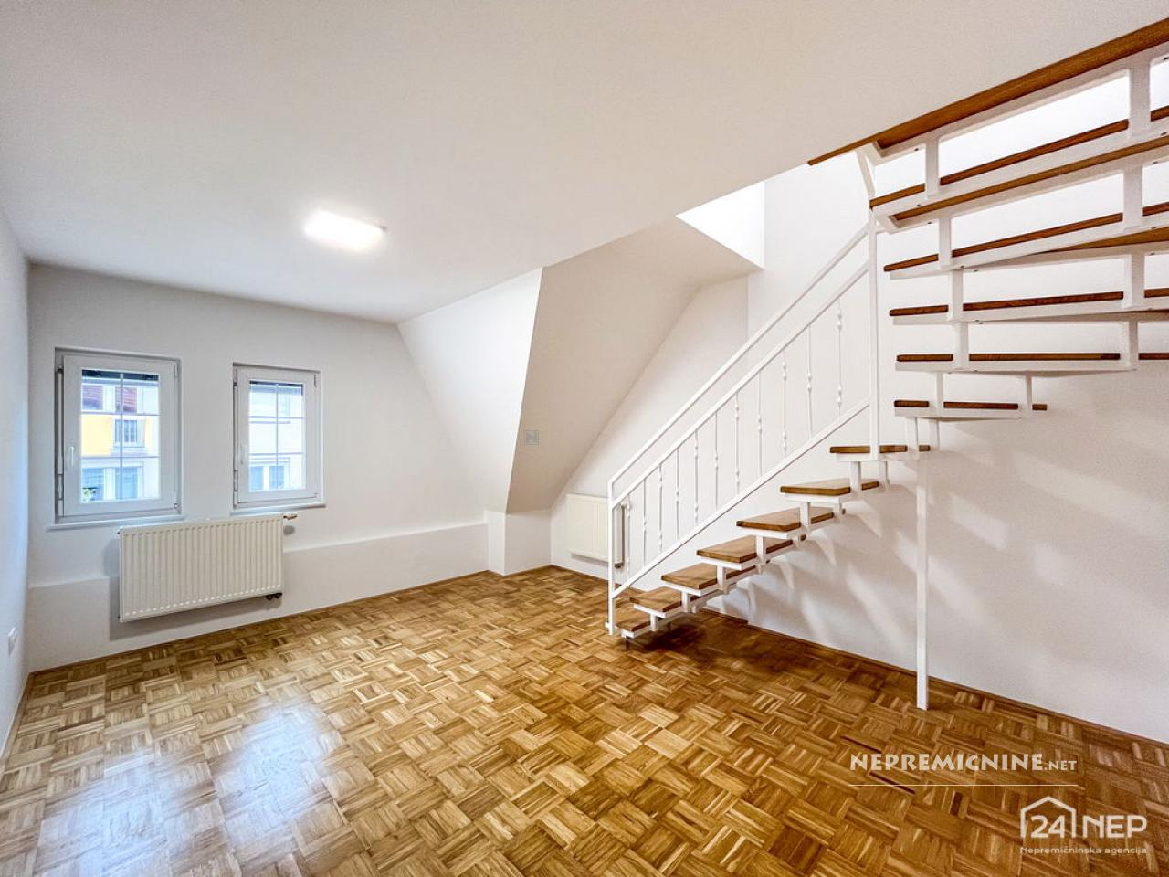 Ontdek dit volledig gerenoveerde 2-kamer appartement met zolder in het centrum van Maribor, gelegen aan de gewilde Kočevarjeva straat. Dit moderne en lichte appartement is ideaal voor zowel bewoning als investering. Het biedt een unieke kans om te wonen op loopafstand van middelbare scholen, universiteiten en alle voorzieningen van het stadscentrum. Het appartement is gelegen op de tweede verdieping zonder lift en beschikt over een zolderverdieping. De indeling omvat een entreehal, badkamer met toilet, keuken met eetkamer en een lichte woonkamer op de benedenverdieping, en een slaapkamer en een kantoor op de zolder. Het appartement is voorzien van parket en keramische vloeren, en beschikt over aansluitingen voor elektriciteit, water, telefoon en internet. Verwarming wordt verzorgd door een centrale ketel op biomassa en een airconditioner. Parkeren is mogelijk voor het gebouw met een vergunning. De rustige en goed onderhouden buurt biedt gemakkelijke toegang tot scholen, universiteiten, winkels en buslijnen. Dit appartement is perfect voor jonge stellen, studenten, kleine gezinnen of investeerders. Mis deze kans niet om een woning met karakter in het hart van de stad te bezitten!