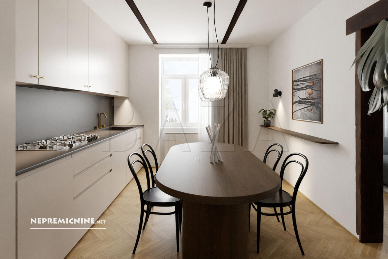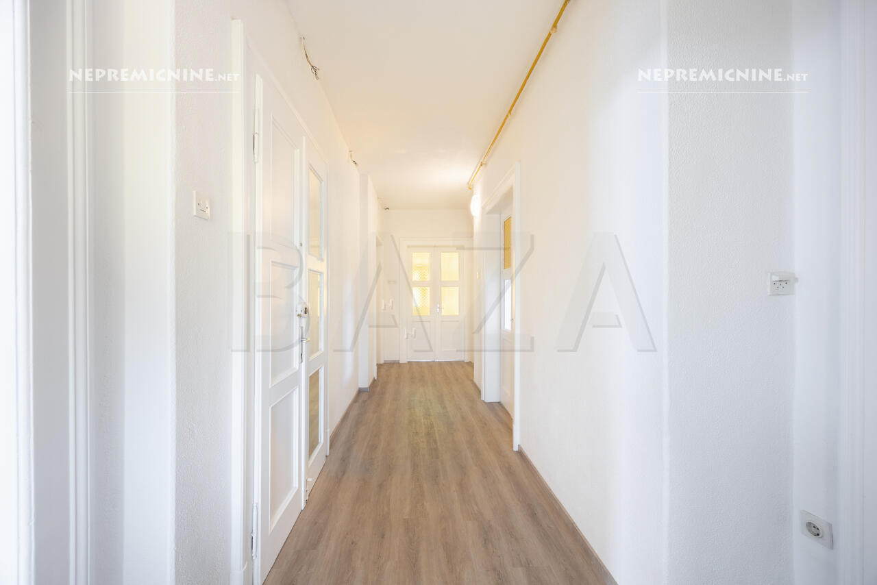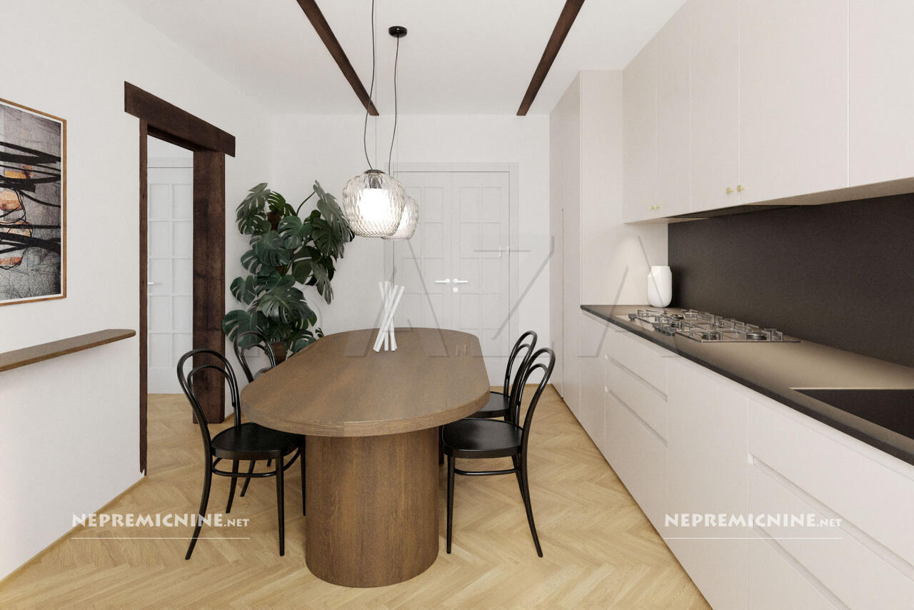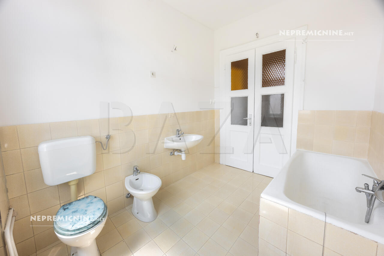 Dit prachtige 4-kamer appartement, gelegen in het centrum van Postojna, biedt een unieke kans om te wonen in een architectonisch indrukwekkend gebouw uit 1930. Het appartement is gedeeltelijk gerenoveerd en biedt een royale woonoppervlakte van 133,4 m². De indeling omvat een ruime hal, keuken, woonkamer, drie slaapkamers, een badkamer en een studeerkamer. De hoge plafonds zijn versierd met rustieke elementen en voorzien van gipsplaten voor extra thermische en geluidsisolatie. Het appartement is licht en luchtig dankzij de oriëntatie naar alle windrichtingen. De locatie biedt snelle toegang tot de snelweg, waardoor Ljubljana slechts 30 minuten rijden is. In de directe omgeving vindt u alle benodigde infrastructuur zoals scholen, kinderdagverblijven, winkels, een gezondheidscentrum en postkantoor. Het gebouw heeft een nieuwe gevel en de dakbedekking is vernieuwd in 2005. Verwarming is mogelijk via centrale verwarming op vaste brandstoffen of stadsverwarming. Er is een gemeenschappelijke tuin en parkeergelegenheid voor het gebouw. Postojna staat bekend om zijn prachtige grotten en biedt een scala aan toeristische attracties en natuurlijke schoonheid, ideaal voor investeerders die op zoek zijn naar een woning in een rustige en zonnige omgeving.