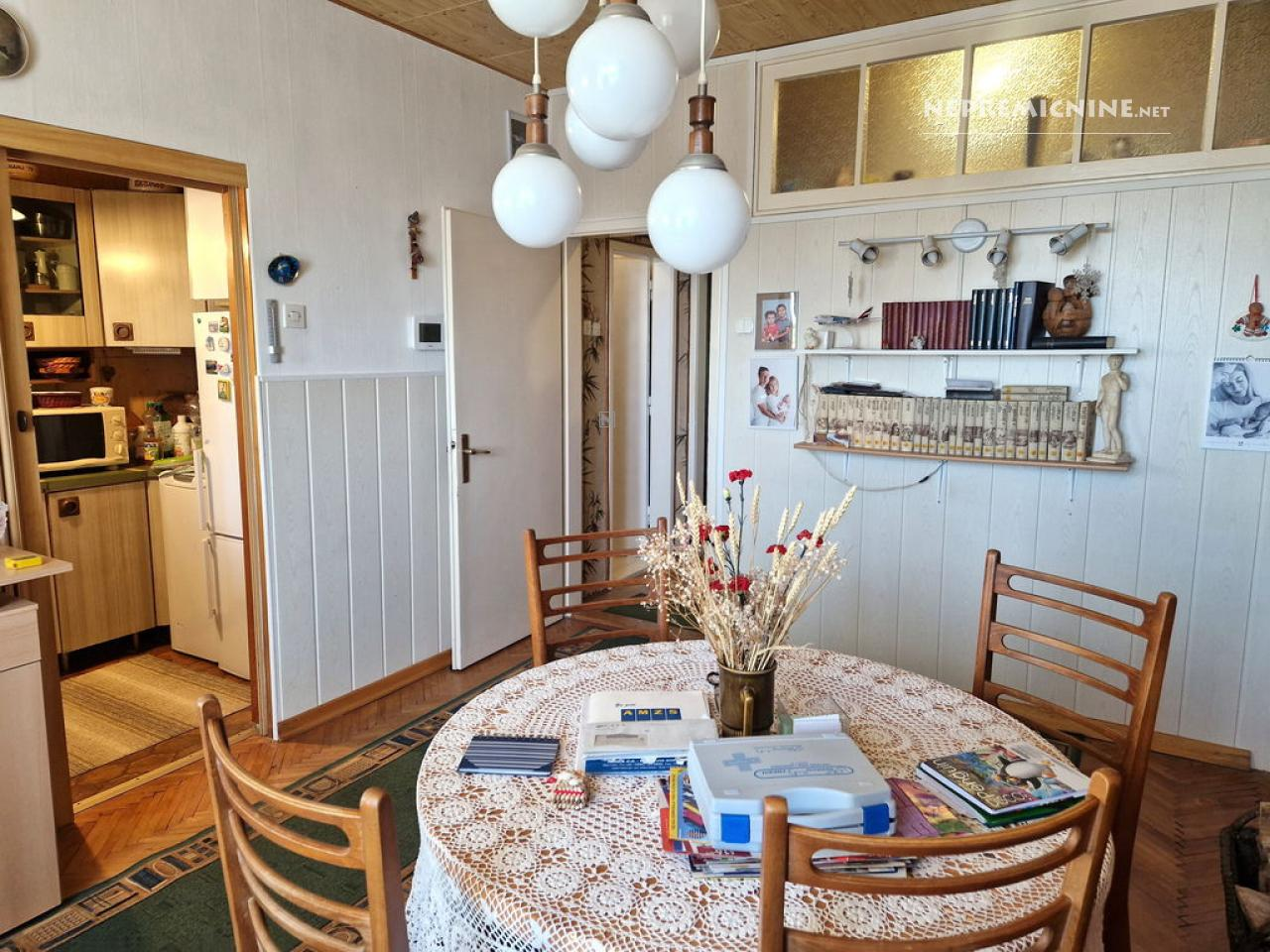 Ontdek dit charmante en zonnige 3-kamer appartement van 57 m², gelegen op de eerste verdieping van een gebouw met één verdieping. Het gebouw heeft een nieuwe gevel en dak, wat bijdraagt aan de moderne uitstraling. Dit appartement biedt een rustige locatie met directe nabijheid van de natuur en beschikt over een grote eigen tuin van 287 m² met fruitbomen zoals kaki, vijgen, granaatappel en wijnstokken. De tuin heeft ook een kleine opslagruimte, ideaal voor het opslaan van tuingereedschap. Het appartement bestaat uit een hal, een hoofdslaapkamer, een kinderkamer, een badkamer met douche, een woonkamer met een traditionele kachel, een eetkamer, een keukenhoek en een kleine glazen balkon. De woonruimtes zijn aangenaam verlicht en bieden een optimale indeling voor gezinnen, stellen of individuen. Het appartement beschikt ook over een eigen kelder voor extra opslagruimte en een eigen garage van 30 m². Verwarming is mogelijk via elektrische radiatoren of vaste brandstoffen, en er is een airconditioning voor extra comfort in alle seizoenen. De locatie is ideaal voor diegenen die rust, privacy en nabijheid van de natuur zoeken, terwijl alle benodigde infrastructuur in de buurt is. Mis deze kans niet om dit interessante pand te bezichtigen dat met zijn functionaliteit en ligging een kwaliteitsvolle woonervaring biedt voor verschillende generaties kopers.