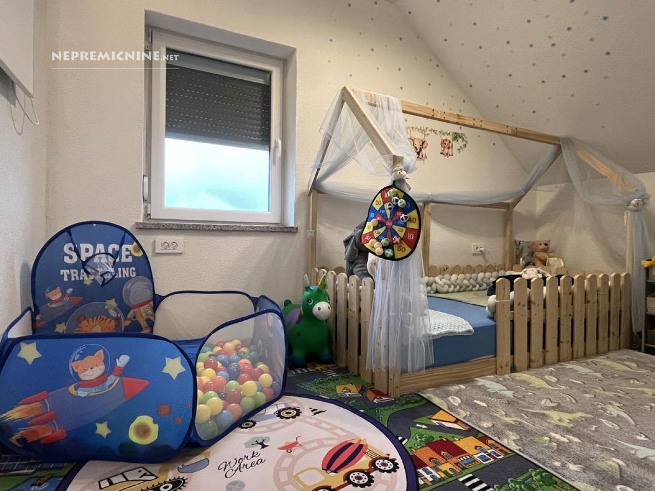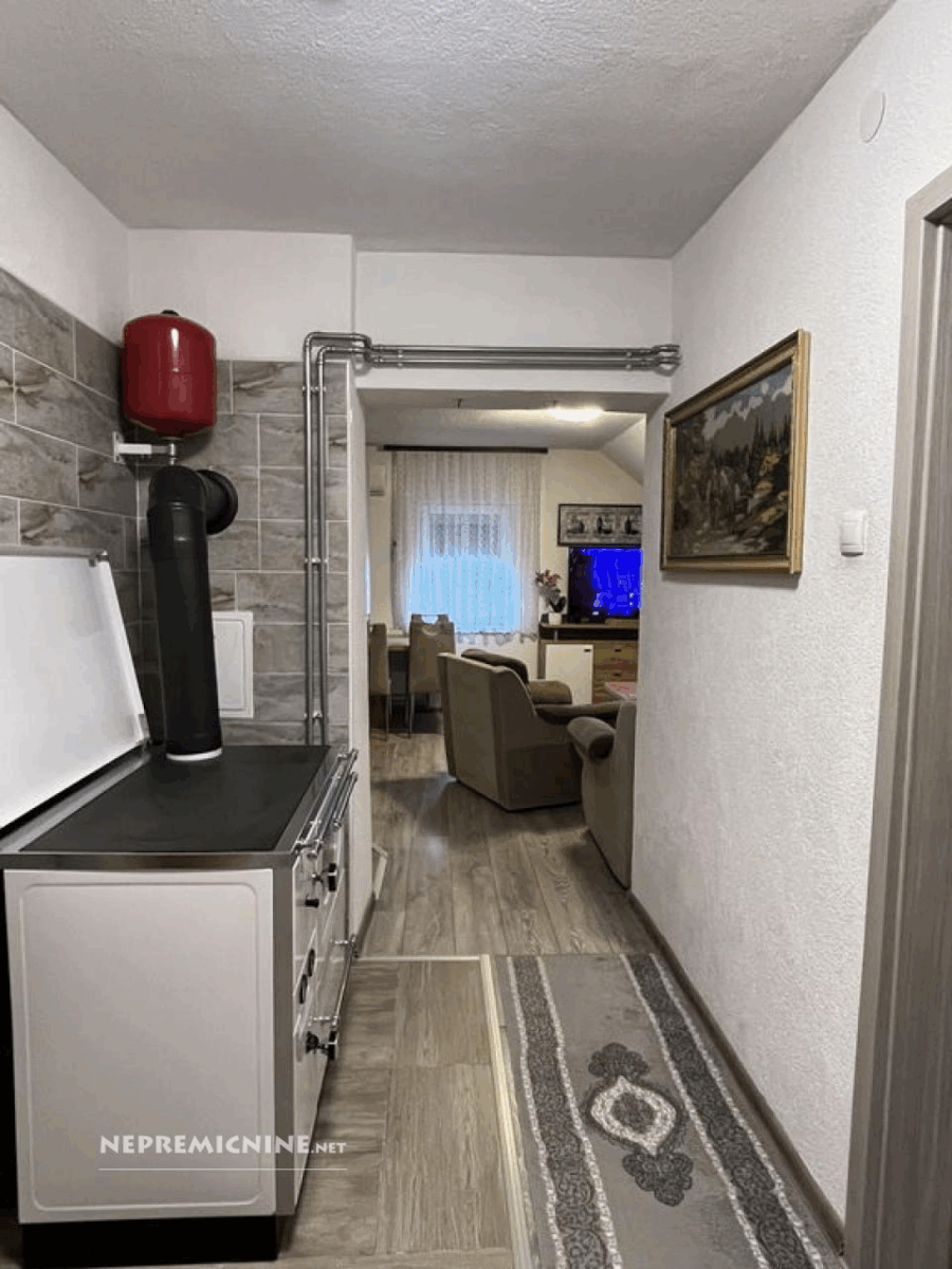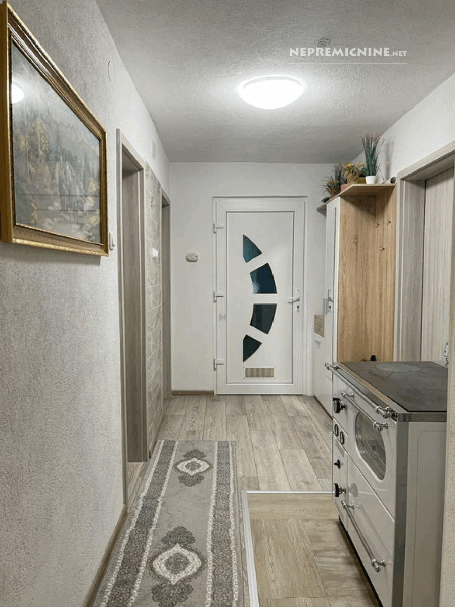 Dit prachtige, volledig gerenoveerde 3-kamer appartement bevindt zich in het rustige en goed onderhouden dorp Hrastje, nabij de stad Kranj. Het appartement, gelegen op de tweede verdieping van een woonhuis uit 1957, biedt een netto vloeroppervlak van 84 m² en is in 2019 volledig gerenoveerd. De renovatie omvatte nieuwe ramen, deuren, water- en elektrische installaties, evenals nieuwe vloeren en andere interieuruitrusting. Het appartement beschikt over een functionele indeling met een hal, een slaapkamer, een kinderkamer die eenvoudig kan worden omgebouwd tot een aparte kamer, een badkamer, een woonkamer met eetkamer en keuken, en een extra kamer die kan dienen als kinderkamer, kantoor of hobbyruimte. Het appartement wordt gedeeltelijk gemeubileerd verkocht, afhankelijk van de overeenkomst. Het beschikt over twee parkeerplaatsen en een perceel van 110 m². De omgeving biedt alle basisvoorzieningen zoals scholen, kinderdagverblijven en sportfaciliteiten. De locatie biedt snelle toegang tot het centrum van Kranj en de snelweg, en is omgeven door groen voor wandelingen, fietsen en gezinsactiviteiten. Goed onderhouden wegen en nabijgelegen bussen zorgen voor een gemakkelijke verbinding met de omgeving. Het appartement wordt verwarmd met hout, met een nieuwe kachel en schoorsteen, wat zorgt voor een aangename warmte in de koudere maanden.