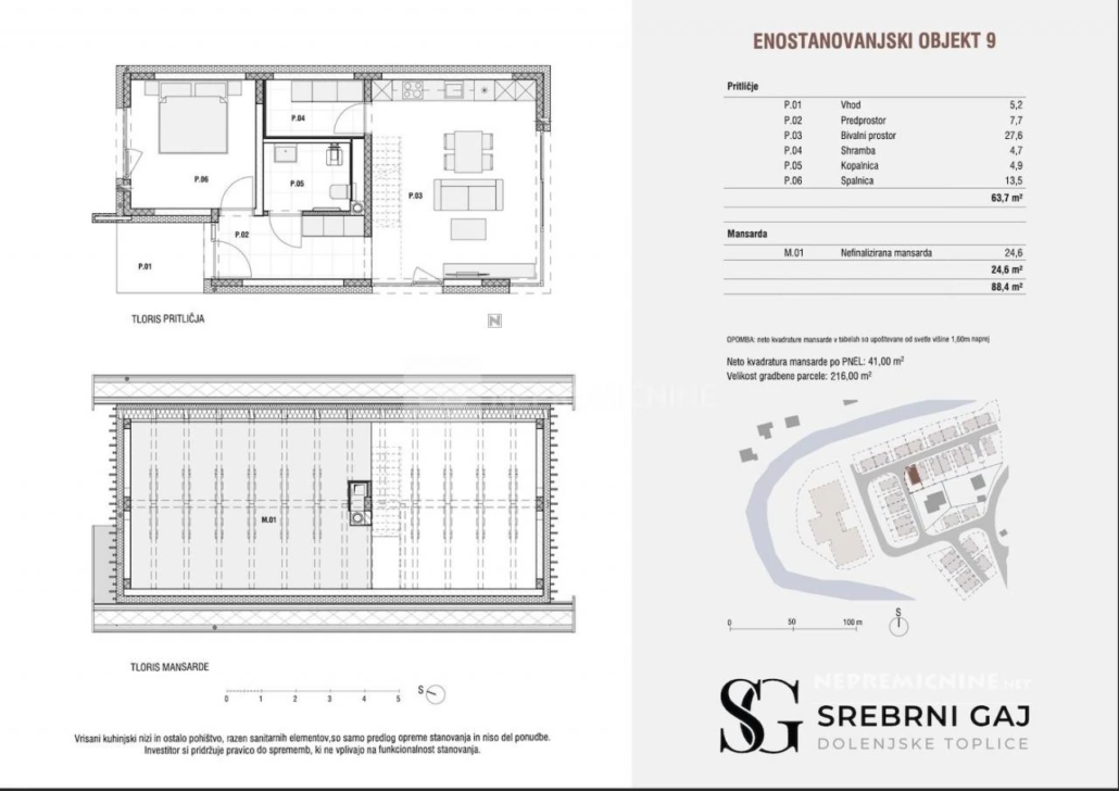 Ontdek de unieke kans om een prachtig rijtjeshuis te bezitten in de pittoreske omgeving van Dolenjske Toplice. Dit moderne huis, onderdeel van de nieuwe woonwijk SREBRNI GAJ, biedt een harmonieuze mix van comfort en stijl. Met een totale woonoppervlakte van 105,2 m² en een perceel van 216 m², is deze woning ideaal voor gezinnen die op zoek zijn naar een rustige en toch goed verbonden locatie. De wijk ligt op een steenworp afstand van de beroemde thermale baden, die uitgebreide medische en wellnessdiensten bieden. Het charmante stadscentrum, met zijn gezellige hoekjes en levendige lokale gemeenschap, ligt ook vlakbij. De woning is ontworpen met een open woonruimte die uitkomt op een prachtige tuin, perfect voor ontspanning en entertainment. De bouw van de wijk verloopt volgens plan en de huizen zullen in 2026 klaar zijn voor bewoning. Mis deze kans niet om te investeren in een woning die niet alleen een thuis biedt, maar ook een levensstijl.