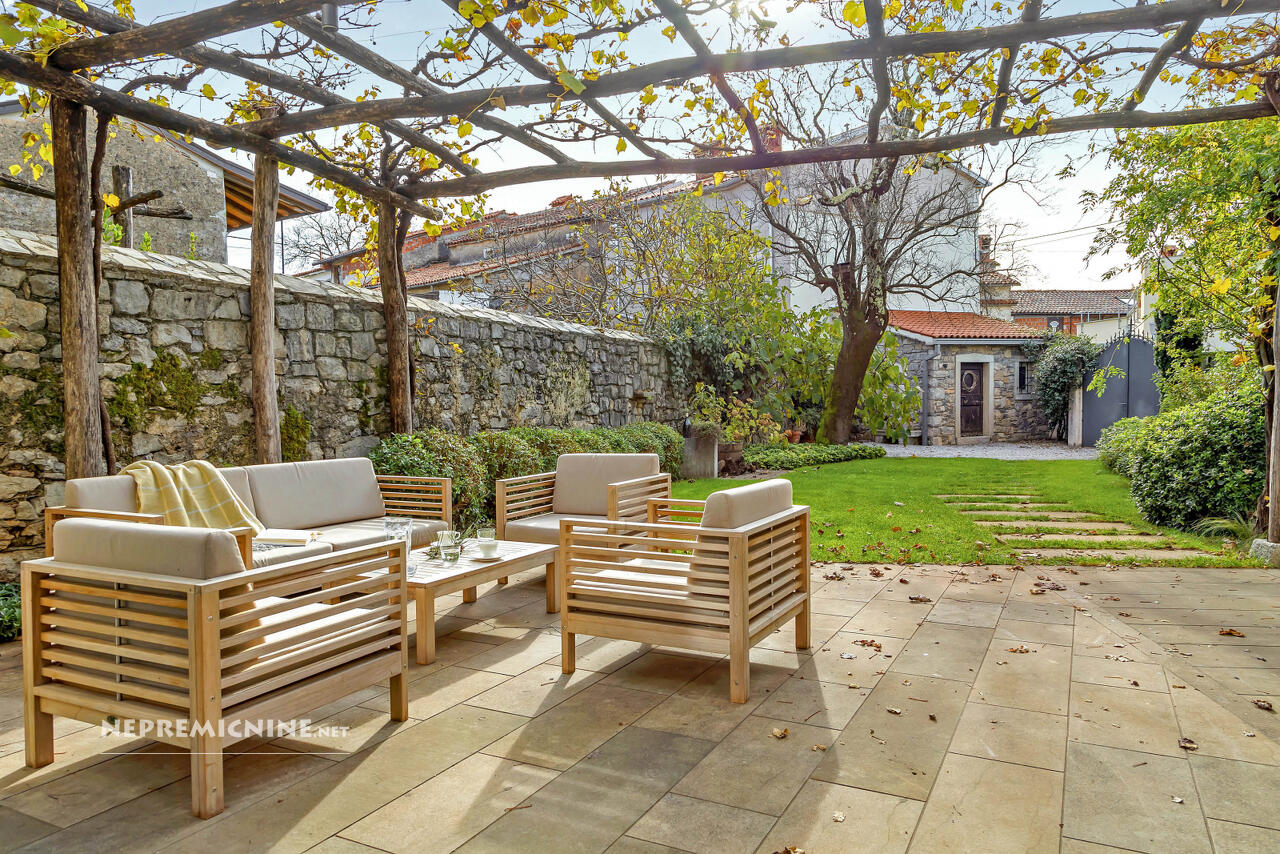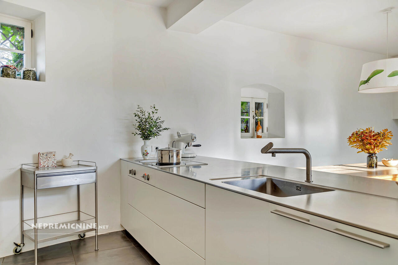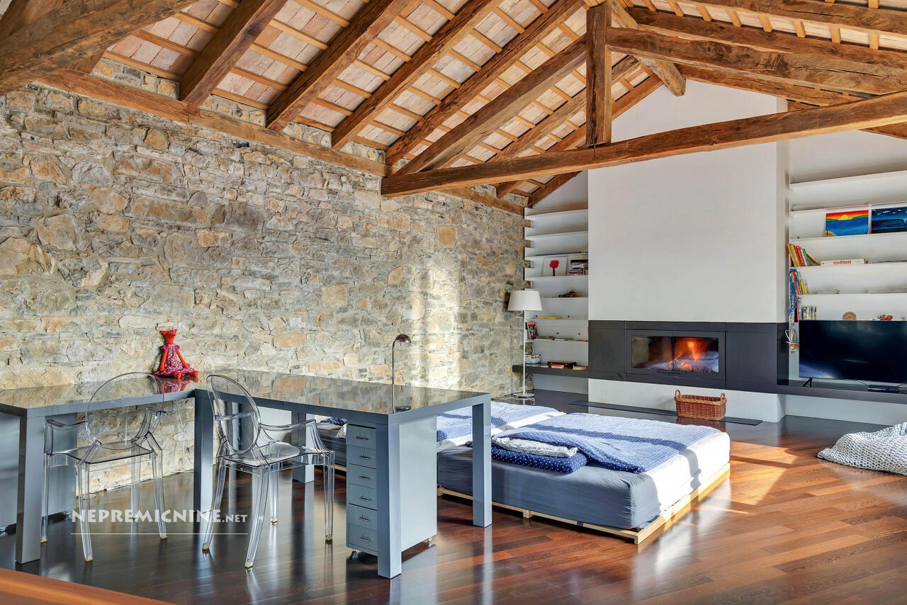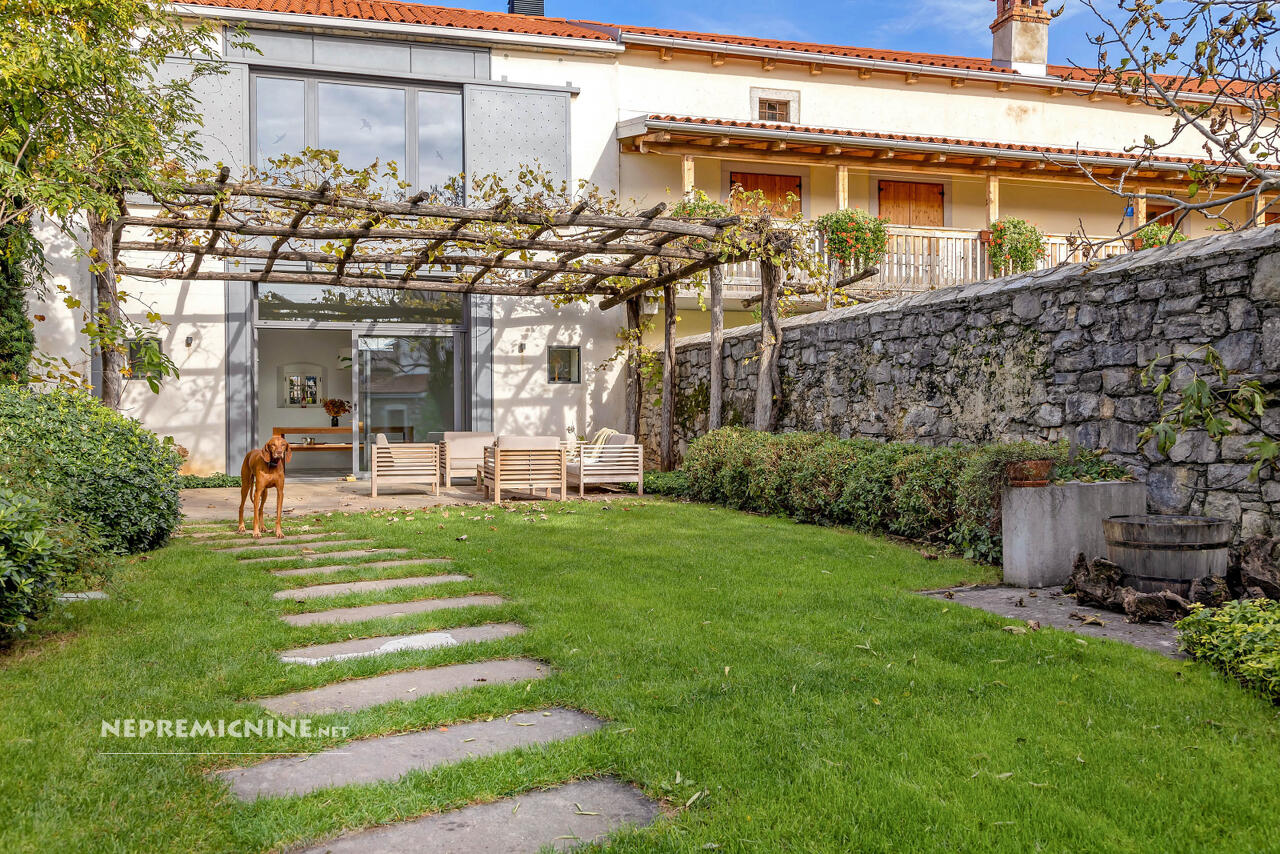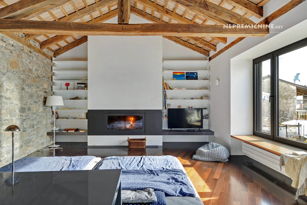 Op de eerste verdieping vindt u een ruime woonkamer die overgaat in een slaapkamer met een aparte garderobe en een moderne badkamer. De woning is voorzien van vloerverwarming en radiatoren, en beschikt over twee sfeervolle open haarden. Buiten vindt u twee terrassen, een waterput en een stenen schuur voor tuingereedschap. De regio Južna Primorska staat bekend om zijn natuurlijke schoonheid en biedt tal van recreatiemogelijkheden, zoals wandelen en wijnproeven.