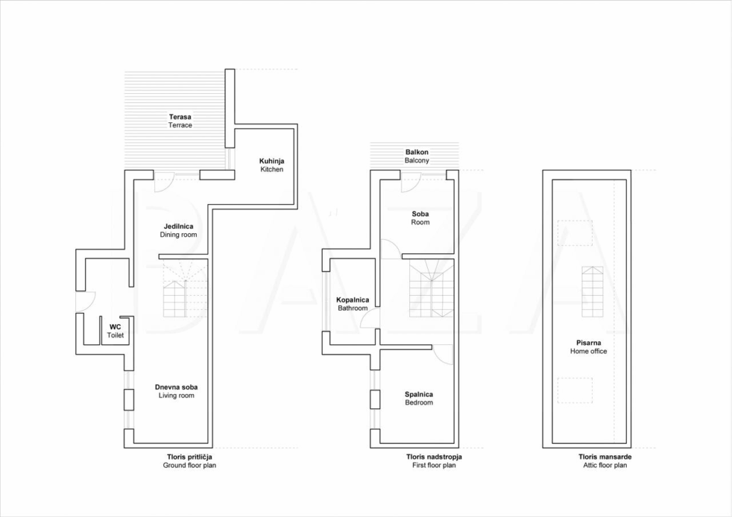 Dit prachtige rijtjeshuis, gelegen in de rustige en groene omgeving van Črnuče, biedt een perfecte balans tussen privacy en nabijheid van de natuur, terwijl het toch uitstekende toegang biedt tot het stadscentrum en de ringweg. De woning, gebouwd in 1992 en volledig gerenoveerd in 2023, beschikt over een netto vloeroppervlakte van 83,7 m² en een perceel van 194 m². De woning is verdeeld over drie verdiepingen en omvat een ruime woonkamer met eetkamer en keuken, twee slaapkamers, een badkamer, een apart toilet en een extra zolderkamer die is omgebouwd tot kantoor. Buiten vindt u een balkon, een atrium en aangename buitenruimtes. De woning is volledig uitgerust met moderne technologieën zoals vloerverwarming, een ventilatiesysteem, airconditioning in alle verdiepingen, een GIRA Smart Home-systeem en inbraakwerende deuren. De omgeving biedt tal van voorzieningen zoals scholen, kinderdagverblijven, winkels en recreatieve paden. De woning is ideaal voor gezinnen of individuen die op zoek zijn naar een hoogwaardige woonomgeving in een goed onderhouden buurt. De woning is beschikbaar vanaf 1 december 2025.