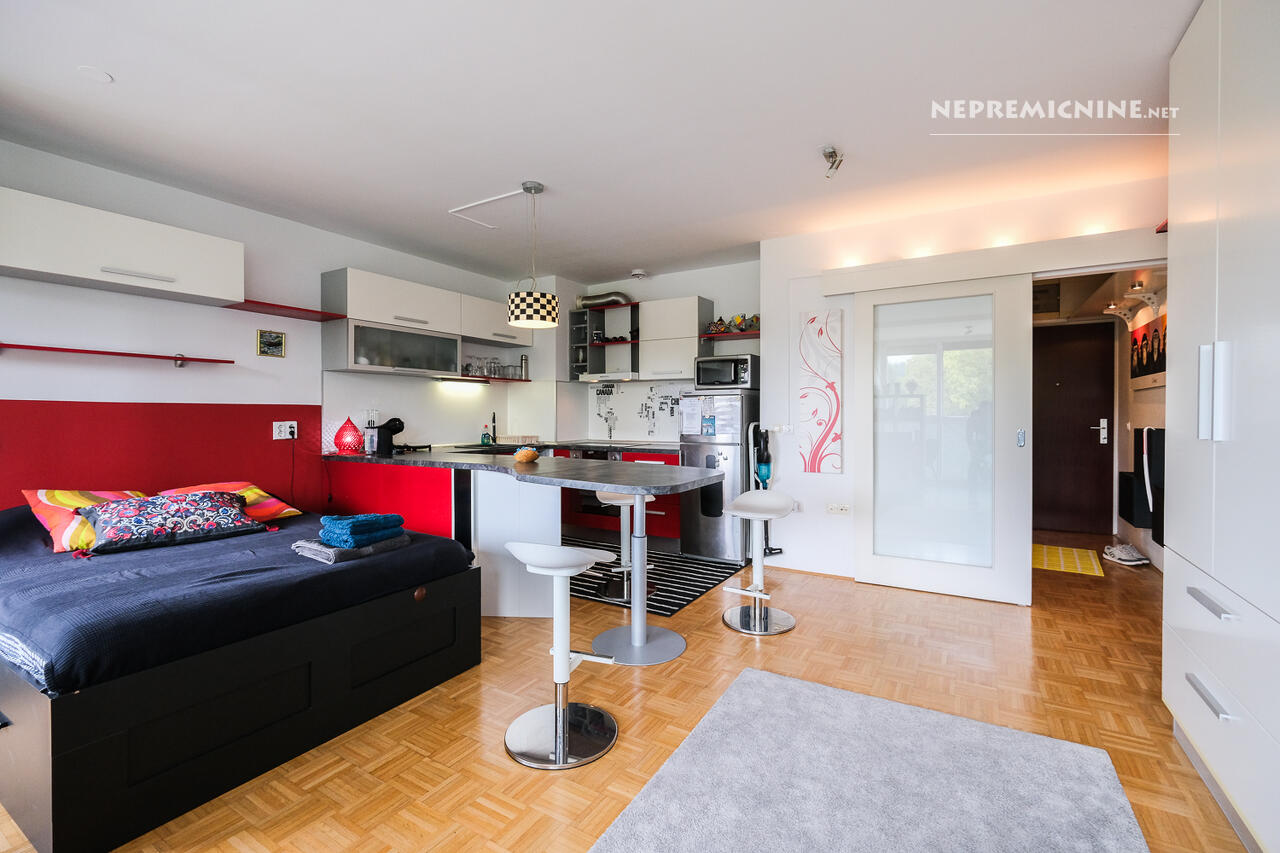 Deze volledig ingerichte garsonjera, gelegen in het centrum van Ljubljana aan de Mesarska cesta, biedt een unieke kans voor investeerders. Met een oppervlakte van 42,5 m², inclusief een balkon en een loža, is deze woning ideaal voor kortetermijnverhuur, ondersteund door een reeds goedlopend verhuurbedrijf. Het appartement, gebouwd in 2006 en gerenoveerd in 2016, bevindt zich op de derde van vier verdiepingen en beschikt over een eigen parkeerplaats in de ondergrondse garage. De westelijke oriëntatie zorgt voor veel natuurlijk licht. De locatie biedt gemakkelijke toegang tot alle stedelijke voorzieningen, zoals winkels, restaurants en openbaar vervoer. Ljubljana, de hoofdstad van Slovenië, staat bekend om zijn levendige cultuur, historische bezienswaardigheden en prachtige architectuur, waardoor het een aantrekkelijke bestemming is voor toeristen en investeerders.