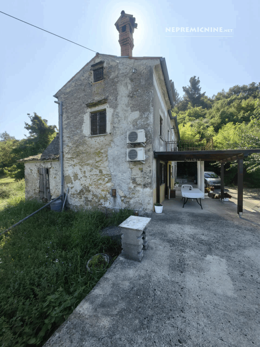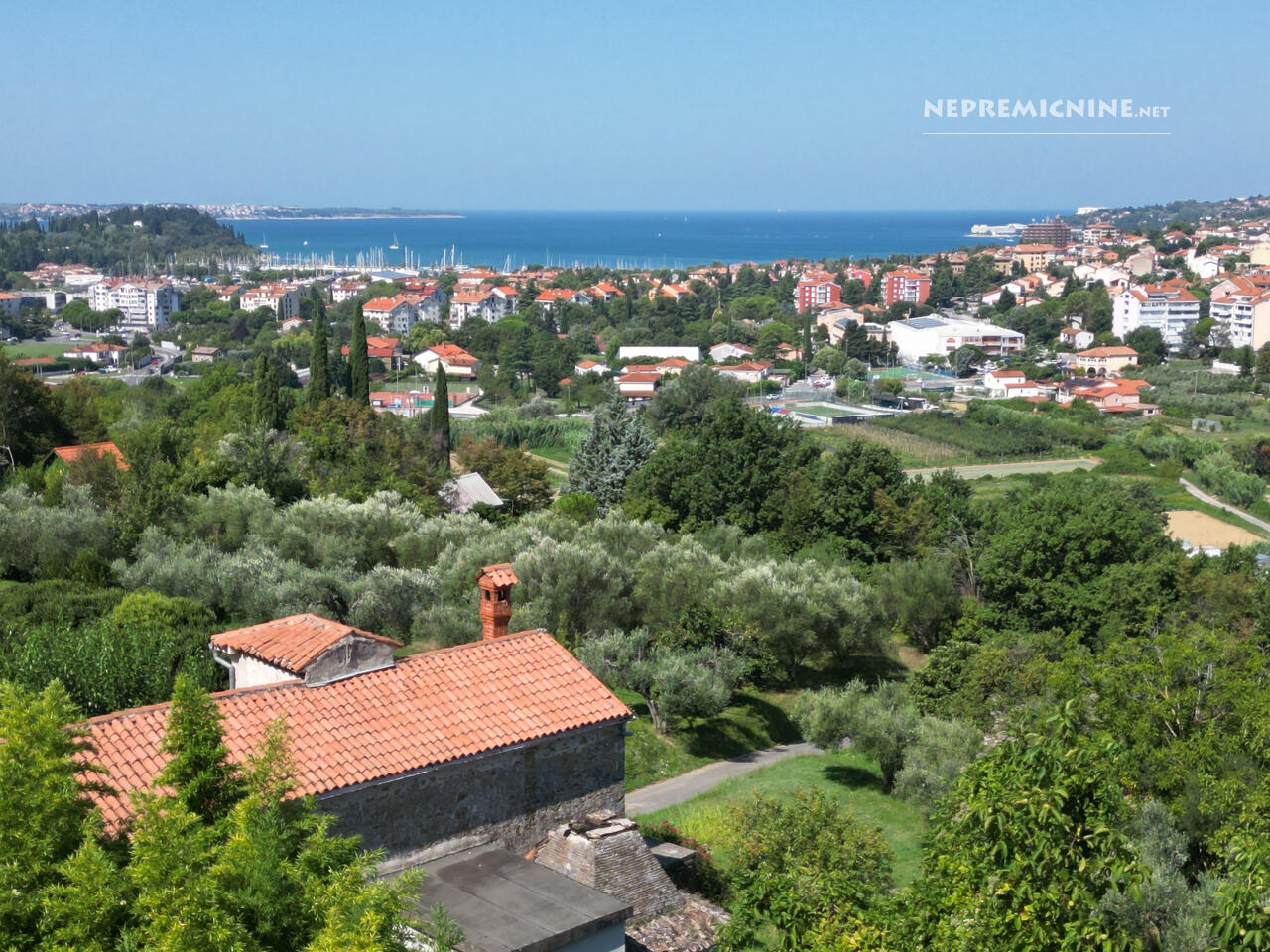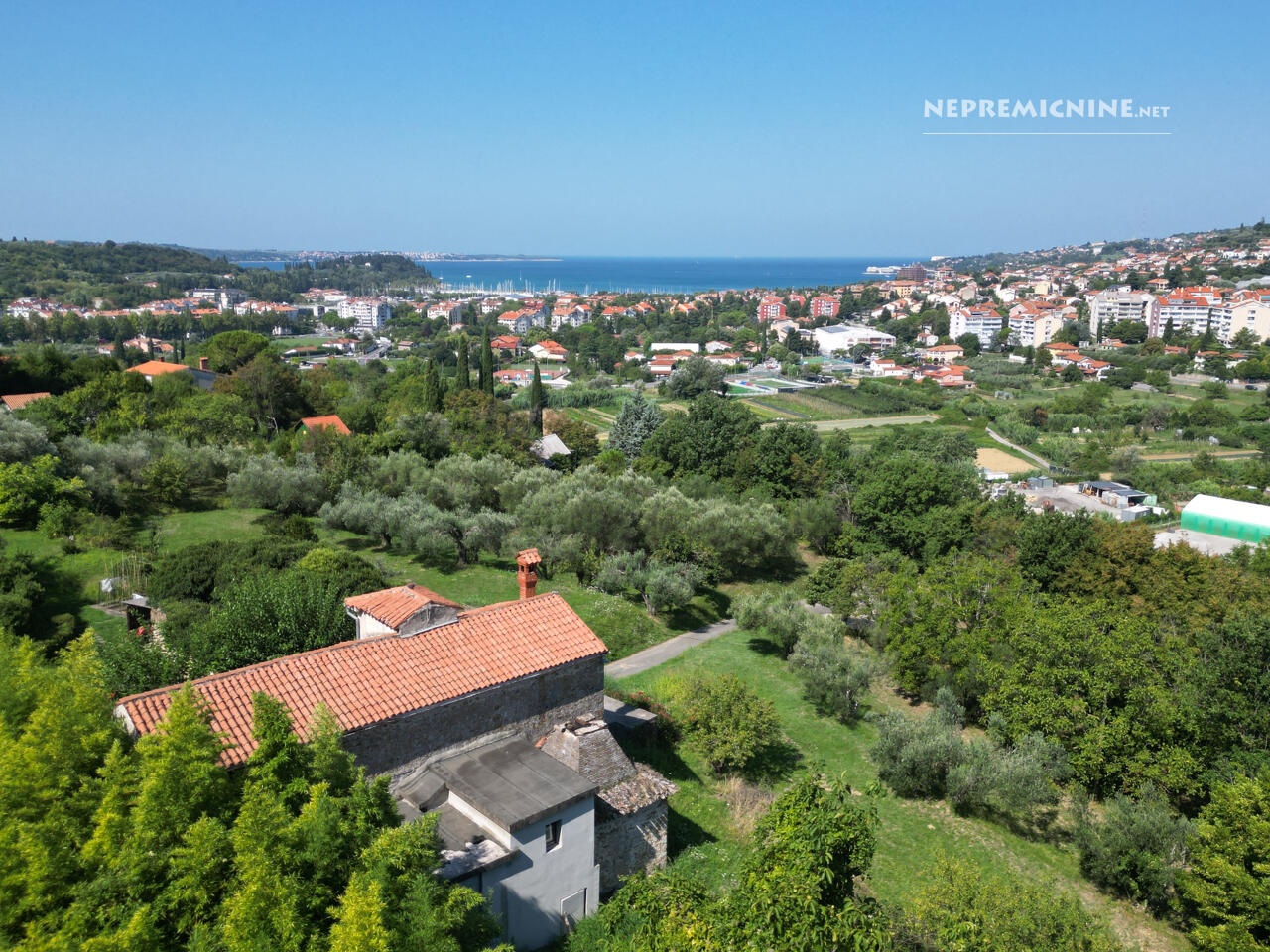 Deze prachtige oude Istrische huis, gelegen op een lichte heuvel nabij Portorož, biedt een adembenemend uitzicht op de groene omgeving en de zee.