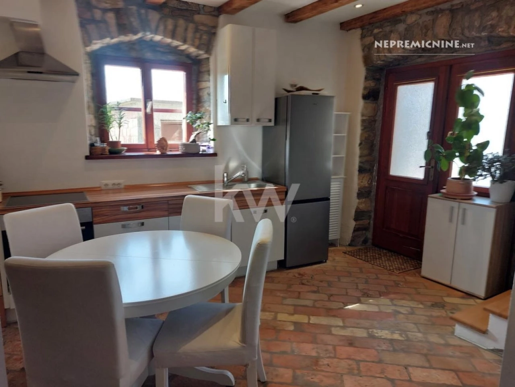 Ontdek deze charmante rijtjeshuis in het hart van het pittoreske Istrische dorp Krkavče, gelegen in de regio Južna Primorska. Dit huis, gebouwd in 1900 en volledig gerenoveerd in 2023, biedt een unieke kans voor diegenen die op zoek zijn naar een rustige woonomgeving of een vakantiehuis in de natuur. Met een woonoppervlakte van 63 m² verdeeld over drie verdiepingen, biedt het huis een gezellige keuken met een apart toilet op de begane grond, een slaapkamer en badkamer op de eerste verdieping, en een extra kamer op de zolder die kan dienen als woonkamer, kantoor of extra slaapkamer. Het huis is zuidelijk georiënteerd en biedt een prachtig uitzicht op de omliggende natuur en groen, wat zorgt voor veel licht en een aangename leefomgeving. Naast het huis bevindt zich een bouwkavel met een zelfstandig agrarisch bijgebouw van 20 m², ideaal voor het creëren van een tuin, terras of andere voorzieningen naar wens. De totale perceelgrootte bedraagt 205 m². Krkavče is een schilderachtig dorp dat bekend staat om zijn authentieke Istrische sfeer en biedt gemakkelijke toegang tot nabijgelegen toeristische attracties zoals de kuststad Koper, prachtige stranden en schilderachtige wandelpaden. De regio biedt ook tal van voorzieningen zoals winkels, restaurants en goede vervoersverbindingen.