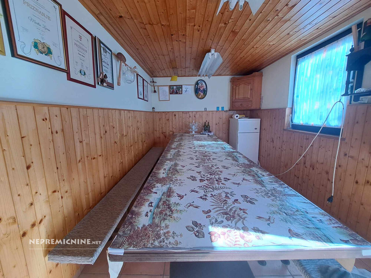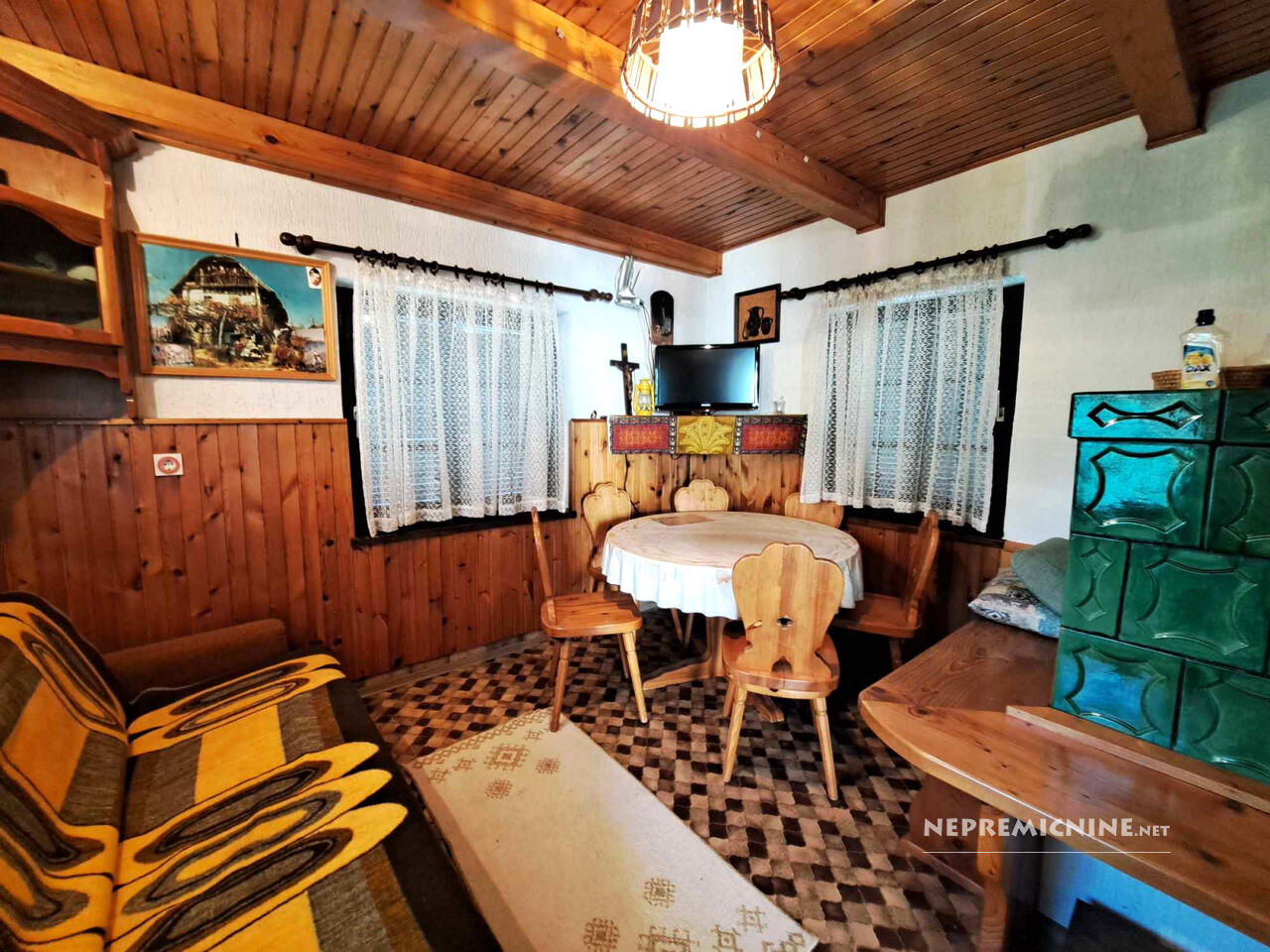 De woning is perfect onderhouden en biedt een adembenemend uitzicht op de omliggende heuvels. De indeling bestaat uit een kelder en een begane grond met een gezellige woonkamer, een keuken met eetgedeelte, en een badkamer met douche. De woning is voorzien van een traditionele houtkachel voor verwarming en heeft houten ramen. De kelder biedt extra opslagruimte en is toegankelijk van buitenaf. De woning is aangesloten op het openbare water- en elektriciteitsnet en is bereikbaar via een geasfalteerde weg.