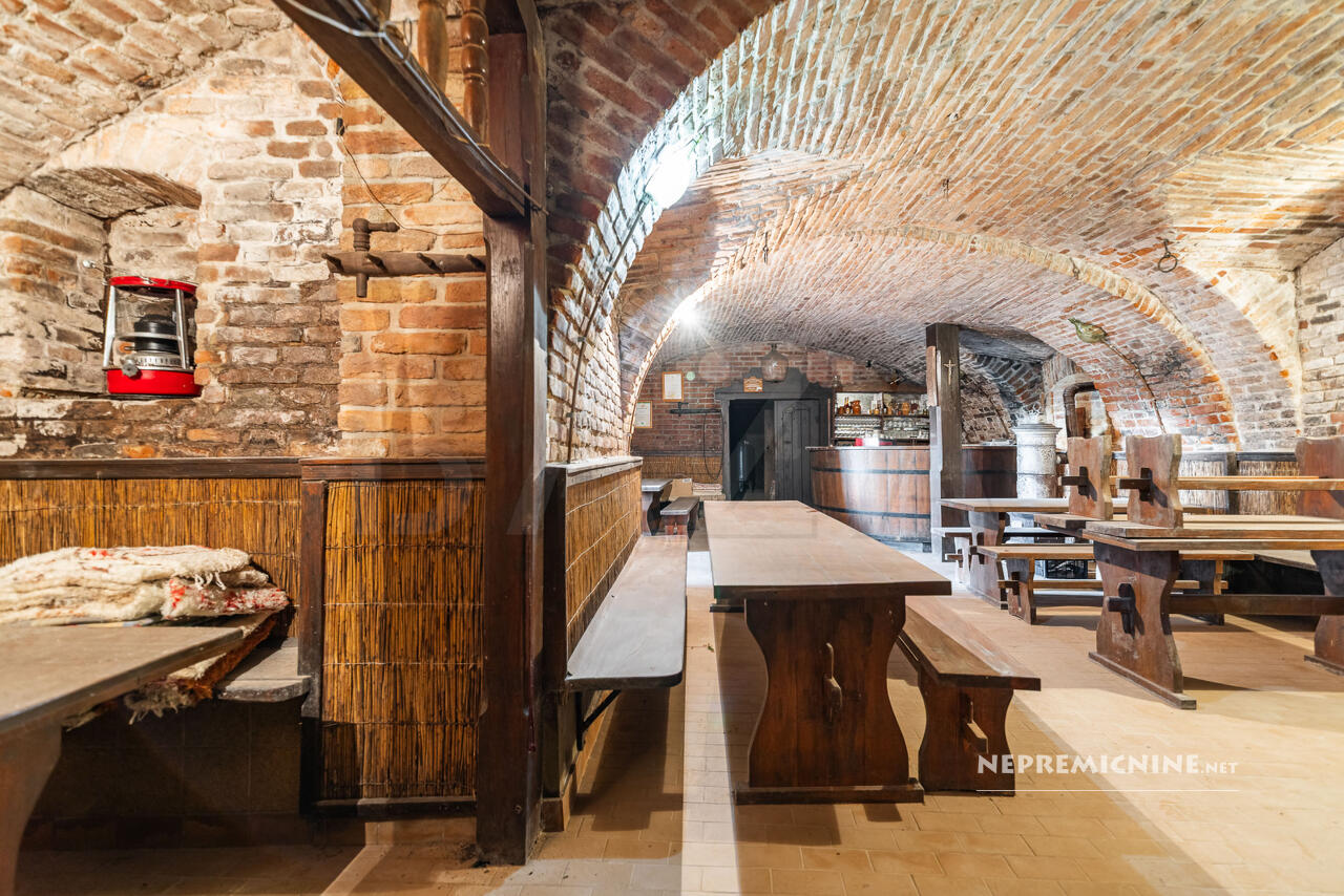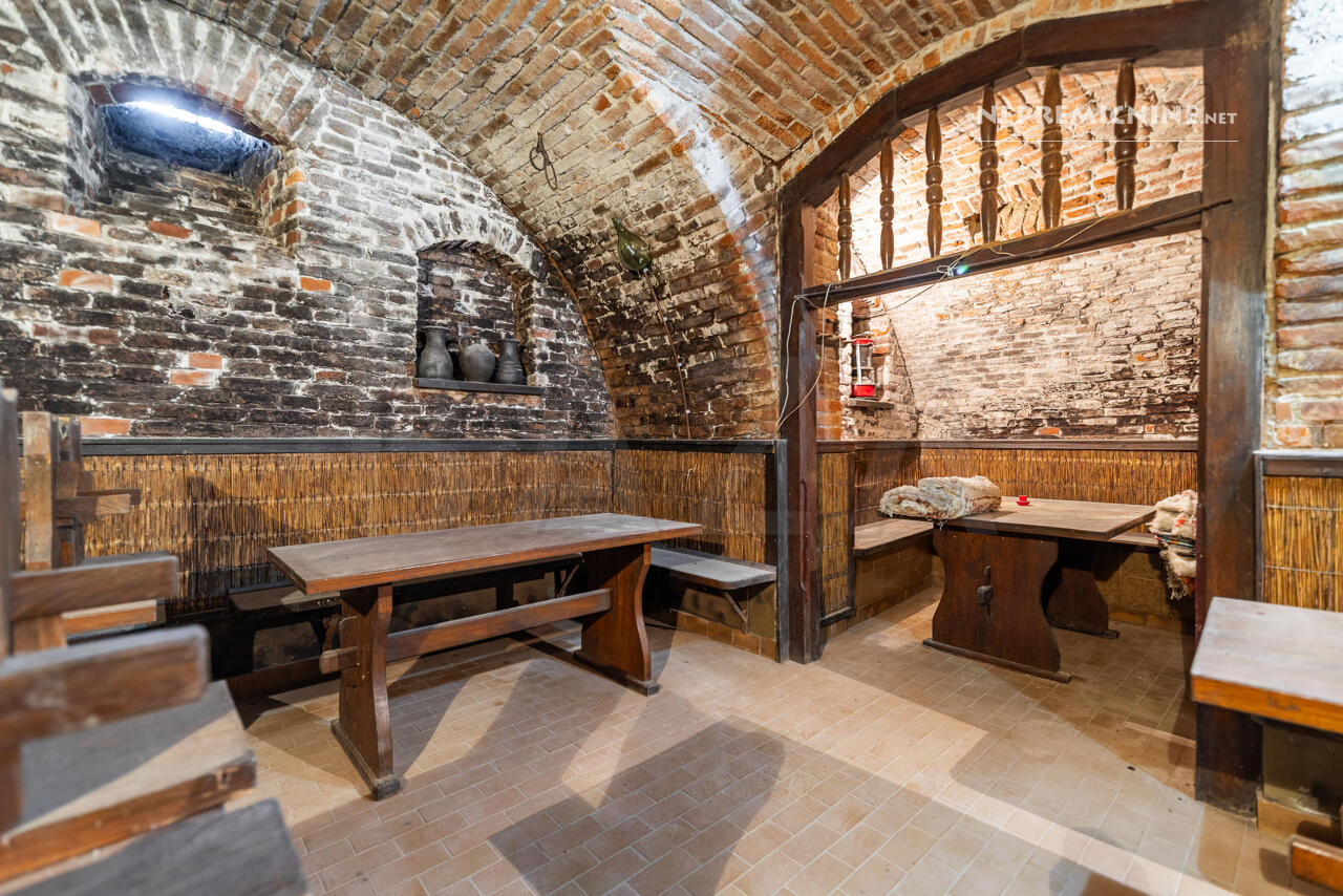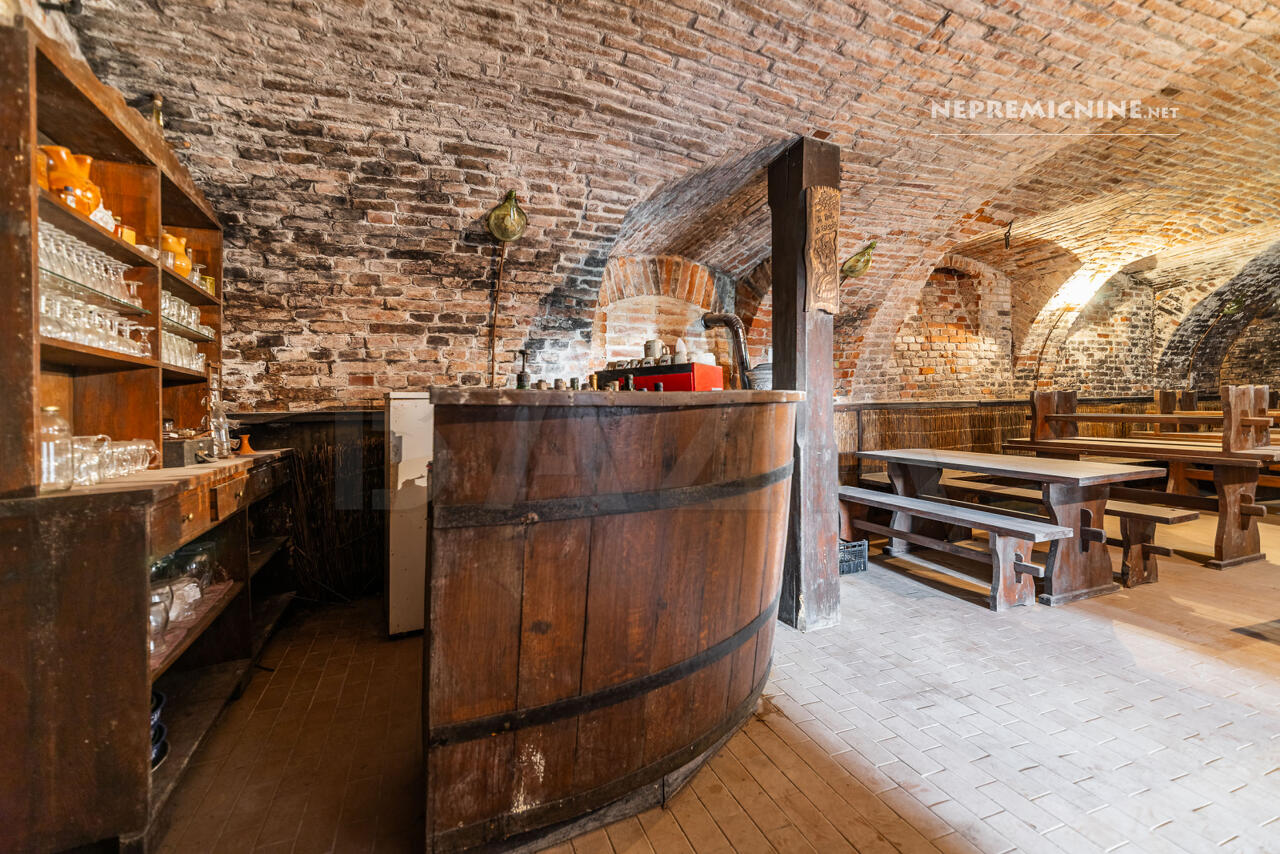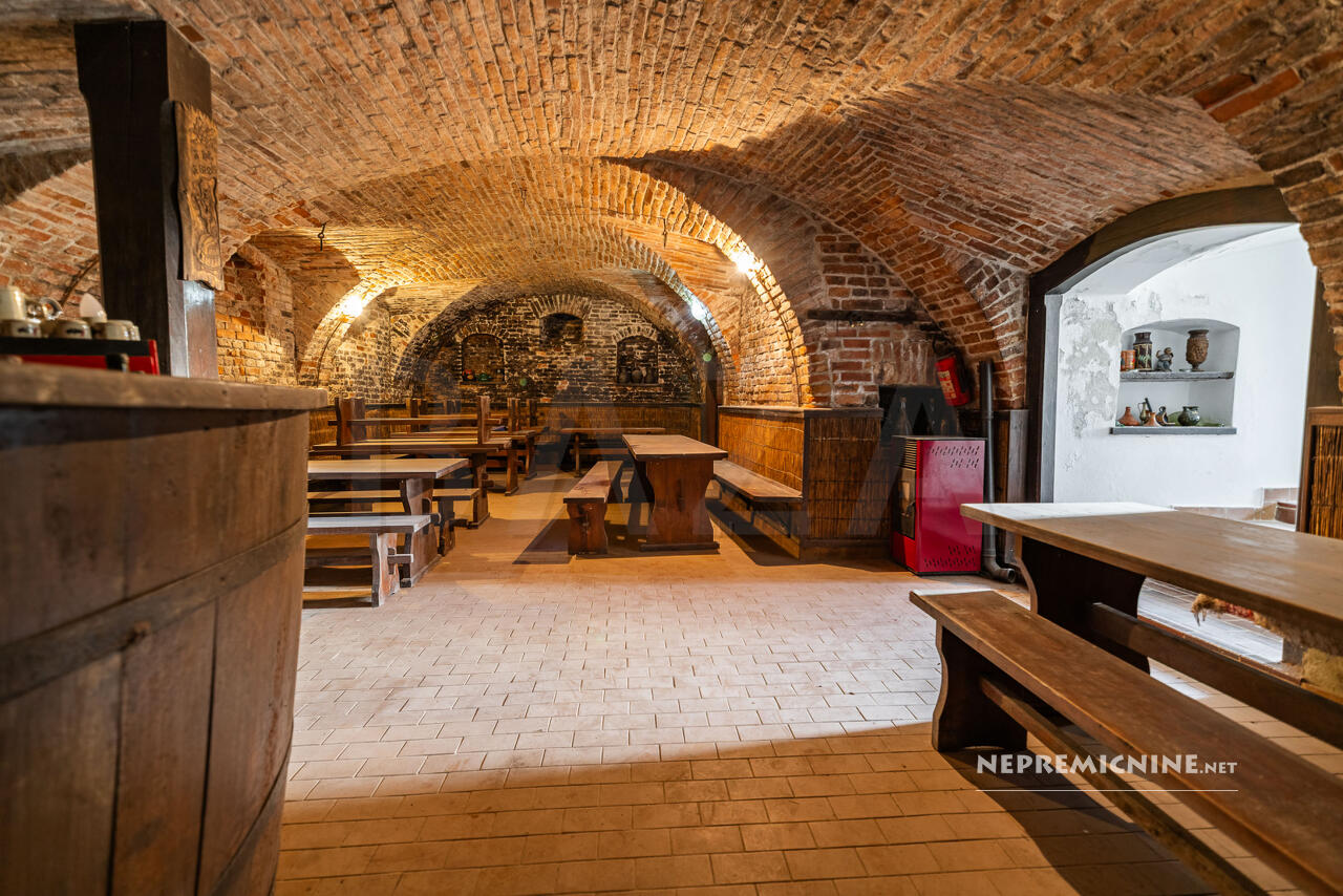 De begane grond herbergt een charmant ingerichte horecagelegenheid die verbonden is met een prachtige gewelfde kelder van 16 m².