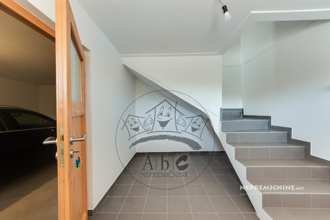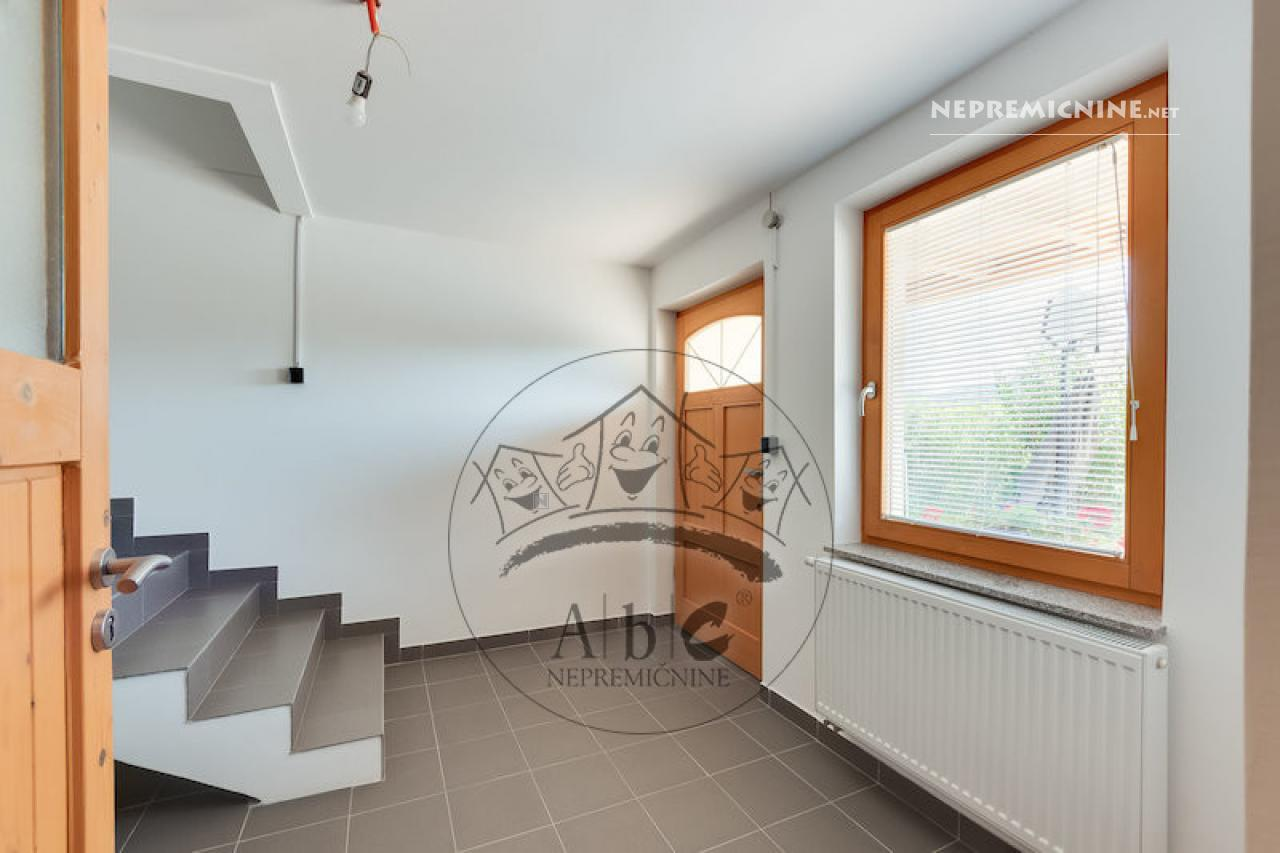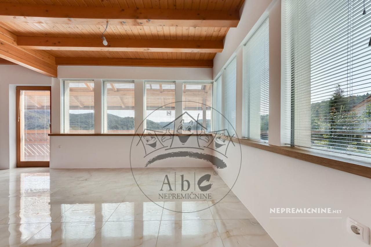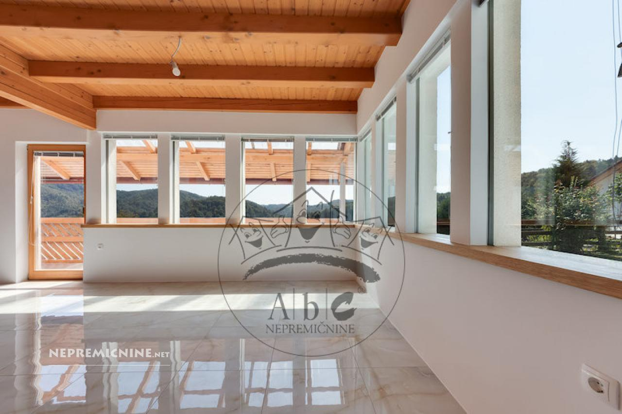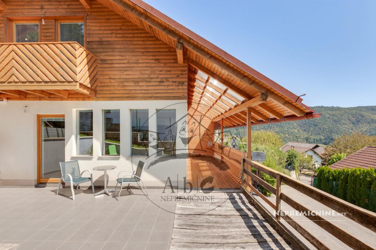 Deze moderne rijtjeshuis in Dobrunje biedt een unieke kans om te wonen in een groene oase met een prachtig uitzicht. Gelegen in een rustige omgeving, biedt deze woning de perfecte balans tussen privacy en nabijheid van stedelijke voorzieningen. De woning is ontworpen met veel glaspartijen die zorgen voor overvloedig zonlicht en een ruimtelijk gevoel. De indeling omvat een begane grond met een hal en garage, een eerste verdieping met een keuken en eetkamer die uitkomt op een ruime woonkamer met toegang tot een groot terras, en een zolder met drie slaapkamers en een badkamer. De woning is voorzien van moderne aansluitingen zoals een warmtepomp, water, elektriciteit, en internet. De regio Ljubljana biedt tal van toeristische attracties, zoals het historische centrum van Ljubljana, het Tivoli Park en de nabijgelegen bergen voor wandel- en skirecreatie. In de buurt zijn er winkels, restaurants en goede vervoersmogelijkheden. De woning is gebouwd in 2009 en heeft een energielabel C.