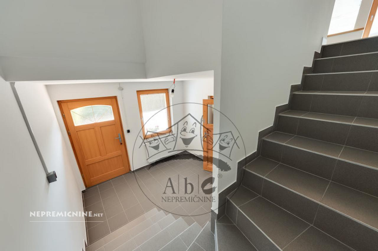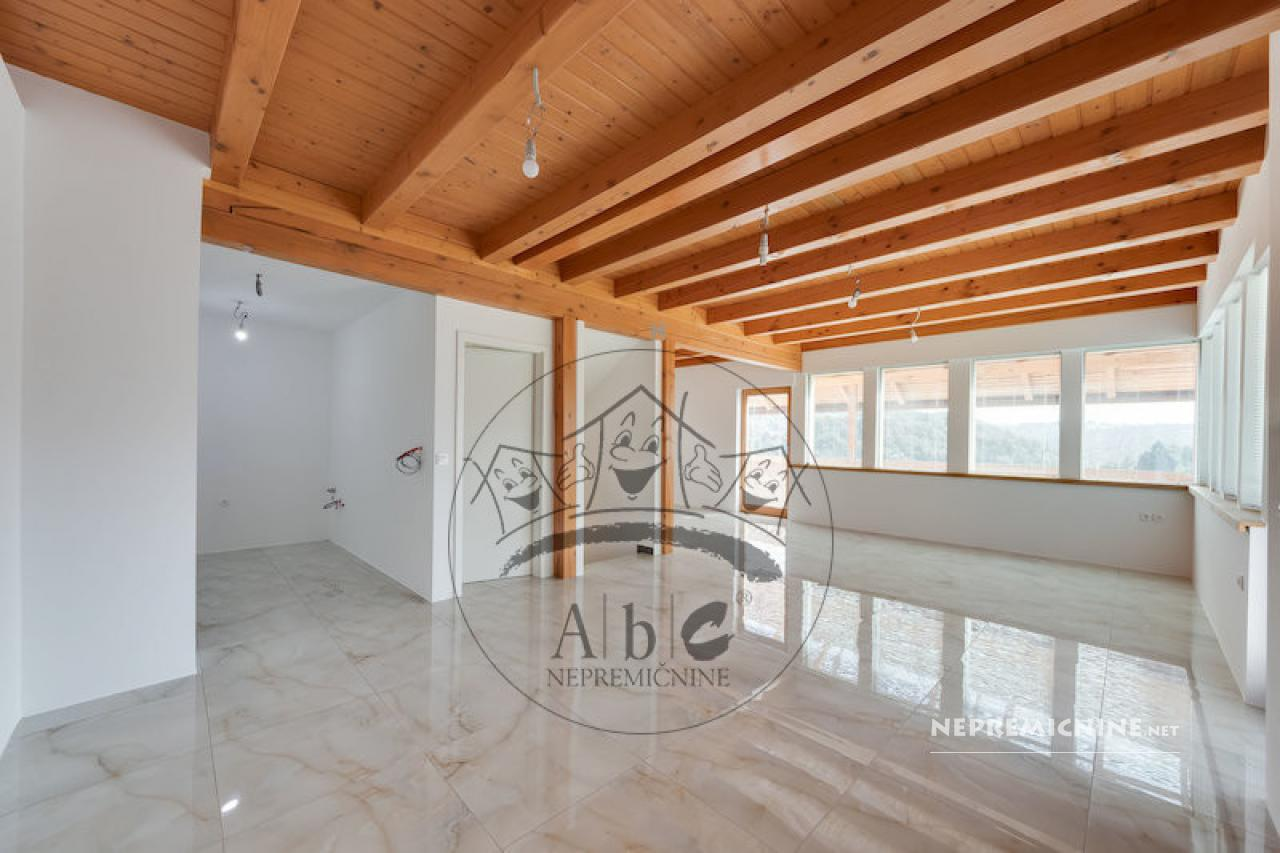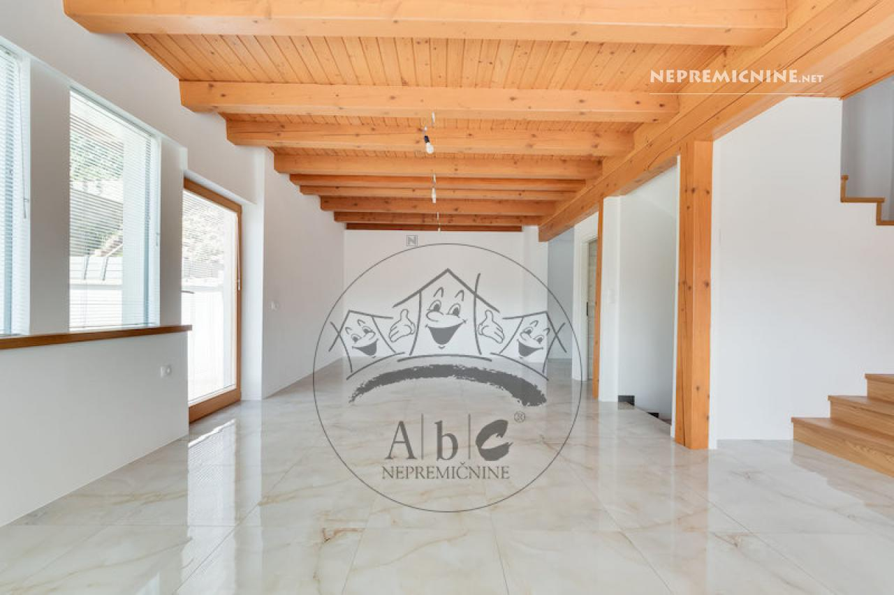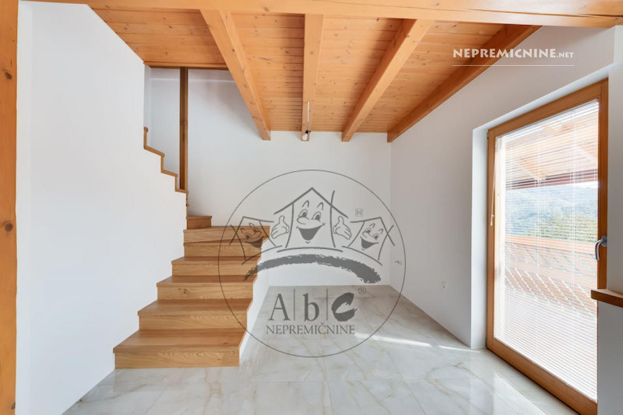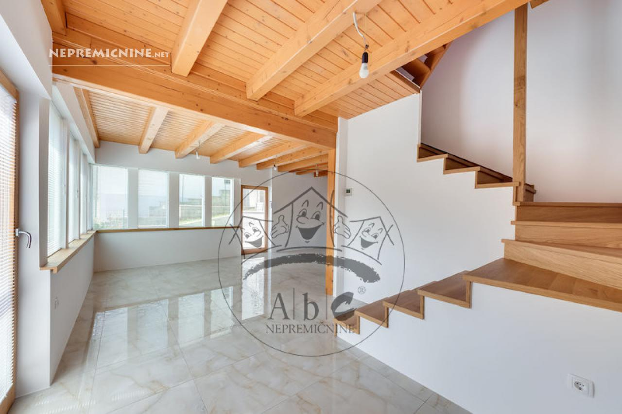 Deze moderne rijtjeshuis in Dobrunje biedt een unieke kans om te wonen in een groene oase met een prachtig uitzicht. Gelegen in een rustige omgeving, biedt deze woning de perfecte balans tussen privacy en nabijheid van stedelijke voorzieningen. De woning is ontworpen met veel glaspartijen die zorgen voor overvloedig zonlicht en een ruimtelijk gevoel. De indeling omvat een begane grond met een hal en garage, een eerste verdieping met een keuken en eetkamer die uitkomt op een ruime woonkamer met toegang tot een groot terras, en een zolder met drie slaapkamers en een badkamer. De woning is voorzien van moderne aansluitingen zoals een warmtepomp, water, elektriciteit, en internet. De regio Ljubljana biedt tal van toeristische attracties, zoals het historische centrum van Ljubljana, het Tivoli Park en de nabijgelegen bergen voor wandel- en skirecreatie. In de buurt zijn er winkels, restaurants en goede vervoersmogelijkheden. De woning is gebouwd in 2009 en heeft een energielabel C.