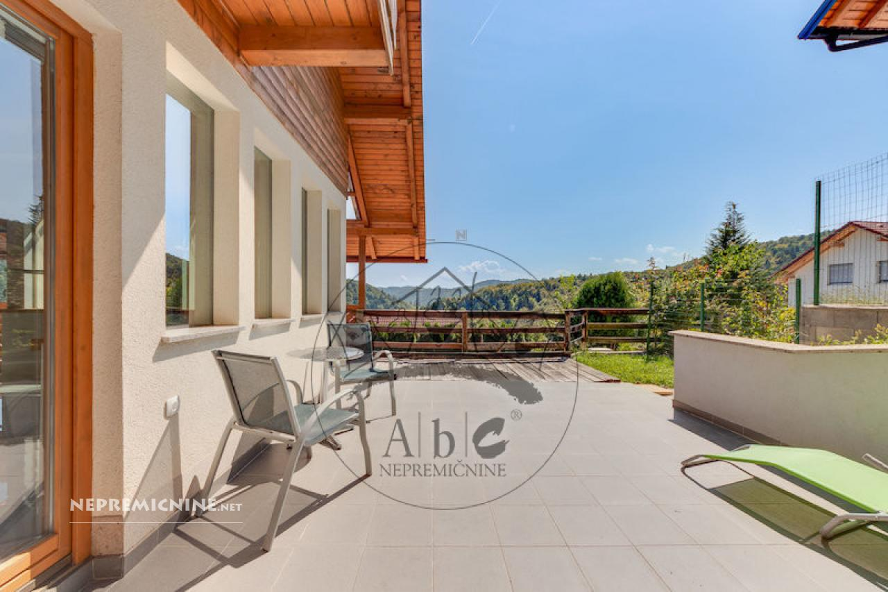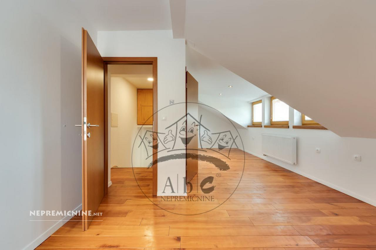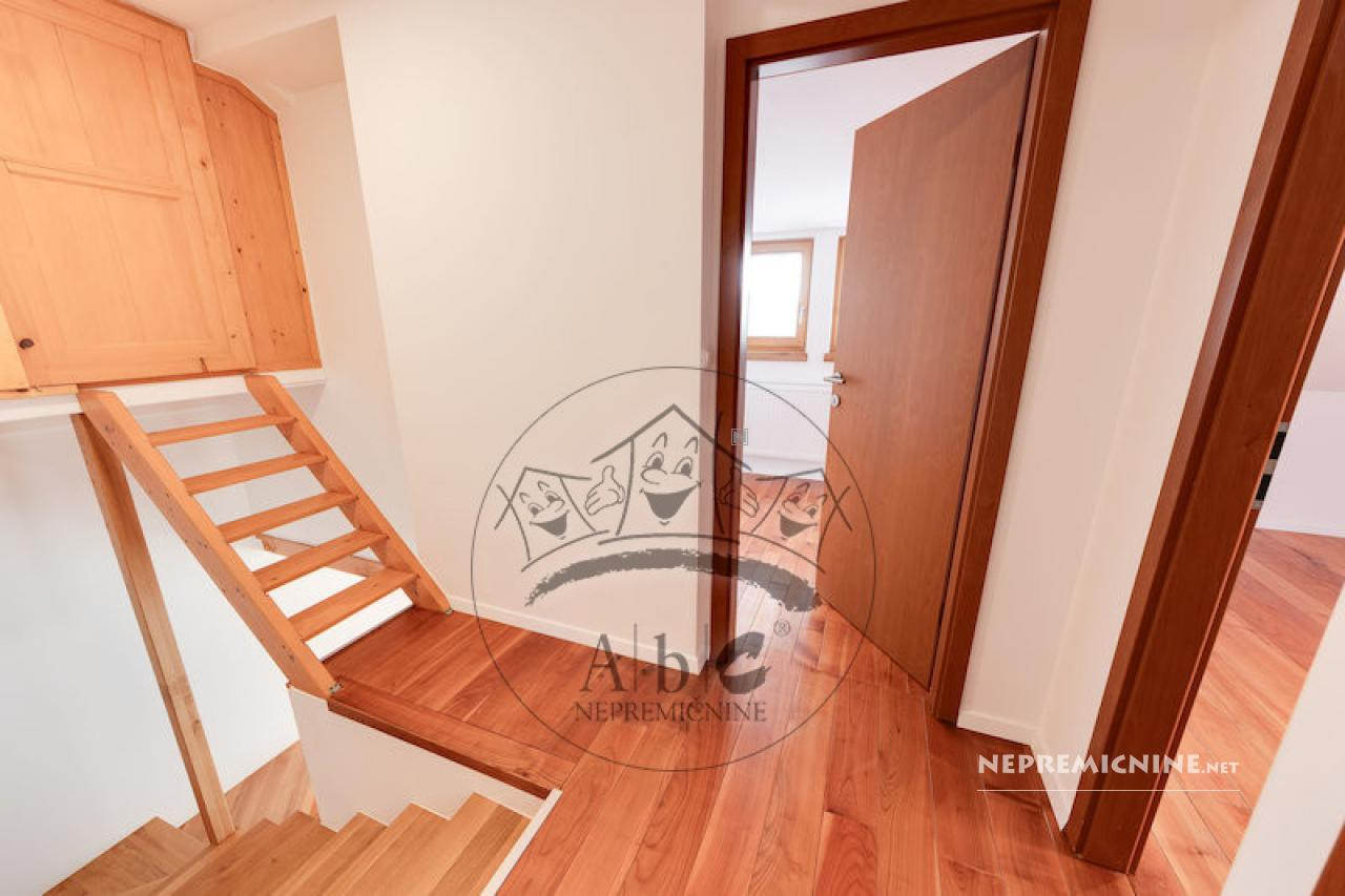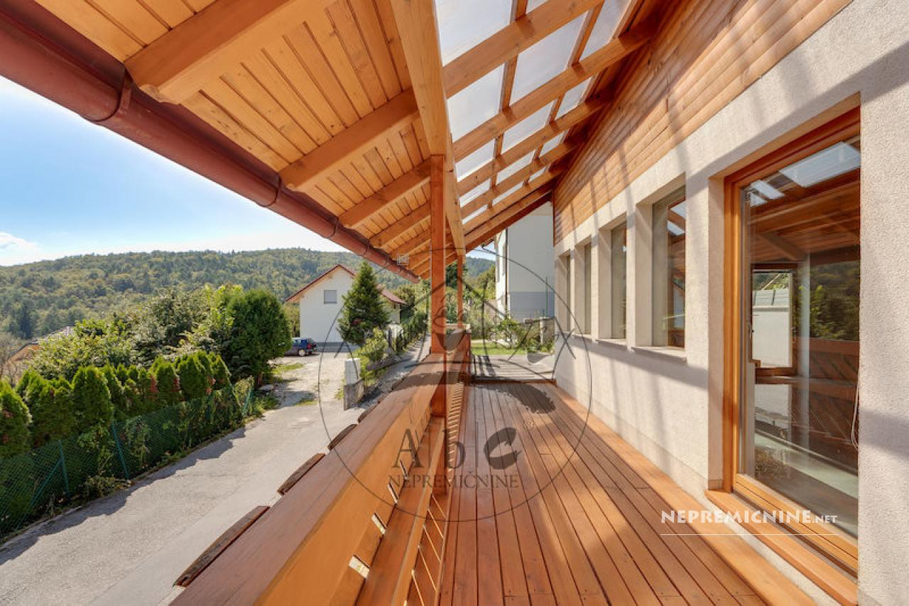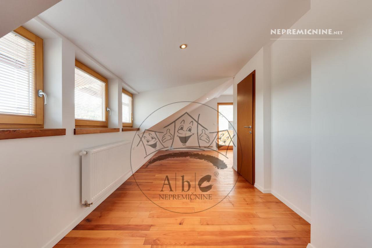 Deze moderne rijtjeshuis in Dobrunje biedt een unieke kans om te wonen in een groene oase met een prachtig uitzicht. Gelegen in een rustige omgeving, biedt deze woning de perfecte balans tussen privacy en nabijheid van stedelijke voorzieningen. De woning is ontworpen met veel glaspartijen die zorgen voor overvloedig zonlicht en een ruimtelijk gevoel. De indeling omvat een begane grond met een hal en garage, een eerste verdieping met een keuken en eetkamer die uitkomt op een ruime woonkamer met toegang tot een groot terras, en een zolder met drie slaapkamers en een badkamer. De woning is voorzien van moderne aansluitingen zoals een warmtepomp, water, elektriciteit, en internet. De regio Ljubljana biedt tal van toeristische attracties, zoals het historische centrum van Ljubljana, het Tivoli Park en de nabijgelegen bergen voor wandel- en skirecreatie. In de buurt zijn er winkels, restaurants en goede vervoersmogelijkheden. De woning is gebouwd in 2009 en heeft een energielabel C.