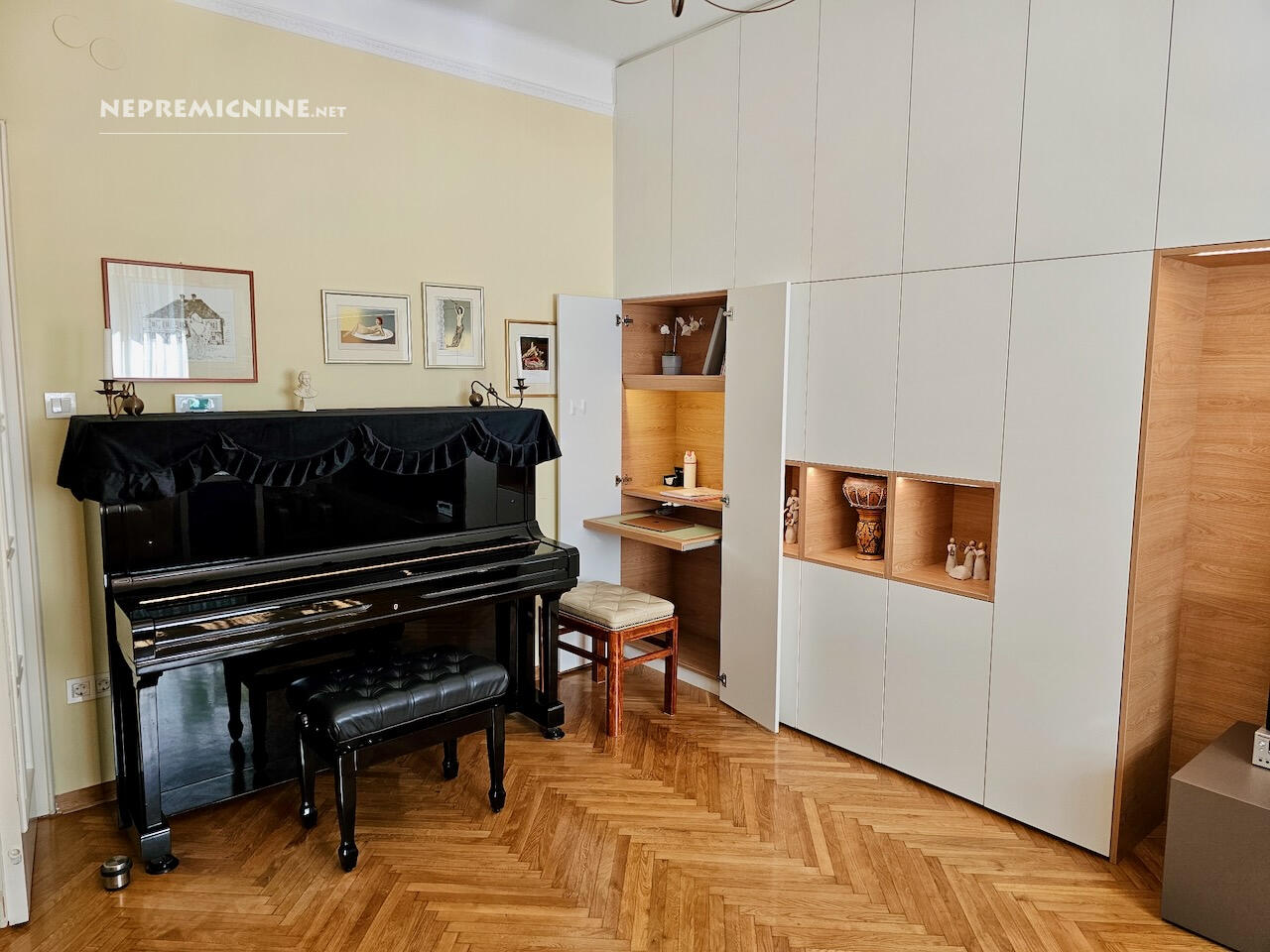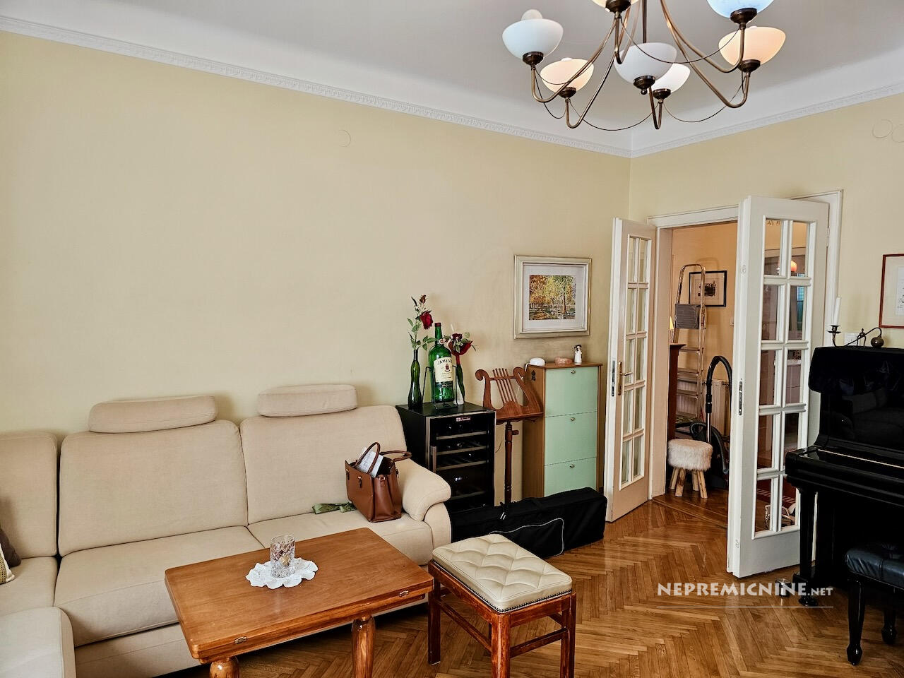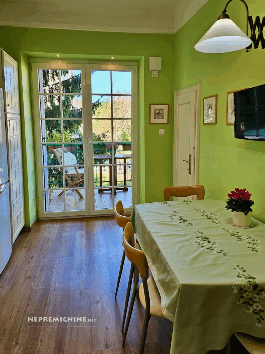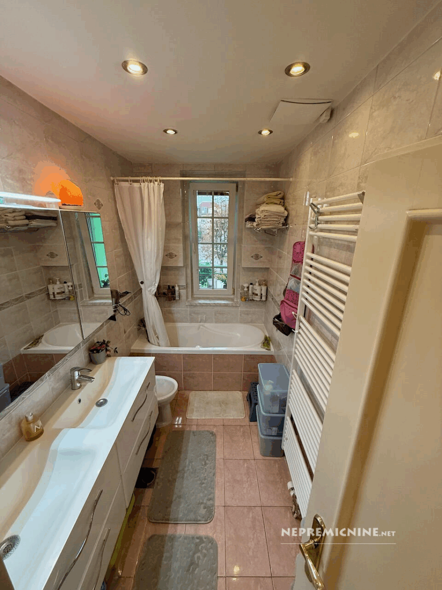 Op een van de meest gewilde locaties in Ljubljana, aan de Tržaška cesta, bevindt zich dit lichte en ruime appartement dat de klassieke charme van stedelijke architectuur combineert met het comfort van modern wonen. De woonruimte beslaat 85,7 m² en het appartement beschikt over een kelder van 7,1 m², een balkon van 7,3 m² en een zolderruimte van 7,5 m², wat aanzienlijke opslagmogelijkheden biedt (in totaal 21,9 m²). Hoge plafonds (2,90 m) en goed geïsoleerde dubbele ramen aan de Tržaška cesta zorgen voor een gevoel van ruimte en licht in het rustige appartement. Automatische rolluiken en moderne plisségordijnen door het hele appartement maken het eenvoudig om licht en privacy te regelen. De indeling is doordacht – een lichte keuken met toegang tot het balkon, een ruime woonkamer, een badkamer met twee wastafels en een apart toilet, een slaapkamer en een kinderkamer. In de kinderkamer is er een grote, apart gelegen garderobekast voor het hele gezin, evenals een vrijstaande, gedeelde slaaphoek voor twee kinderen. Het meubilair in het appartement is van hoge kwaliteit en op maat gemaakt. Het appartement kenmerkt zich door doordachte details die het dagelijks leven vergemakkelijken, zoals airconditioning, ventilatie in de keuken en slaapkamer, goed geplaatste opslagoplossingen en een aangenaam ingericht balkon. Goede buren en een goed onderhouden meergezinsgebouw dragen bij aan het gevoel van huiselijkheid en veiligheid. De locatie is uitstekend – in de directe omgeving zijn winkels, cafés, restaurants, scholen, universiteiten, het zwembad Kolezija en parken (Tivoli, Rožnik, park Toscanini), terwijl het appartement rust en privacy behoudt. Snelle toegang tot het stadscentrum zorgt ervoor dat u alles binnen handbereik heeft, terwijl u geniet van het comfort van thuis. Dit is een appartement voor degenen die elegantie, comfort, hoogwaardige stedelijke bewoning en een aangename, ontspannen thuisomgeving waarderen.