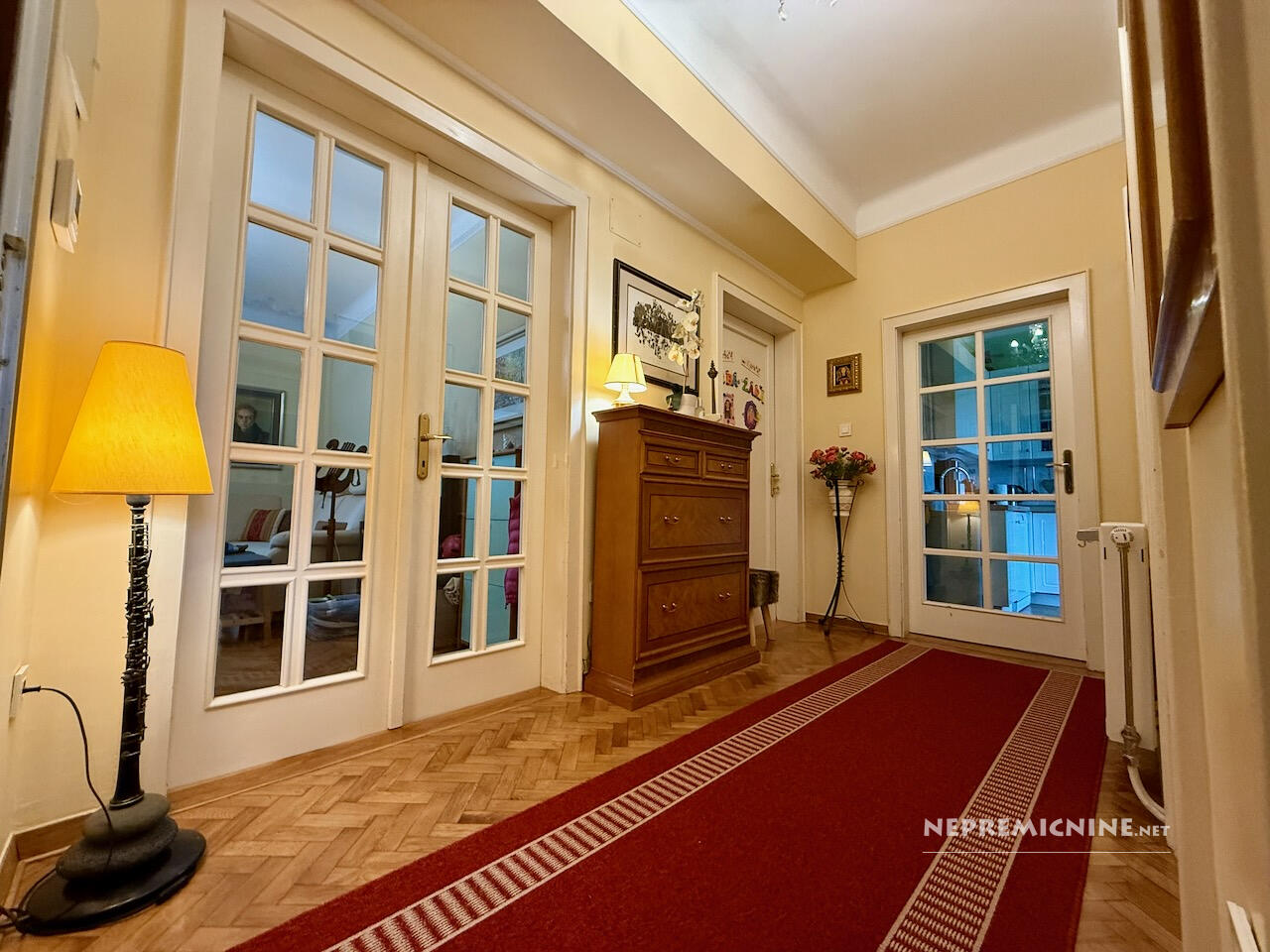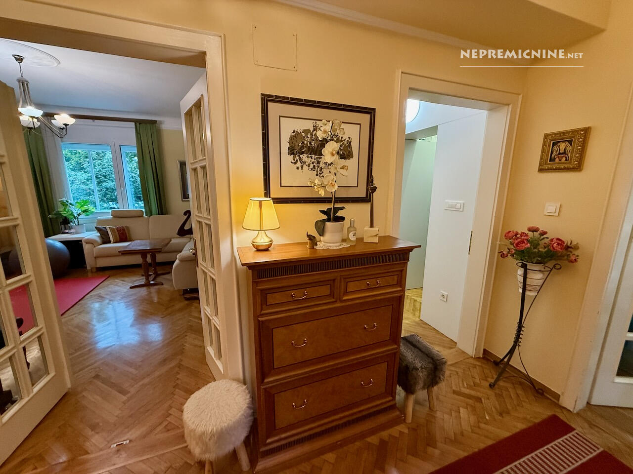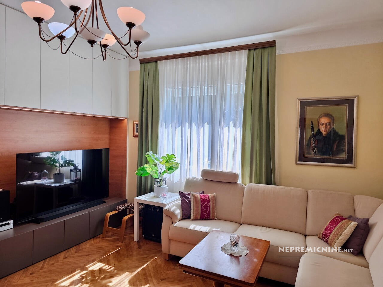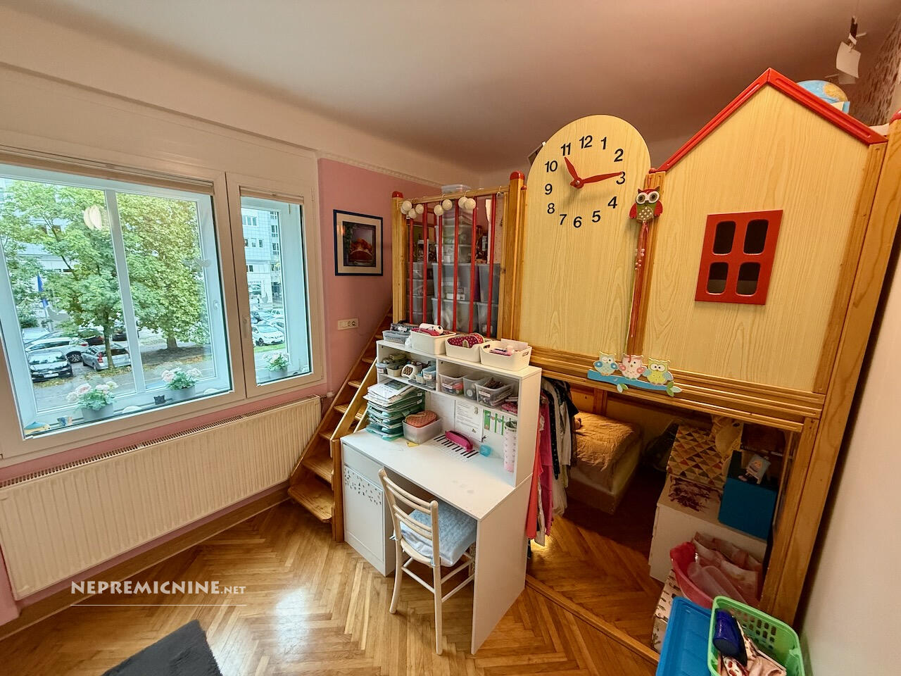 Op een van de meest gewilde locaties in Ljubljana, aan de Tržaška cesta, bevindt zich dit lichte en ruime appartement dat de klassieke charme van stedelijke architectuur combineert met het comfort van modern wonen. De woonruimte beslaat 85,7 m² en het appartement beschikt over een kelder van 7,1 m², een balkon van 7,3 m² en een zolderruimte van 7,5 m², wat aanzienlijke opslagmogelijkheden biedt (in totaal 21,9 m²). Hoge plafonds (2,90 m) en goed geïsoleerde dubbele ramen aan de Tržaška cesta zorgen voor een gevoel van ruimte en licht in het rustige appartement. Automatische rolluiken en moderne plisségordijnen door het hele appartement maken het eenvoudig om licht en privacy te regelen. De indeling is doordacht – een lichte keuken met toegang tot het balkon, een ruime woonkamer, een badkamer met twee wastafels en een apart toilet, een slaapkamer en een kinderkamer. In de kinderkamer is er een grote, apart gelegen garderobekast voor het hele gezin, evenals een vrijstaande, gedeelde slaaphoek voor twee kinderen. Het meubilair in het appartement is van hoge kwaliteit en op maat gemaakt. Het appartement kenmerkt zich door doordachte details die het dagelijks leven vergemakkelijken, zoals airconditioning, ventilatie in de keuken en slaapkamer, goed geplaatste opslagoplossingen en een aangenaam ingericht balkon. Goede buren en een goed onderhouden meergezinsgebouw dragen bij aan het gevoel van huiselijkheid en veiligheid. De locatie is uitstekend – in de directe omgeving zijn winkels, cafés, restaurants, scholen, universiteiten, het zwembad Kolezija en parken (Tivoli, Rožnik, park Toscanini), terwijl het appartement rust en privacy behoudt. Snelle toegang tot het stadscentrum zorgt ervoor dat u alles binnen handbereik heeft, terwijl u geniet van het comfort van thuis. Dit is een appartement voor degenen die elegantie, comfort, hoogwaardige stedelijke bewoning en een aangename, ontspannen thuisomgeving waarderen.