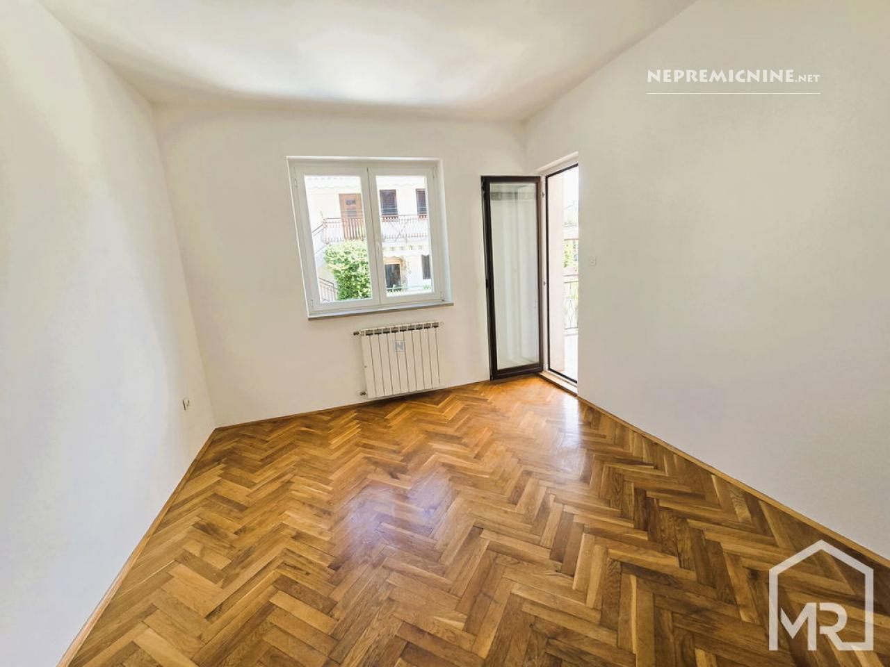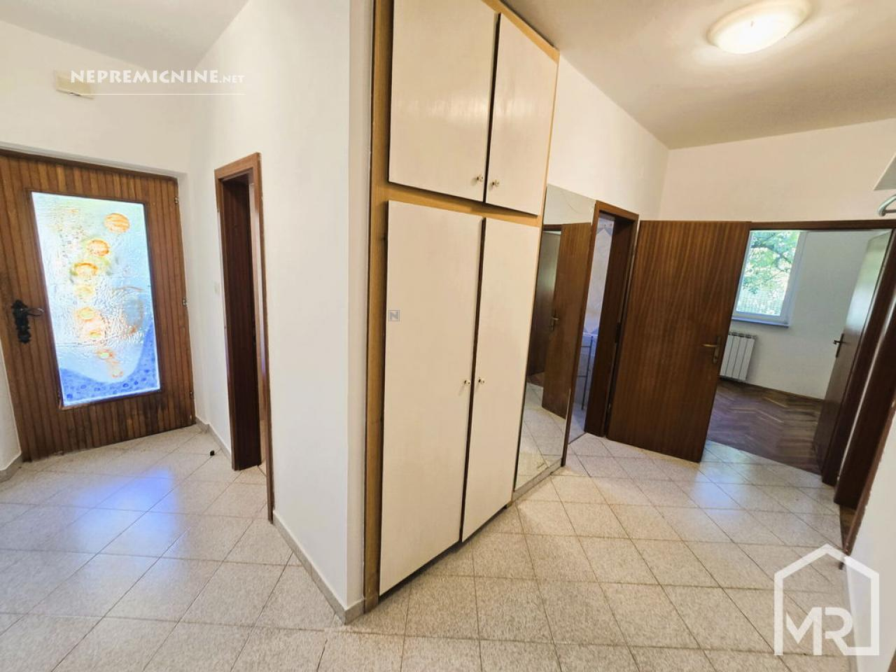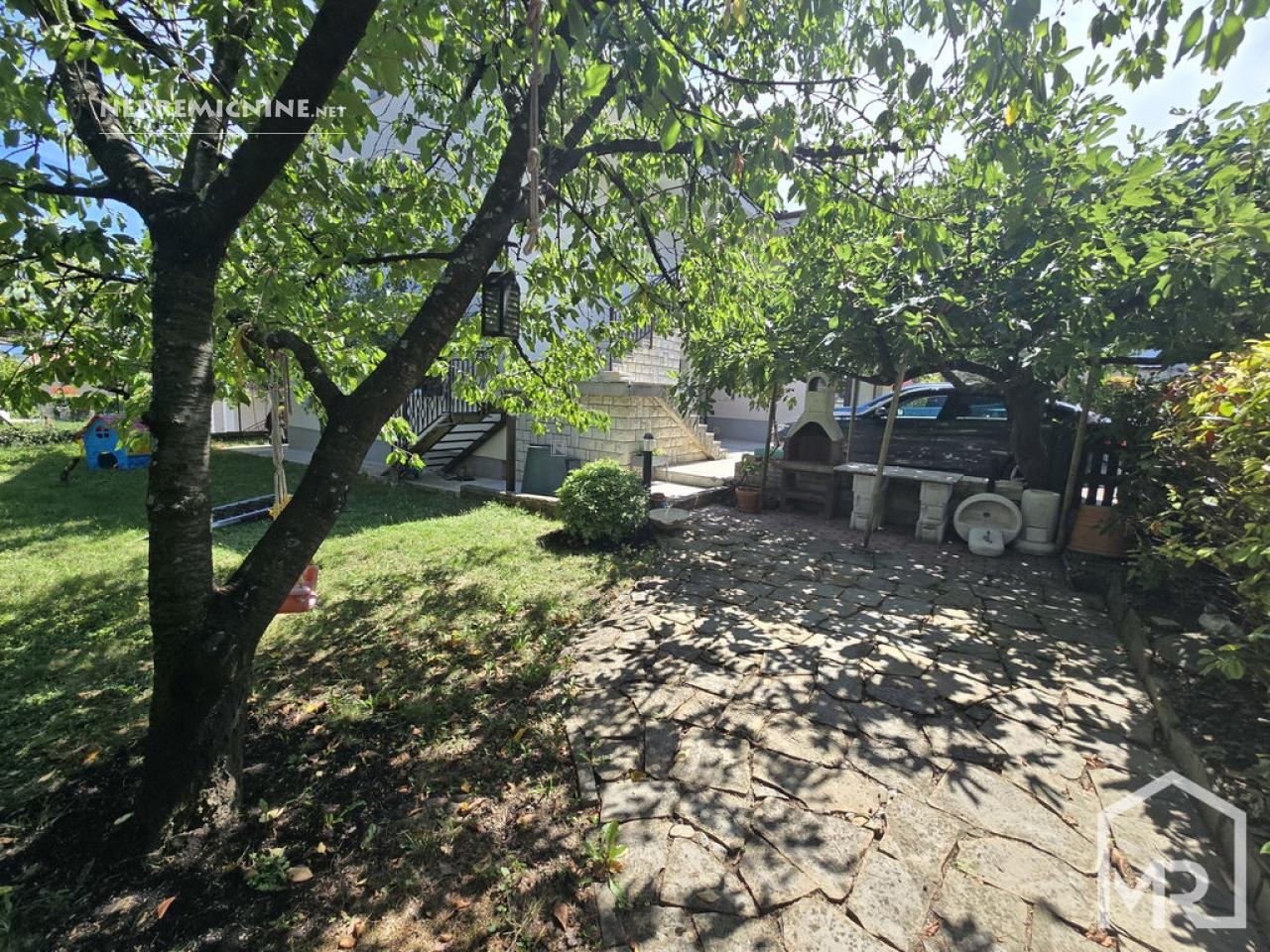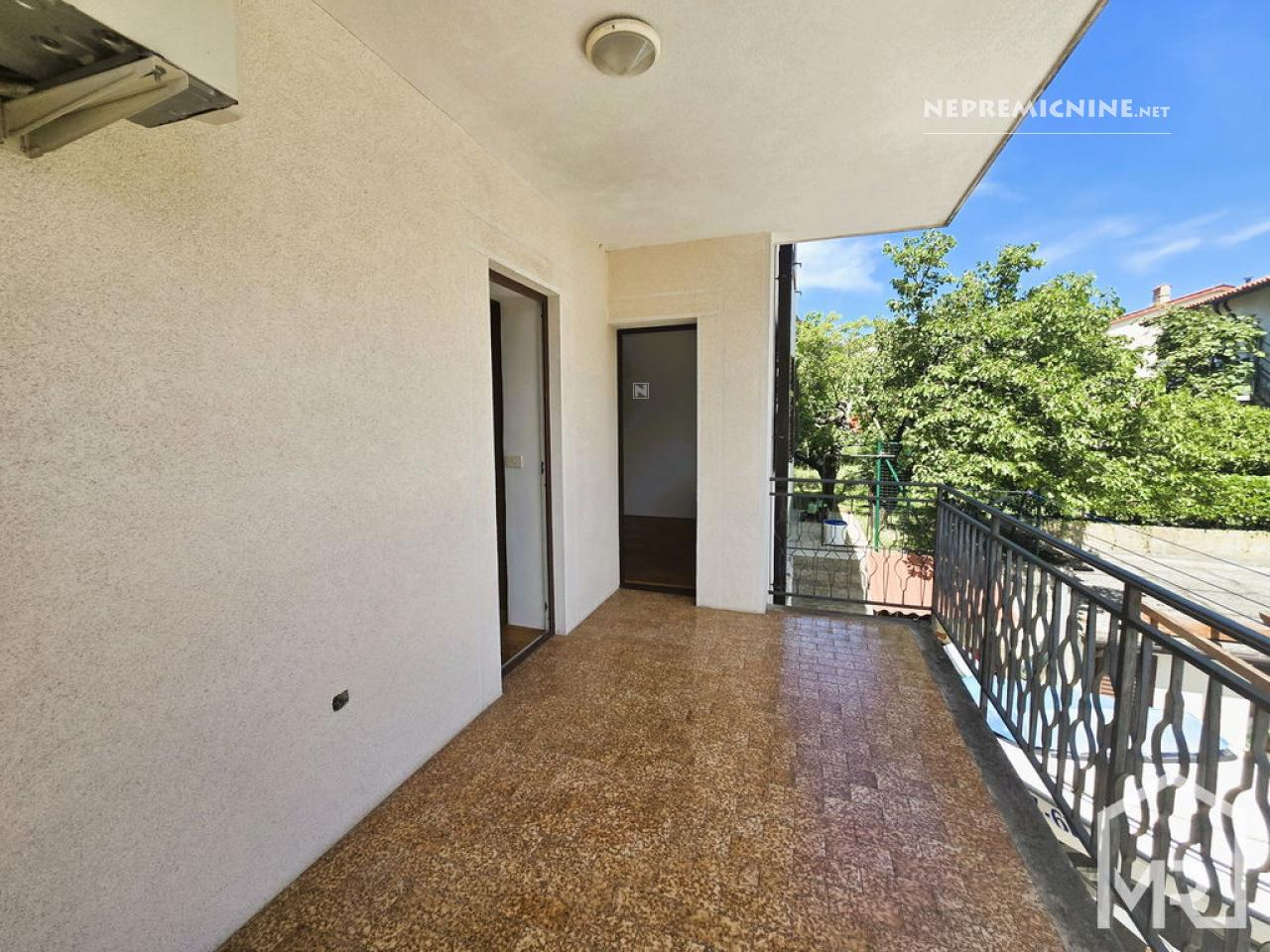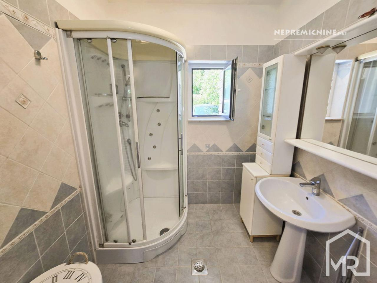 Op een uitstekende en zeldzaam herhaalbare locatie bieden wij exclusief een begane grond 4-kamer appartement met een perceel van 81 m² aan, gelegen in een gezinswoning in Jagodje. Het huis, gebouwd in 1979 en gerenoveerd in 2006, bestaat uit twee verdiepingen, elk met een apart appartement. Het te koop aangeboden appartement bevindt zich op de begane grond en beschikt over een eigen tuin. Het appartement heeft een netto vloeroppervlak van 127,3 m² en een bruikbare oppervlakte van 101,7 m². Het omvat een hal, een apart toilet, een ruime woonkamer met keuken (op het oosten), met toegang tot een groot balkon op het noordoosten, een glazen loggia op het zuidoosten, drie slaapkamers en een badkamer met douche. De tuin van 81 m² is voorzien van een verzorgde gazon met fruitbomen (kers, vijg), een buitenbarbecue en een stenen tafel, evenals parkeergelegenheid voor twee auto’s. Het appartement heeft ook twee bergingen, een kleinere voor gereedschap onder de trap naar de tweede verdieping en een grotere van 15,6 m² met een stookruimte. In 2006 zijn de gevel en ramen (PVC) vernieuwd, en in 2024 is het dak gerenoveerd. De woonkamer is voorzien van airconditioning en de verwarming is geregeld met radiatoren (centrale verwarming op stookolie). Het appartement wordt gedeeltelijk gemeubileerd verkocht of in overleg. De bovenverdieping krijgt een volledig aparte ingang aan de andere kant, wat de privacy zal verbeteren. De locatie is uitstekend en rustig, met alle voorzieningen in de directe omgeving (winkel, postkantoor, bushalte, apotheek, restaurants) en het strand van San Simon is slechts een paar minuten lopen. De documentatie is in orde (bouw- en gebruiksvergunning), met gescheiden meters. Wij raden een bezichtiging en aankoop aan!