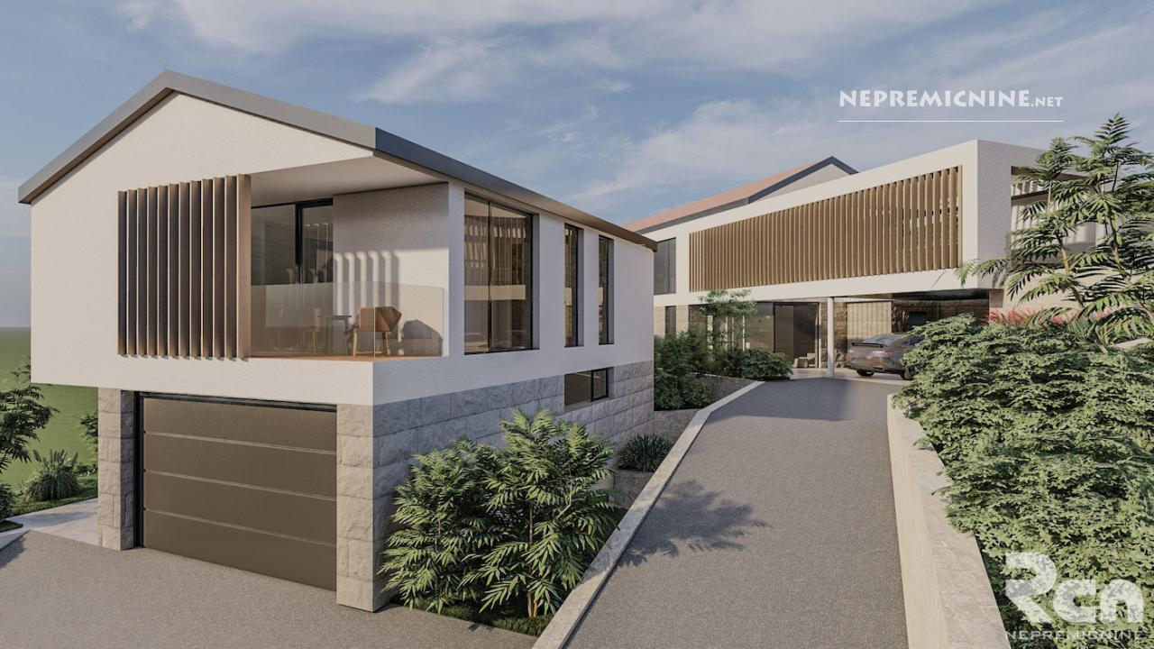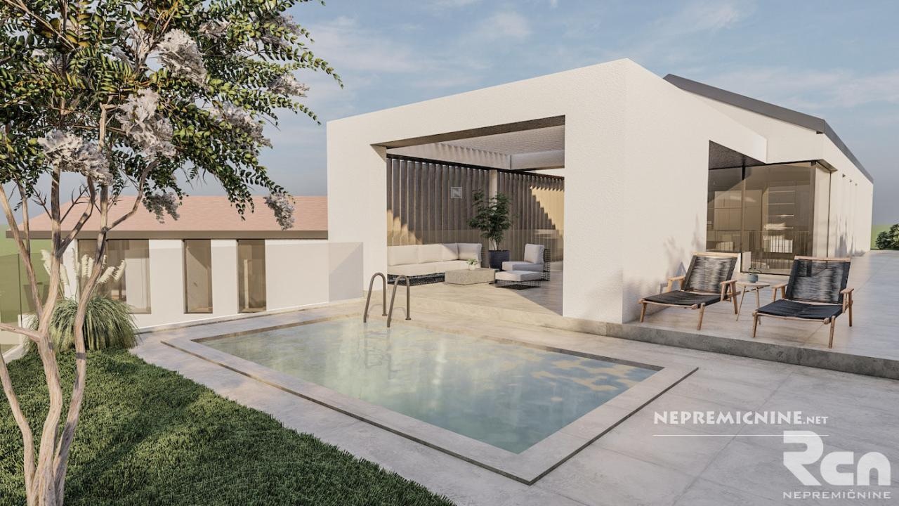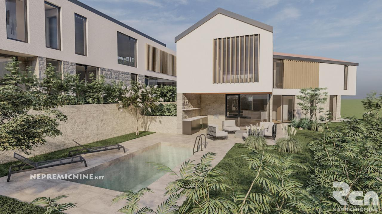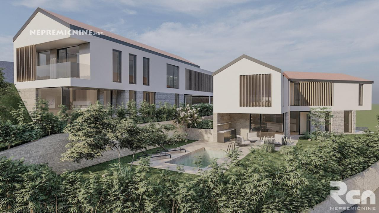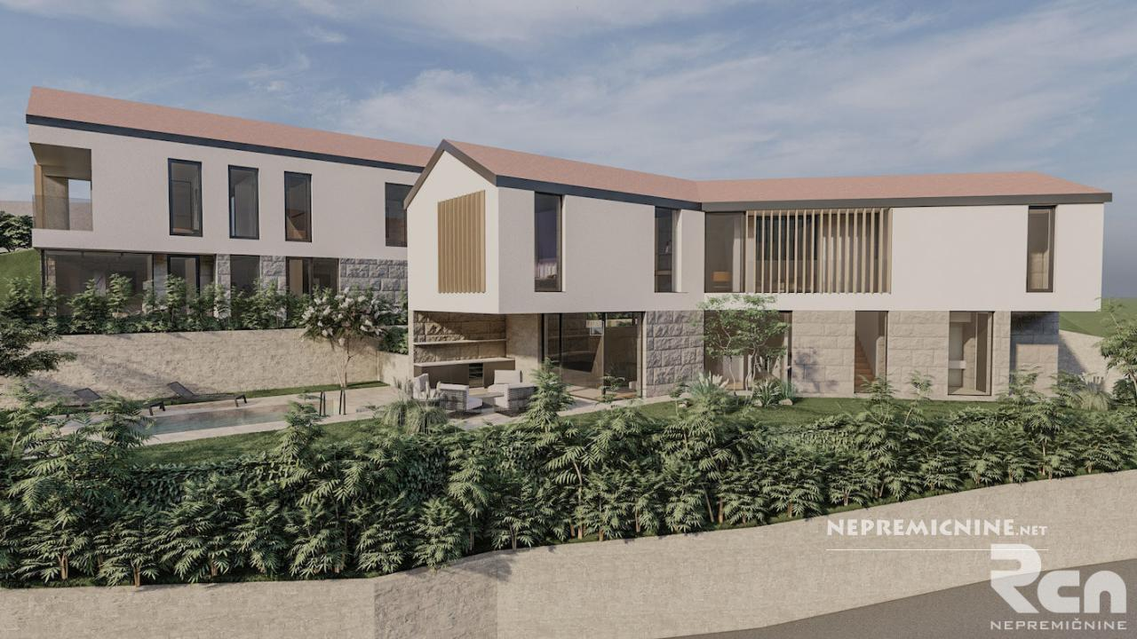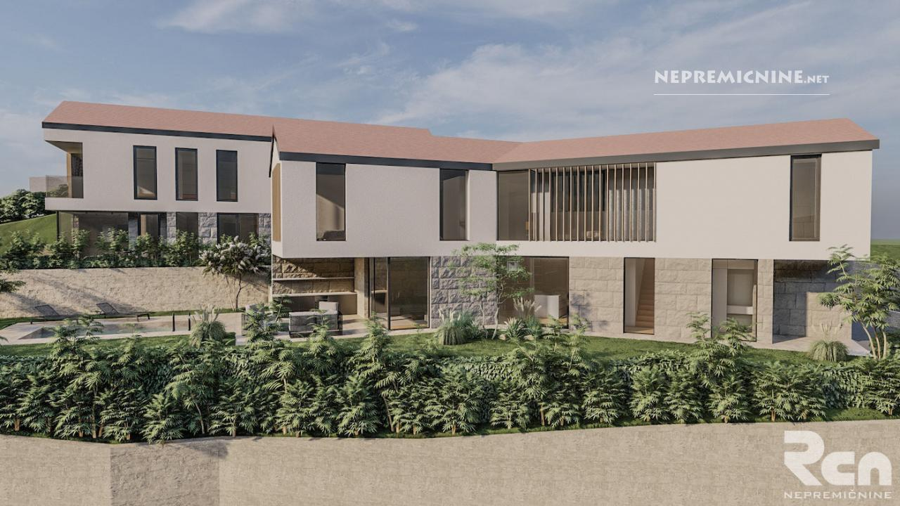 Ontdek een unieke kans om een luxe villa te bouwen op een bouwgrond van 653 m² in het rustige en goed bereikbare Kampel, nabij het stadscentrum van Koper. Deze bouwgrond wordt geleverd met een rechtsgeldige bouwvergunning voor een moderne eengezinsvilla met zwembad, dubbele garage en extra parkeergelegenheid voor gasten. De villa is ontworpen met een kelder, begane grond en eerste verdieping, met een netto vloeroppervlak van 263 m². De kelder biedt een wellnessruimte met sauna’s, een jacuzzi en een technische ruimte. De begane grond omvat een ruime woonruimte, een garage, een overdekt terras en een zwembad. Op de eerste verdieping bevinden zich twee slaapkamers met eigen badkamers en twee extra kamers voor kinderen of een thuiskantoor. De villa is ontworpen met een moderne architectuur, met een witte gevel, houten lamellen en lokale stenen. Het perceel is aangesloten op de openbare infrastructuur en biedt een energiezuinige verwarmingsoplossing met een lucht-water warmtepomp. Kampel is een vredige woonwijk met snelle toegang tot scholen, winkels, de jachthaven en stranden, en biedt een uitstekende investering in een zich ontwikkelende regio.