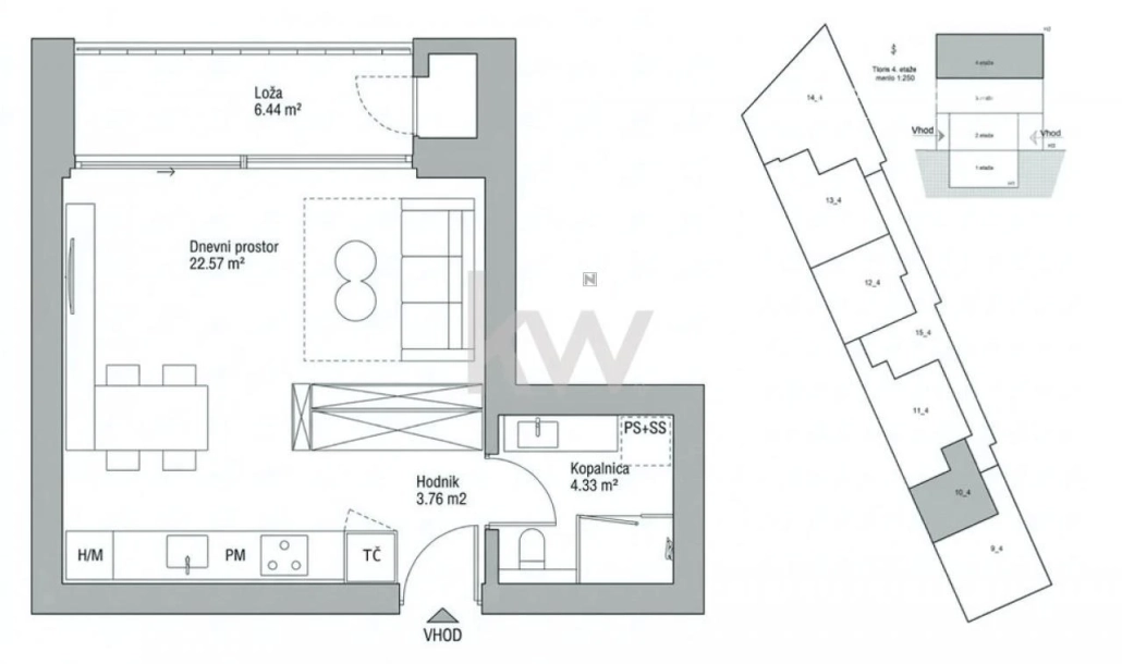 Ontdek deze exclusieve garsonjera in het nieuwbouwproject TRŽAŠKA LIVING, gelegen in het hart van Ljubljana Vič. Dit moderne appartement, dat in maart 2027 wordt opgeleverd, biedt een hoogwaardige woonervaring met een oppervlakte van 56,5 m². Het appartement bevindt zich op de tweede verdieping en is georiënteerd op het zuidwesten, wat zorgt voor veel natuurlijk licht. Het beschikt over een ruime woon-slaapkamer met keuken en eetgedeelte, een badkamer en een loggia. Daarnaast is er een ruime berging in de kelder en een overdekte parkeerplaats. Het gebouw is ontworpen met hoogwaardige materialen en voldoet aan strenge energie-efficiëntie-eisen, waaronder een warmtepomp voor verwarming en warm water, vloerverwarming en driedubbele beglazing. De locatie biedt gemakkelijke toegang tot lokale voorzieningen zoals winkels en restaurants, en is goed verbonden met het openbaar vervoer. Ljubljana Vič is een levendige wijk met een rijke geschiedenis en biedt tal van recreatieve mogelijkheden, waaronder nabijgelegen parken en culturele bezienswaardigheden.