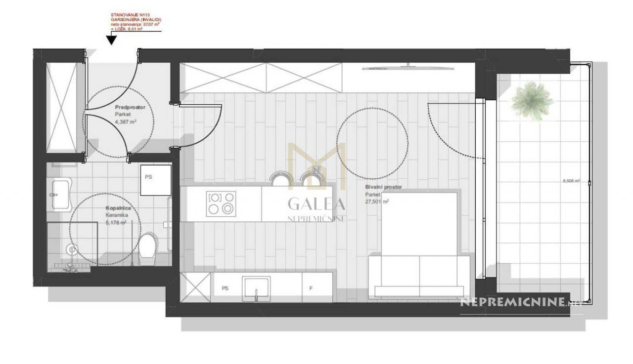 Ontdek deze exclusieve garsonjera in de nieuwe woonwijk ‘Zenit Pobrežje’ in Maribor. Dit moderne appartement van 62,54 m² biedt een comfortabele leefruimte met een balkon van 8,5 m² en een eigen parkeerplaats in de garage, inbegrepen in de prijs. Het appartement is gelegen op de eerste verdieping van een vier verdiepingen tellend gebouw en beschikt over een ruime woonruimte, een badkamer met douche en een praktische berging. De woning is voorzien van vloerverwarming en wordt verwarmd via een gezamenlijke warmtepomp, wat zorgt voor een energiezuinige en comfortabele leefomgeving. De locatie is ideaal, met alle benodigde voorzieningen zoals winkels, scholen en openbaar vervoer in de directe nabijheid. Maribor, gelegen in de regio Podravska, biedt een rijke culturele geschiedenis en is een uitstekende uitvalsbasis voor het verkennen van de prachtige Sloveense natuur en nabijgelegen toeristische attracties zoals het Pohorje-gebergte en de wijnroutes. Mis deze kans niet om te wonen in een van de meest gewilde buurten van Maribor.
