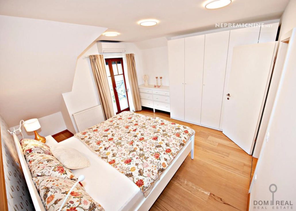 Op een zeer gewilde locatie in Voge, Kranj, staat deze exclusieve gerenoveerde gezinswoning te koop. Deze halfvrijstaande woning biedt een doordachte indeling van ruimtes en comfortabel wonen. De ruimtes zijn stijlvol en functioneel ingericht. Op de begane grond vindt u een open plattegrond met een moderne keuken, eetkamer en woonkamer, compleet met een sfeervolle open haard. Daarnaast zijn er op de begane grond een badkamer en een kantoor. Op de eerste verdieping bevinden zich twee ruime slaapkamers en een badkamer. De zolder biedt een extra studio die geschikt is als werkruimte of jeugdkamer, evenals een garderobe. De woning beschikt over een carport en is volledig omheind. Verwarming is op gas. Meubilair kan in overleg achterblijven. De woning is direct beschikbaar en heeft een geordend kadaster. Voor meer informatie en bezichtiging kunt u contact opnemen.
