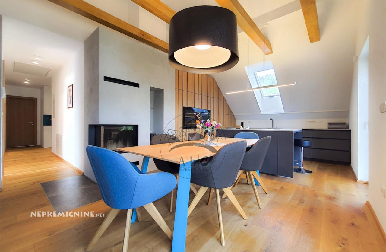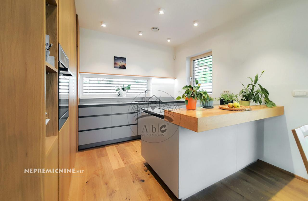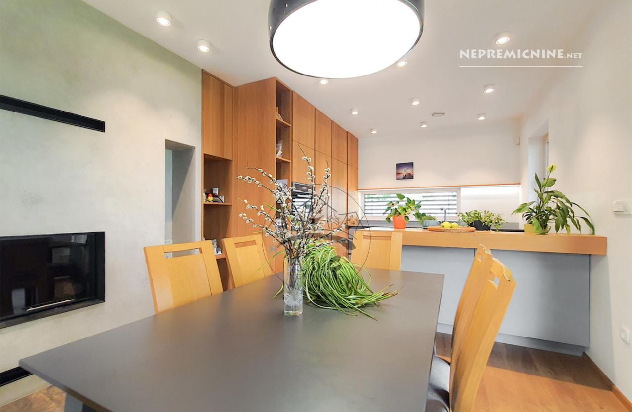 Ontdek deze exclusieve moderne villa in de premium locatie van Kamnik, gebouwd in 2018. Deze architectonische parel biedt een perfecte combinatie van stedelijk comfort en natuurlijke rust. Gelegen in een elite wijk, biedt de villa een prachtig uitzicht en is omgeven door parken en recreatieve paden. De woning beschikt over drie verdiepingen met op maat gemaakte interieurs, een wellnessruimte met fitness en sauna, en een ruime woonkamer met toegang tot een terras en een verzorgde tuin. De villa biedt ook een garage en parkeerplaatsen voor meerdere voertuigen. Kamnik is een charmante stad met een rijke geschiedenis en biedt gemakkelijke toegang tot alle voorzieningen zoals scholen, winkels en het stadscentrum. De regio Ljubljana-okolica staat bekend om zijn prachtige natuur en toeristische attracties zoals de Velika Planina en de Kamnik-Savinja Alpen.