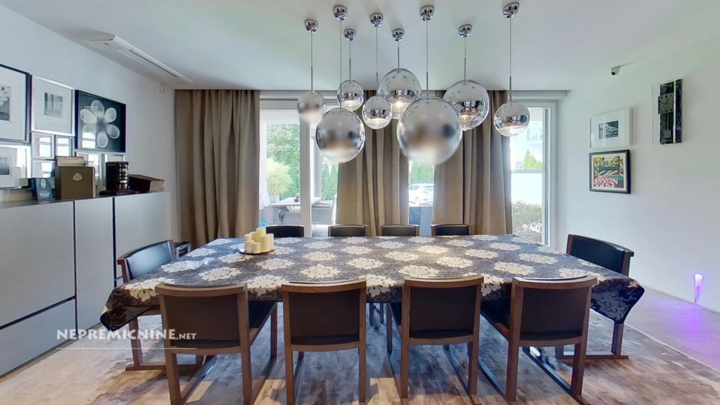 Ontdek dit uitzonderlijk moderne en kwalitatief hoogstaande vrijstaande huis in Ljubljana Moste, gelegen op een rustige en verkeersvrije straat. Met een indrukwekkend ontwerp en doordachte indeling biedt deze woning alles wat u nodig heeft voor een comfortabel leven. De woning beschikt over een ruime boerderijkamer met open haard, ideaal voor bijeenkomsten, een luxe keuken met eetkamer en een grote woonkamer met open haard. Geniet van de Turkse sauna, jacuzzi en wintertuin. De bovenverdieping biedt mogelijkheden voor twee volledig gescheiden tweekamerappartementen, perfect voor meer generatiewonen of gasten. De omgeving is privé en deels groen, met voldoende parkeergelegenheid en beveiliging door videobewaking en alarmsysteem. Nabij alle voorzieningen zoals scholen, recreatiegebieden en openbaar vervoer. Mis deze unieke kans niet om te wonen in een huis dat alles op één plek biedt.