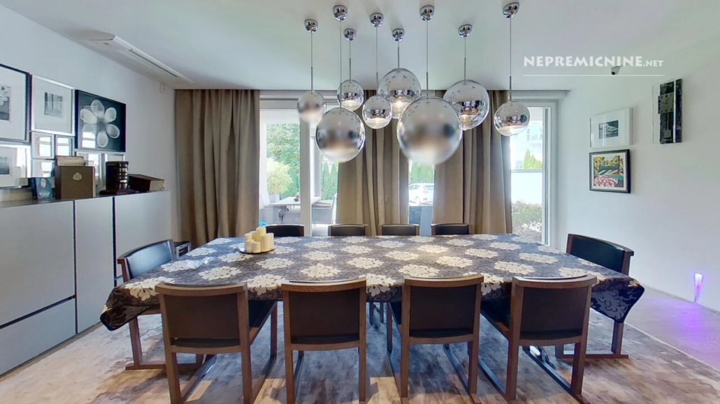 Ontdek deze uitzonderlijke moderne en hoogwaardige vrijstaande woning in een rustige straat in Ljubljana Moste. Met een indrukwekkend ontwerp en een doordachte, functionele indeling biedt dit huis alles wat u nodig heeft voor een luxueus leven. De woning beschikt over een ruime boerderijkamer met open haard, ideaal voor bijeenkomsten, een keuken met eetkamer en een grote woonkamer met open haard, een wintertuin, een Turkse sauna, een jacuzzi en een grote ouderslaapkamer met eigen badkamer en kleedkamer. De bovenverdieping kan worden omgevormd tot twee volledig gescheiden tweekamerappartementen, perfect voor meer generaties of gasten. De omgeving van het huis is privé en gedeeltelijk groen, met voldoende parkeergelegenheid en een afgesloten ruimte voor gereedschap. De woning is uitgerust met vloerverwarming, stadsverwarming op gas, een alarmsysteem en videobewaking. Gelegen nabij alle voorzieningen zoals scholen, kinderdagverblijven, recreatiegebieden, natuur, bushaltes en snelwegafritten. Ljubljana Moste biedt een perfecte mix van stedelijke en natuurlijke elementen, met gemakkelijke toegang tot het stadscentrum en de prachtige Sloveense natuur.