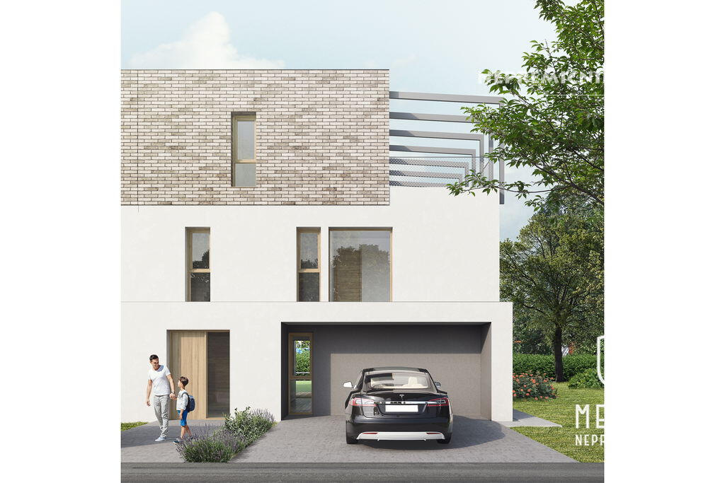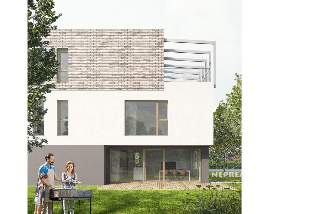 Het perceel is bestemd voor de bouw van een moderne tweewoonst (eenheden A en B) met een netto vloeroppervlak van 180 m² per eenheid.