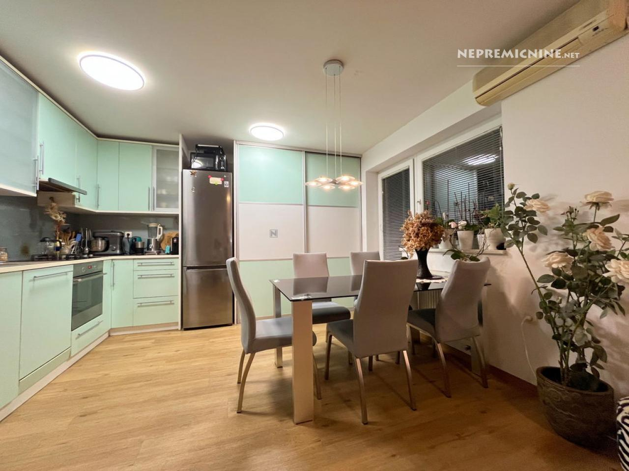 Dit prachtige driekamerappartement van 88,8 m² in Novo Mesto biedt een unieke kans voor wie op zoek is naar een comfortabel en modern woonruimte. Gelegen in een rustige buurt, biedt het appartement een serene omgeving met een prachtig uitzicht op de omliggende velden vanaf het balkon en de kleine terras. Het appartement bevindt zich op de derde verdieping van een gebouw met lift en is ideaal georiënteerd om de hele dag door van natuurlijk licht te genieten. De indeling omvat een ruime hal met ingebouwde kast, een kleinere en een grotere slaapkamer met loggia, een badkamer met balkon en een open woonruimte met een grote woonkamer, eetkamer en keuken met toegang tot het terras. De nabijheid van essentiële infrastructuur en talrijke wandel- en fietspaden maakt deze locatie bijzonder aantrekkelijk. Novo Mesto, gelegen in de regio Dolenjska, staat bekend om zijn rijke culturele erfgoed en biedt tal van toeristische attracties zoals het Dolenjski Museum en de pittoreske oude stad. De regio biedt ook uitstekende vervoersmogelijkheden en een scala aan winkels en restaurants.