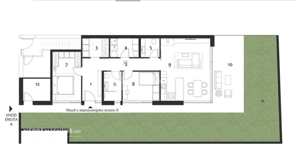 Ontdek het moderne en aantrekkelijke appartement in Vila Stanežiče, gelegen in een rustig en goed onderhouden wijk aan de rand van Ljubljana. Dit drie-slaapkamer appartement op de begane grond biedt een royale woonoppervlakte van 91,8 m², inclusief een ruime opslagruimte van 15,7 m². Het appartement beschikt over een eigen ingang, een fietsenstalling en twee eigen parkeerplaatsen, waarvan één voorbereid is voor een elektrische laadpaal. Geniet van de prachtige uitzichten op de Šmarna Gora en de omliggende heuvels vanaf de ruime terrassen. De woning is uitgerust met hoogwaardige voorzieningen zoals vloerverwarming, een warmtepomp met geosonde, een ventilatiesysteem met luchtterugwinning en een biologische zuiveringsinstallatie. De nabijheid van essentiële infrastructuur zoals een bushalte, snelweg, scholen, winkels en het winkelcentrum Aleja maakt het een ideale locatie. Bovendien biedt de omgeving tal van recreatiemogelijkheden zoals wandelen, fietsen en bergbeklimmen. Mis deze kans niet om te wonen in een luxe appartement dat comfort en privacy biedt in een prachtige natuurlijke omgeving.