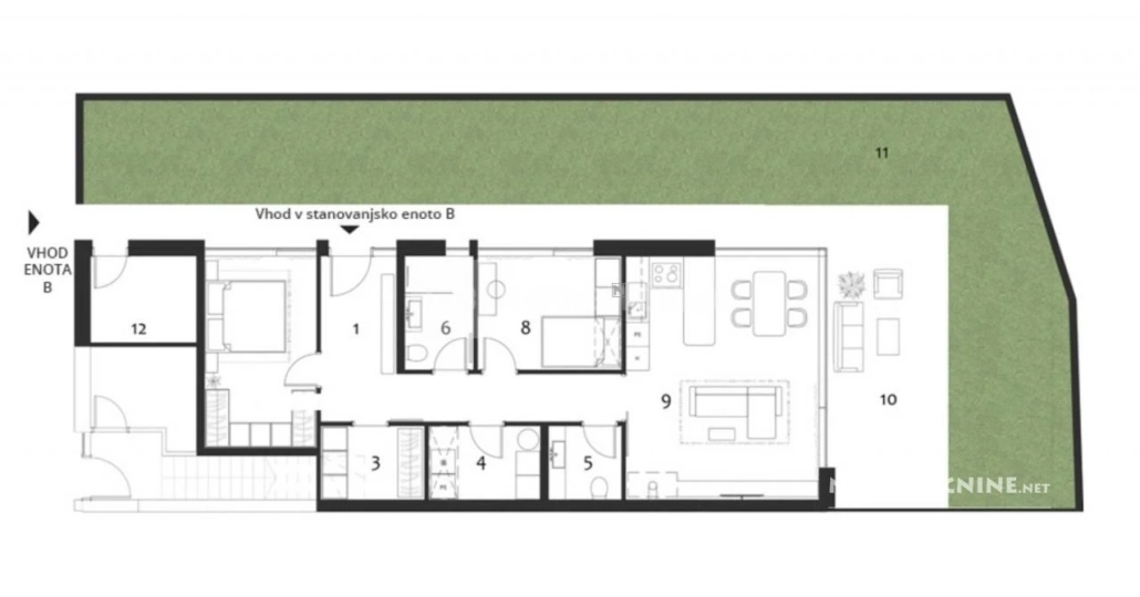 Ontdek het moderne en aantrekkelijke appartement in Vila Stanežiče, gelegen in een rustig en goed onderhouden wijk aan de rand van Ljubljana. Dit drie-slaapkamer appartement op de begane grond biedt een royale woonoppervlakte van 91,8 m² en een extra opslagruimte van 15,7 m². Met een perceelgrootte van 129 m², biedt het appartement een ruime terras en een groene tuin, perfect voor ontspanning en privacy. De woning is uitgerust met vloerverwarming, een warmtepomp met geosonde, en een ventilatiesysteem met luchtterugwinning. Geniet van het prachtige uitzicht op de Šmarna Gora en de omliggende heuvels. De nabijheid van essentiële voorzieningen zoals een bushalte, snelweg, scholen, winkels en het winkelcentrum Aleja maakt het een ideale locatie. Bovendien zijn er tal van recreatiemogelijkheden zoals wandelen, fietsen en bergbeklimmen in de buurt. Dit appartement biedt een unieke kans voor diegenen die op zoek zijn naar een luxe en comfortabele levensstijl in een rustige omgeving.