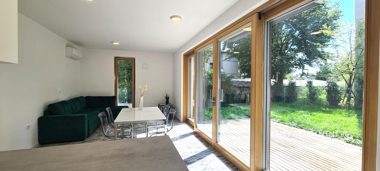 Dit prachtige 4-kamer appartement, gebouwd in 2022, biedt een moderne en comfortabele leefruimte in het centrum van Ljubljana, nabij het Toscaninipark. Met een oppervlakte van 79,4 m² en een extra 120 m² aan tuin, is dit appartement ideaal voor gezinnen of koppels die op zoek zijn naar een stedelijke levensstijl met een vleugje natuur. Het appartement beschikt over een ruime woonkamer met keuken, drie slaapkamers, een badkamer, een apart toilet, en een balkon. Extra voorzieningen zijn onder andere een berging, een eigen parkeerplaats in de garage, en de mogelijkheid om een tweede auto voor het gebouw te parkeren. Het appartement is volledig uitgerust met moderne meubels, vloerverwarming, airconditioning, en een ventilatiesysteem. De nabijheid van scholen, kinderdagverblijven, recreatiegebieden, en openbaar vervoer maakt het een perfecte keuze voor gezinnen. De regio Ljubljana biedt een rijke culturele ervaring met tal van winkels, restaurants, en toeristische attracties binnen handbereik. Het appartement is direct beschikbaar en biedt een unieke kans om te wonen in een van de meest gewilde buurten van de stad.