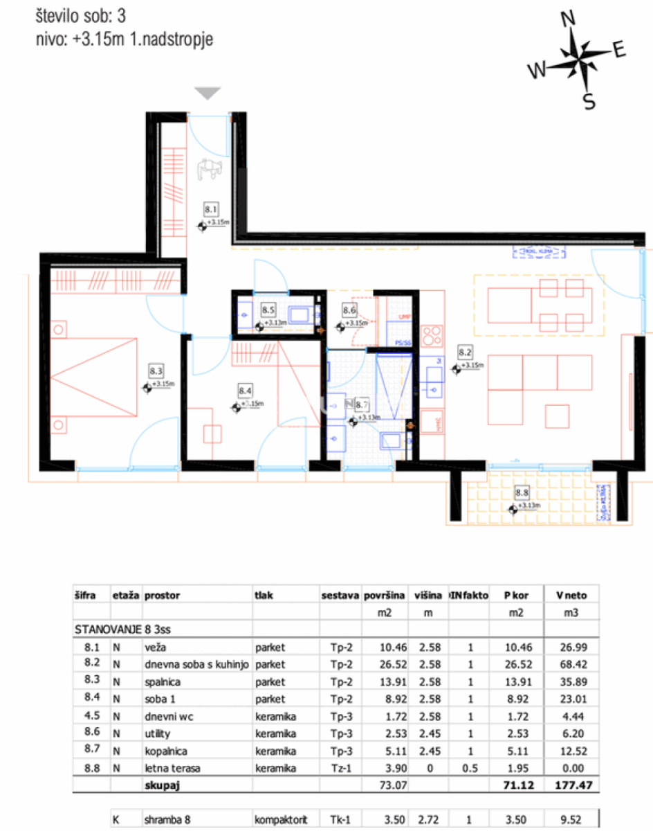 In het rustige en groene Srednje Gameljne, op slechts enkele minuten rijden van het centrum van Ljubljana, bevindt zich een modern ontworpen boutique villa blok met 12 lichte appartementen en prachtige uitzichten op de Julische Alpen, Rašica, Šmarna Gora en de Ljubljanska kotlina. Dit appartement biedt een unieke kans voor veeleisende kopers die op zoek zijn naar een comfortabele en luxe levensstijl in een buurt met adembenemende panoramische uitzichten. De appartementen zijn ontworpen volgens de nieuwste interieurontwerprichtlijnen, wat betekent dat elke vierkante meter optimaal wordt benut voor maximaal comfort. De locatie biedt alle nodige infrastructuur voor een kwalitatief en comfortabel leven, met nabijgelegen winkels en een bushalte die snelle en gemakkelijke verbindingen met alle delen van Ljubljana mogelijk maakt. Geniet van de voordelen van wonen in de natuur, niet ver van de stad, met hoogwaardige materialen en een uitstekende geluids- en thermische isolatie.