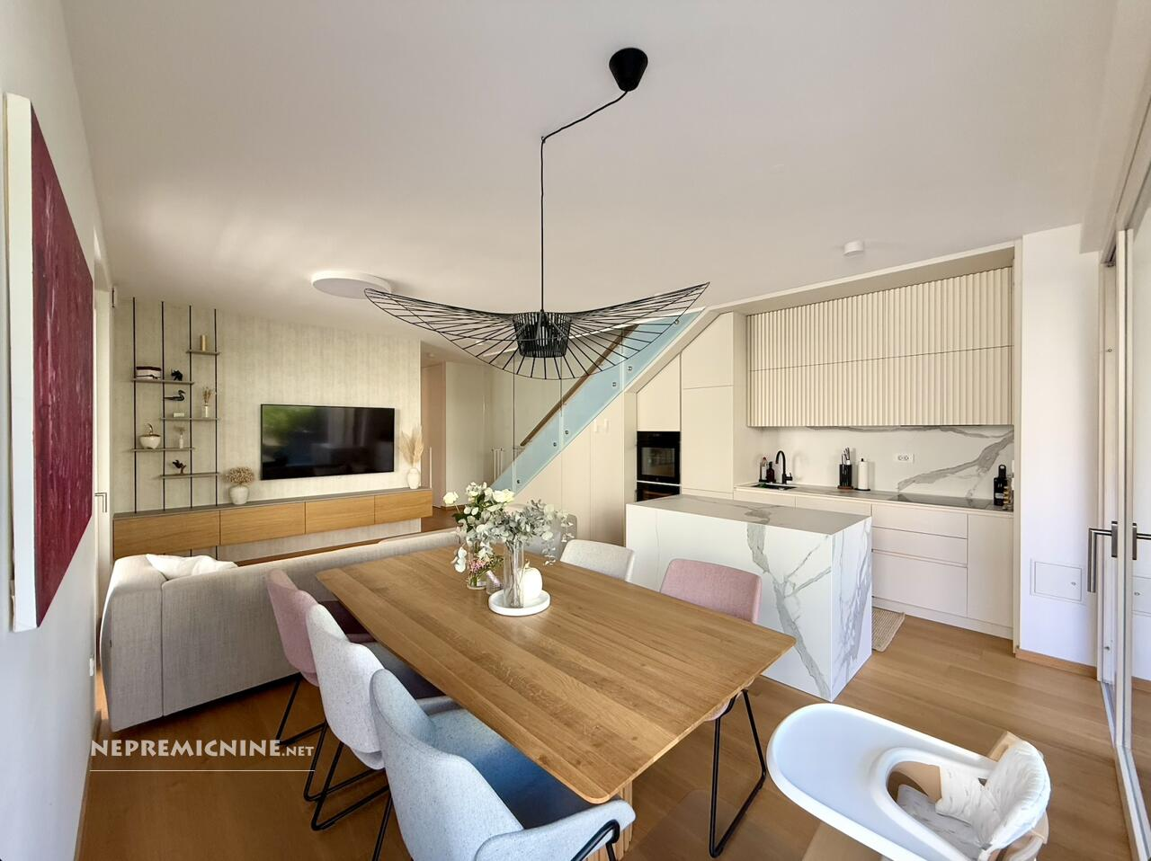 Ontdek dit prachtige, volledig ingerichte 4-slaapkamer appartement in Tacen, gelegen in de regio LJ-mesto. Dit moderne appartement, gebouwd in 2021, biedt een royale woonoppervlakte van 117,1 m² en een perceel van 143 m². Het appartement beschikt over drie slaapkamers en drie badkamers, ideaal voor gezinnen die op zoek zijn naar comfort en ruimte. Geniet van de voordelen van een eigen terras, een tuin en twee parkeerplaatsen in de garage. De woning is uitgerust met vloerverwarming, een ventilatiesysteem en een optische internetverbinding. De nabijheid van scholen, kinderdagverblijven, recreatiegebieden en openbaar vervoer maakt het een ideale locatie voor gezinnen. Tacen biedt een rustige omgeving met gemakkelijke toegang tot de stad Ljubljana, waar u kunt genieten van culturele bezienswaardigheden, winkels en restaurants. De regio staat bekend om zijn prachtige natuur en biedt tal van recreatiemogelijkheden, zoals wandelen en fietsen. Mis deze kans niet om te investeren in een woning in een van de meest gewilde gebieden van Ljubljana.