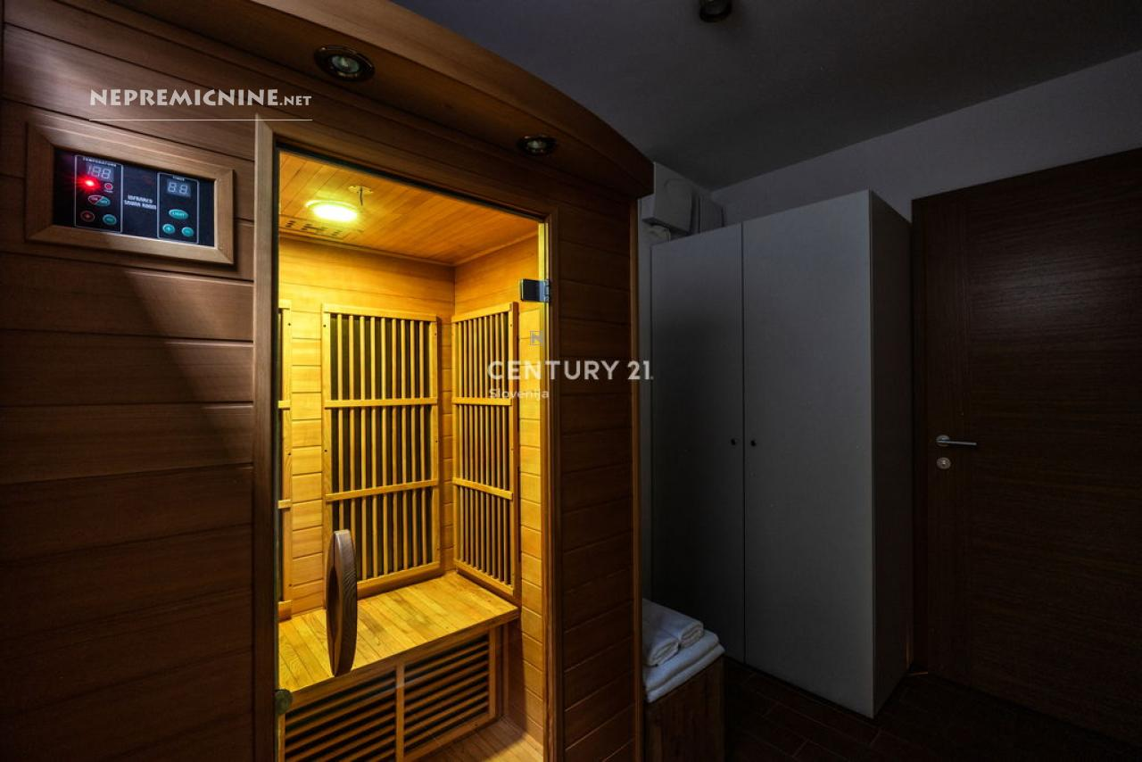 De eerste verdieping verwelkomt u met een studio met een tweepersoonsbed, een infraroodsauna, een moderne badkamer met een grote douche, een toilet en een wasmachine, evenals een ruime terras. De tweede verdieping is een open ruimte die de keuken, eetkamer en woonkamer verbindt, met toegang tot een terras met een prachtig uitzicht op het meer. De keuken is volledig uitgerust met moderne apparatuur en een groot keukeneiland.