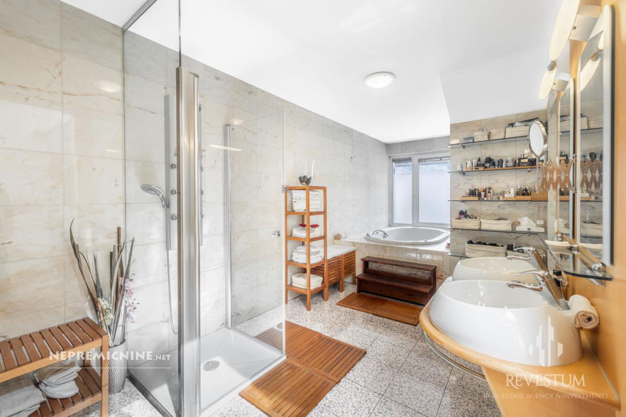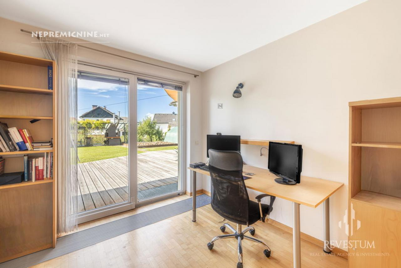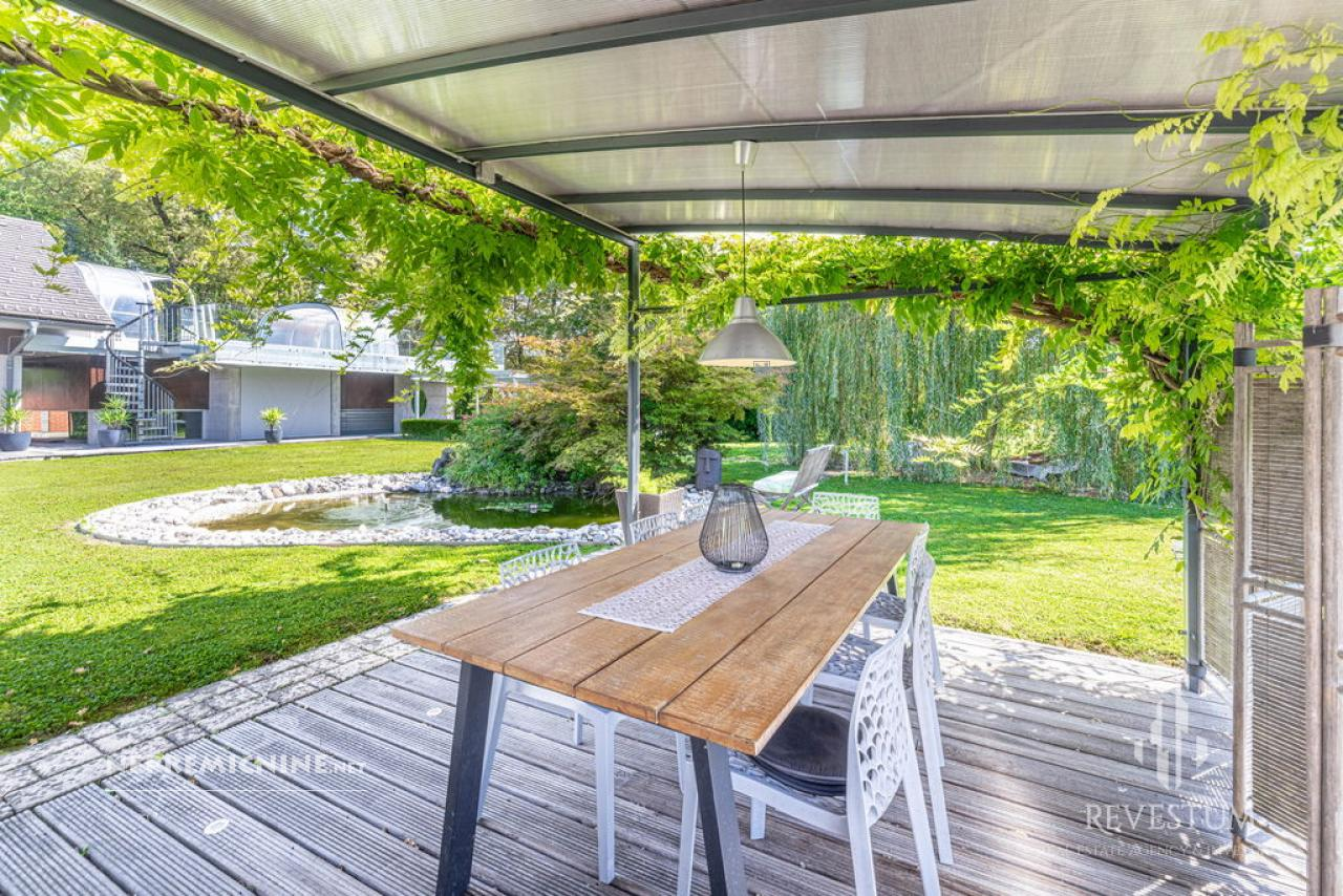 Op een rustige, groene locatie in Kranj bieden wij een deel van een dubbelfamiliehuis aan met een prachtige tuin en tal van voorzieningen voor een zorgeloos gezinsleven. Dit huis is ontworpen voor diegenen die heldere ruimtes, contact met de natuur en luxe extra’s waarderen – van een binnenzwembad en sauna tot panoramische terrassen en een volledig aangelegde tuin. De woning is volledig gerenoveerd en uitgebreid in 2003, met een zwembad en binnenplaats die in 2015 zijn vernieuwd. De indeling omvat een ruime woonkamer met keuken en eetkamer, 4 slaapkamers, 3 badkamers plus een extra toilet met urinoir, en een fitnessruimte op de bovenverdieping met toegang tot het binnenzwembad. De buitenruimte biedt een omheinde en verlichte binnenplaats, een garage voor 3 voertuigen, extra parkeerplaatsen, een kruidentuin en verwarmde kas, een decoratieve vijver, en een zomerkeuken met bakoven. Technische kenmerken omvatten een geavanceerde geothermische warmtepomp, vloerverwarming, en meerdere airconditioners. De woning biedt een intieme binnenplaats, een binnenzwembad, sauna en bubbelbad voor een ontspannende privéhoek die moeilijk elders te vinden is.