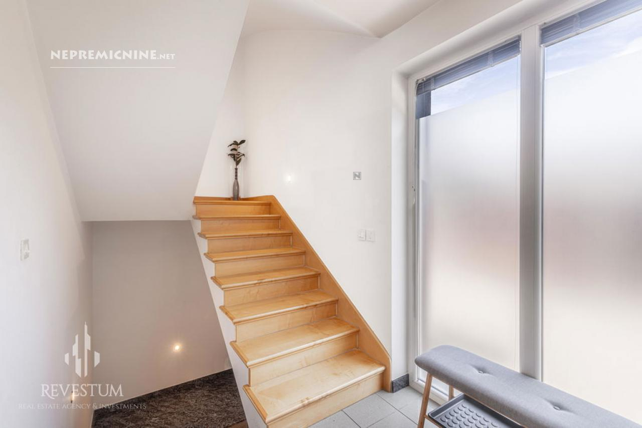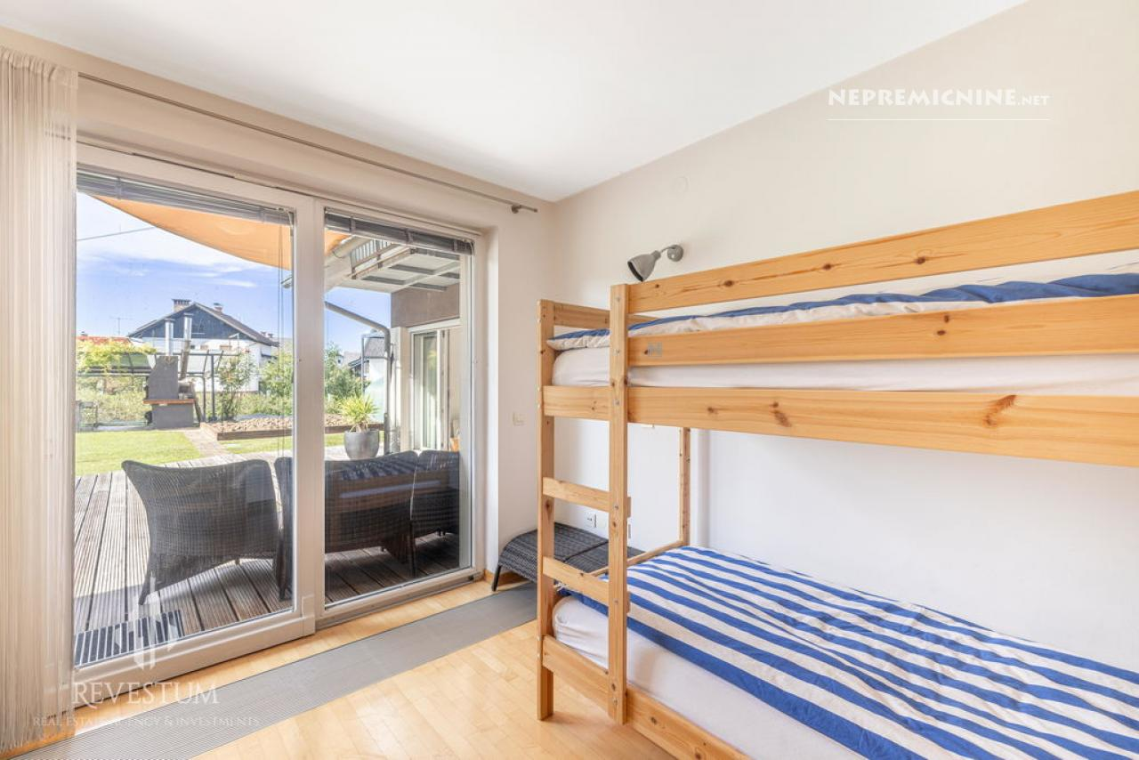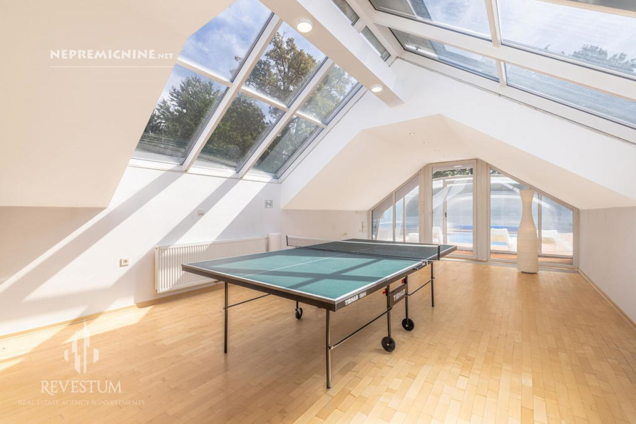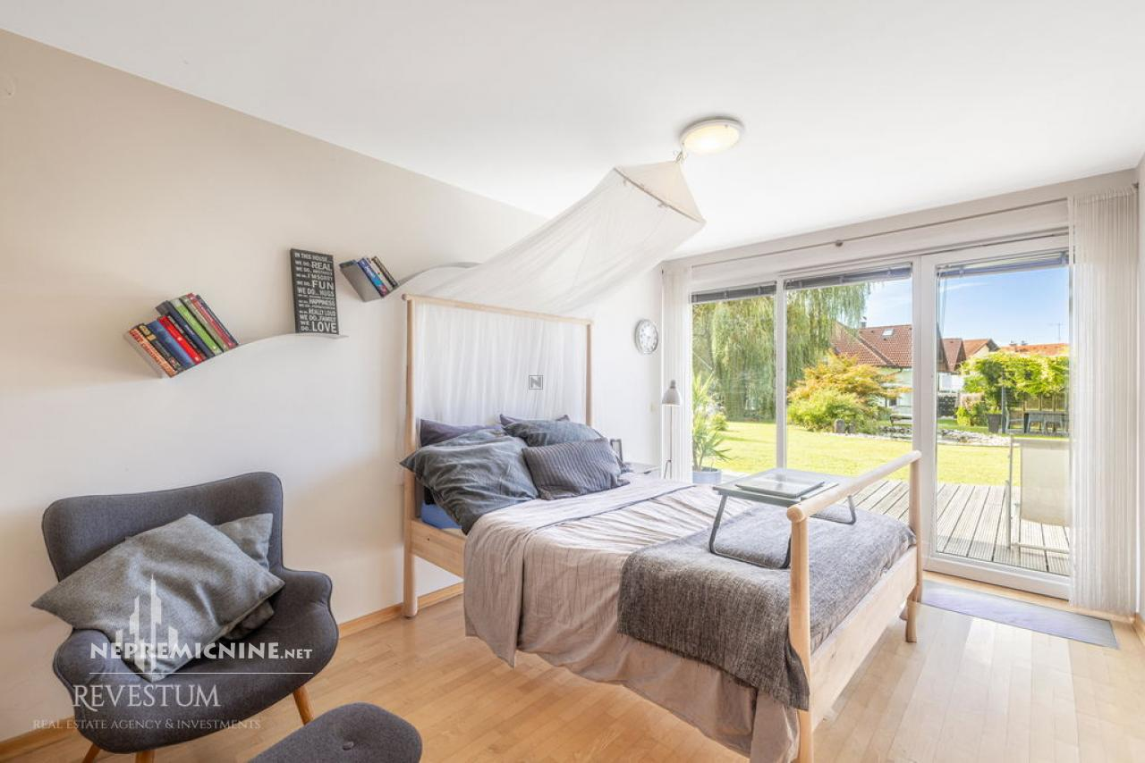 Op een rustige, groene locatie in Kranj bieden wij een deel van een dubbelfamiliehuis aan met een prachtige tuin en tal van voorzieningen voor een zorgeloos gezinsleven. Dit huis is ontworpen voor diegenen die heldere ruimtes, contact met de natuur en luxe extra’s waarderen – van een binnenzwembad en sauna tot panoramische terrassen en een volledig aangelegde tuin. De woning is volledig gerenoveerd en uitgebreid in 2003, met een zwembad en binnenplaats die in 2015 zijn vernieuwd. De indeling omvat een ruime woonkamer met keuken en eetkamer, 4 slaapkamers, 3 badkamers plus een extra toilet met urinoir, en een fitnessruimte op de bovenverdieping met toegang tot het binnenzwembad. De buitenruimte biedt een omheinde en verlichte binnenplaats, een garage voor 3 voertuigen, extra parkeerplaatsen, een kruidentuin en verwarmde kas, een decoratieve vijver, en een zomerkeuken met bakoven. Technische kenmerken omvatten een geavanceerde geothermische warmtepomp, vloerverwarming, en meerdere airconditioners. De woning biedt een intieme binnenplaats, een binnenzwembad, sauna en bubbelbad voor een ontspannende privéhoek die moeilijk elders te vinden is.