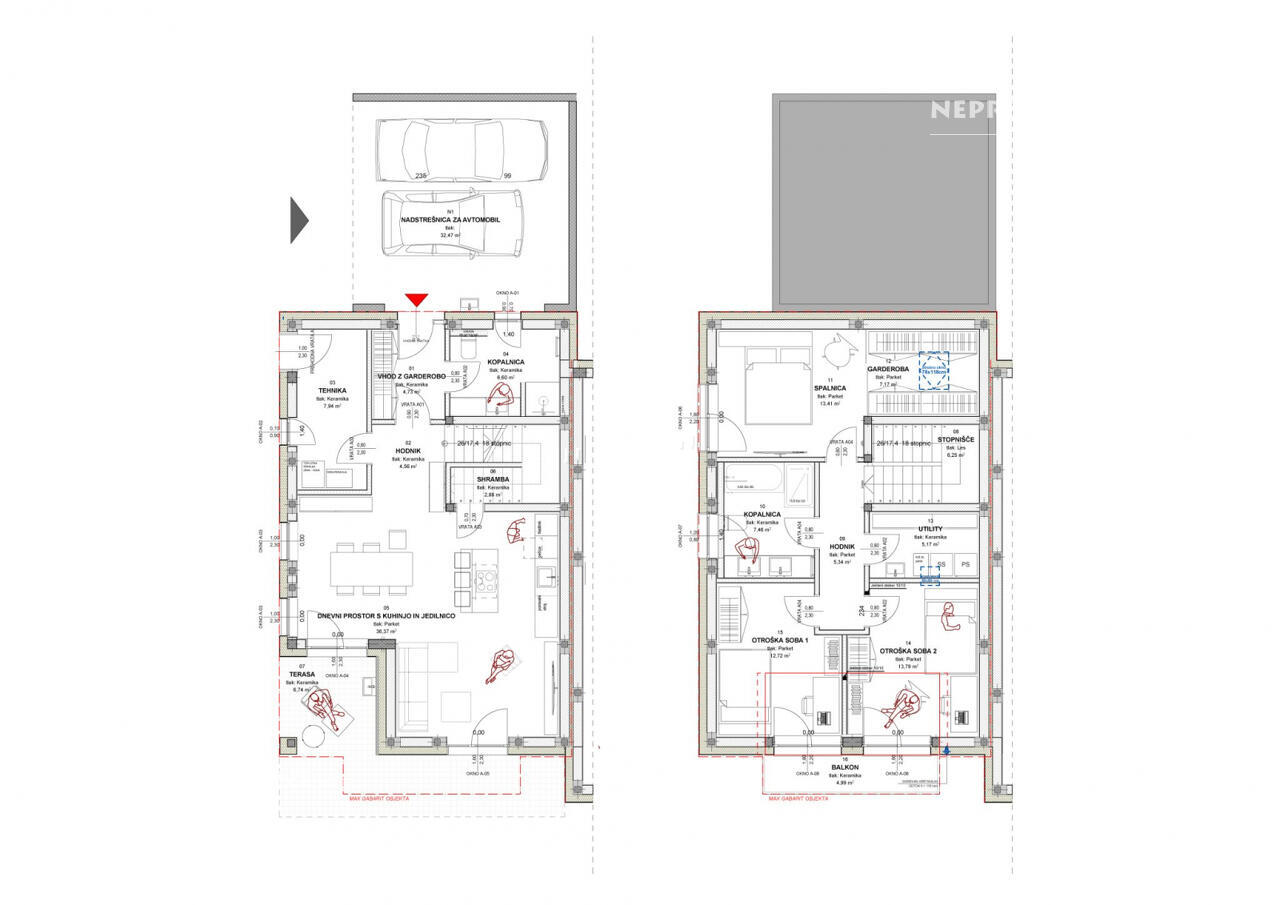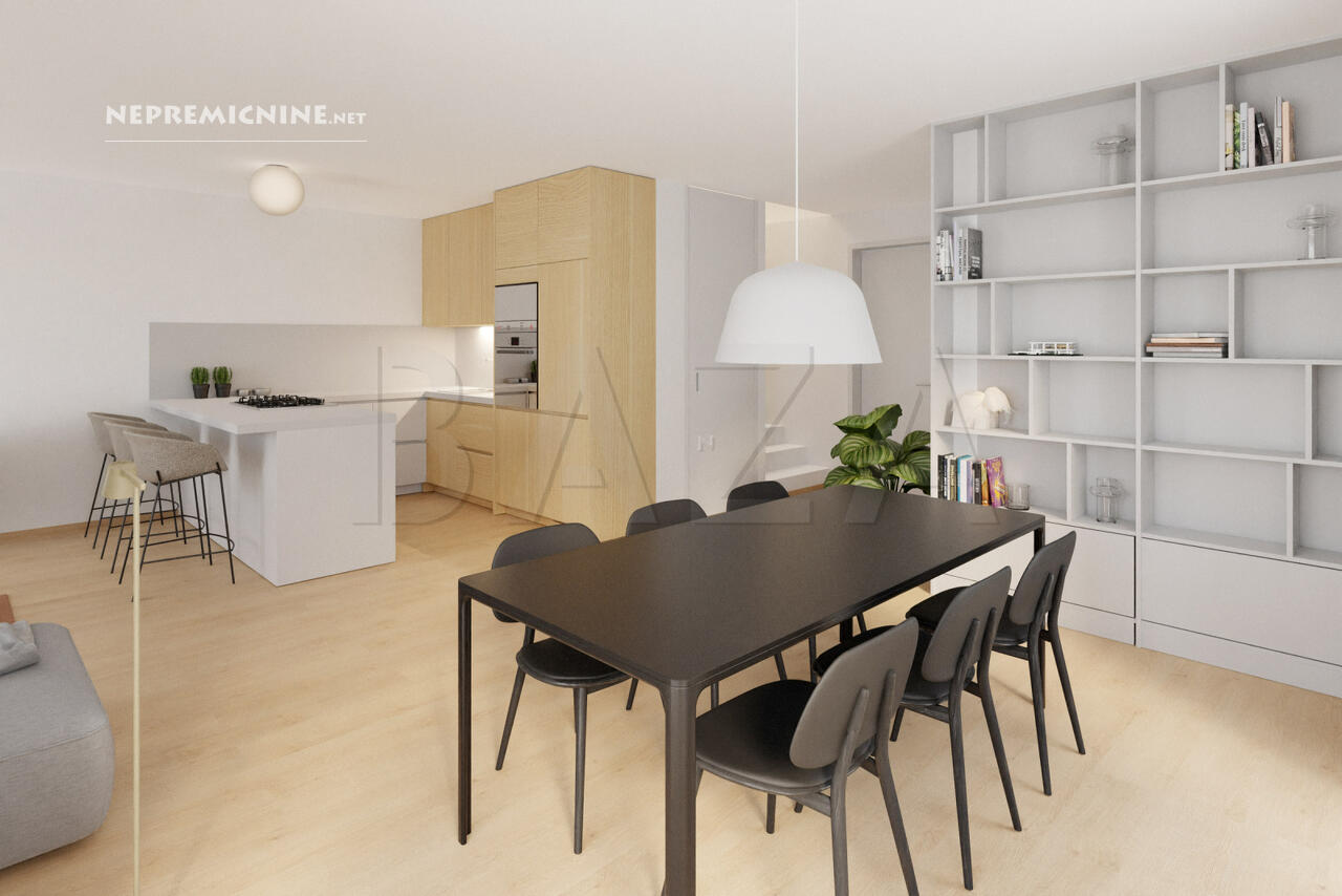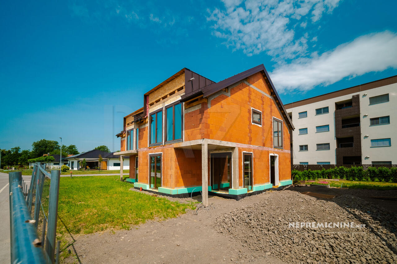 Ontdek deze prestigieuze en esthetisch verfijnde halfvrijstaande woning in het rustige centrum van Apače, Pomurska. Gebouwd in 2025, biedt deze woning een netto vloeroppervlak van 146,12 m² en een perceel van 80 m². De woning is ontworpen met een bijna energieneutrale benadering, met een klassieke bakstenen constructie en een zadeldak. Geniet van de nabijheid van essentiële voorzieningen zoals een park, sportfaciliteiten, een kleuterschool, winkels, een apotheek, een school en een postkantoor. De woning beschikt over een individuele warmtepomp voor vloerverwarming en koeling, evenals een centraal ventilatiesysteem met uitstekende technische eigenschappen. De ramen zijn voorzien van driedubbel glas met elektrische aluminium jaloezieën. Binnenin vindt u hoogwaardige eiken parketvloeren en keramiek, en de badkamers zijn uitgerust met topmerken zoals Villery Boch en Geberit. De indeling omvat een ruime woonkamer met keuken en eetkamer, een opslagruimte, en een terras op de begane grond, terwijl de bovenverdieping drie slaapkamers, een badkamer, en een balkon biedt. Er zijn twee overdekte parkeerplaatsen beschikbaar, en een carport kan worden bijgekocht. Mis deze kans niet om te investeren in een woning die comfort en kwaliteit van leven biedt in een regio die bekend staat om zijn serene omgeving en gemakkelijke toegang tot voorzieningen.