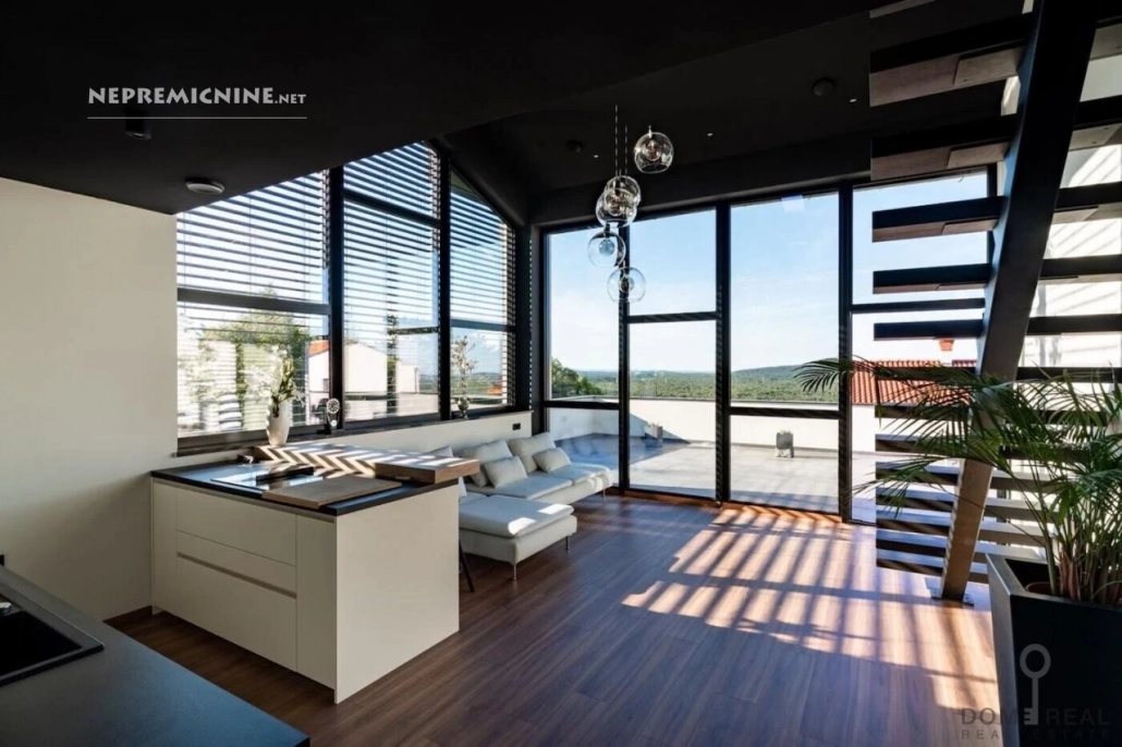 Dit is een unieke kans voor veeleisende kopers die op zoek zijn naar een moderne, esthetisch verfijnde en ruime woning op een rustige, maar toch zeer toegankelijke locatie in Sežana.