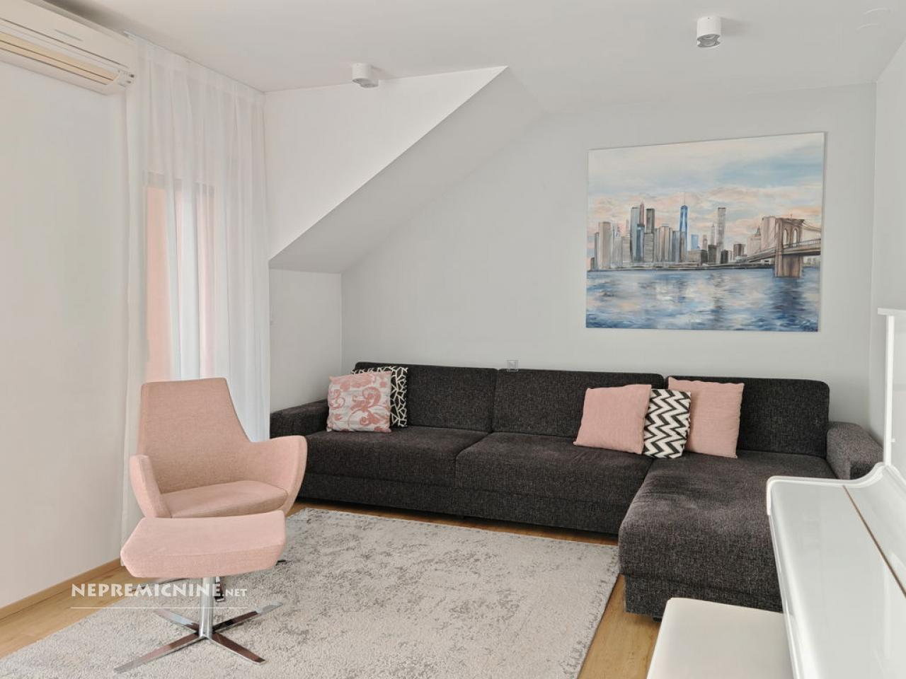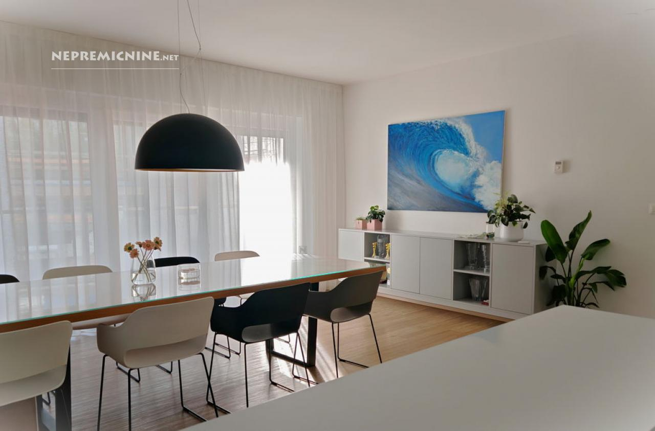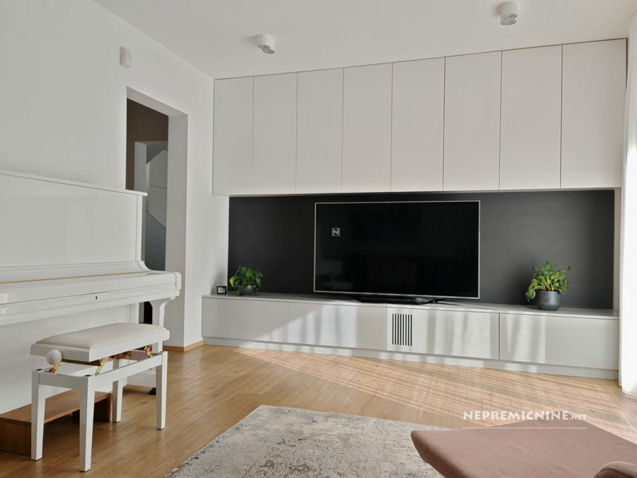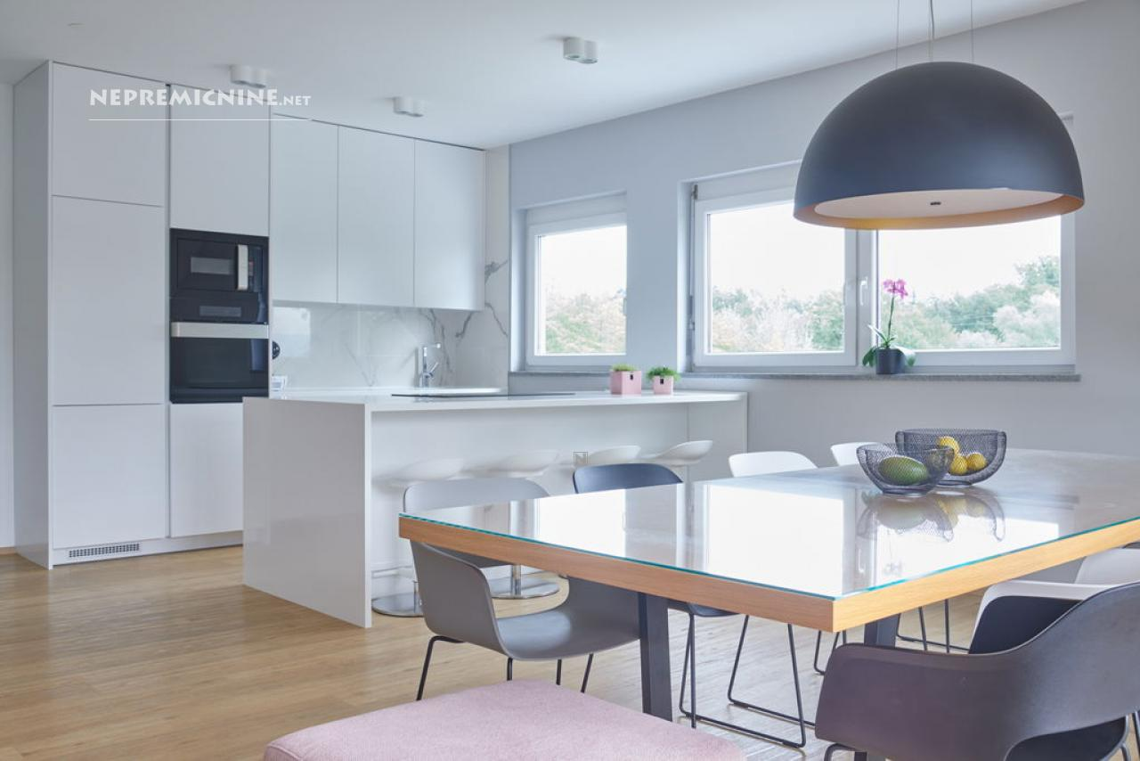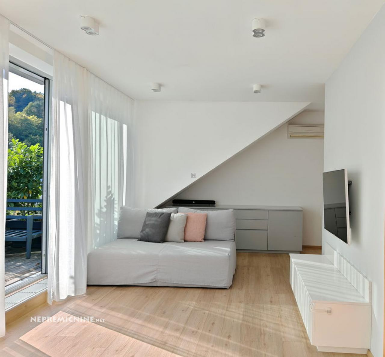 In de rustige en groene omgeving van Podutik, aan de rand van de natuur, bieden wij een uitzonderlijk ruim en licht 6-kamer appartement aan, verdeeld over twee verdiepingen in een villa met slechts enkele wooneenheden. Het appartement, gebouwd in 2003 en volledig gerenoveerd in 2017, is op maat ontworpen met een architect, wat resulteert in een doordachte plattegrond, hoogwaardige materialen en een tijdloze esthetiek. Het appartement beschikt over een totale oppervlakte van 300 m², waarvan 144 m² bruikbare oppervlakte. Het heeft 2 slaapkamers, een keuken met eetkamer, 2 woonkamers, een kantoor, 3 badkamers met toilet, en 2 kleedruimtes. Er zijn twee ruime terrassen met groenvoorzieningen en twee parkeerplaatsen in de garage. Het appartement is voorzien van vloerverwarming, airconditioning en een alarmsysteem voor de veiligheid van het gehele appartement. Het is volledig op maat ingericht en direct bewoonbaar. De locatie biedt directe nabijheid van de natuur, ideaal voor wandelingen en recreatie, met nabijgelegen paden naar Klobuk. In de buurt zijn twee Montessori-kleuterscholen, een winkel en een basisschool in Koseze. Er is een verbinding met stadsbus nummer 5. Het appartement is direct beschikbaar en geschikt voor gezinnen, individuen met een gevoel voor esthetiek of als prestigieuze investering.