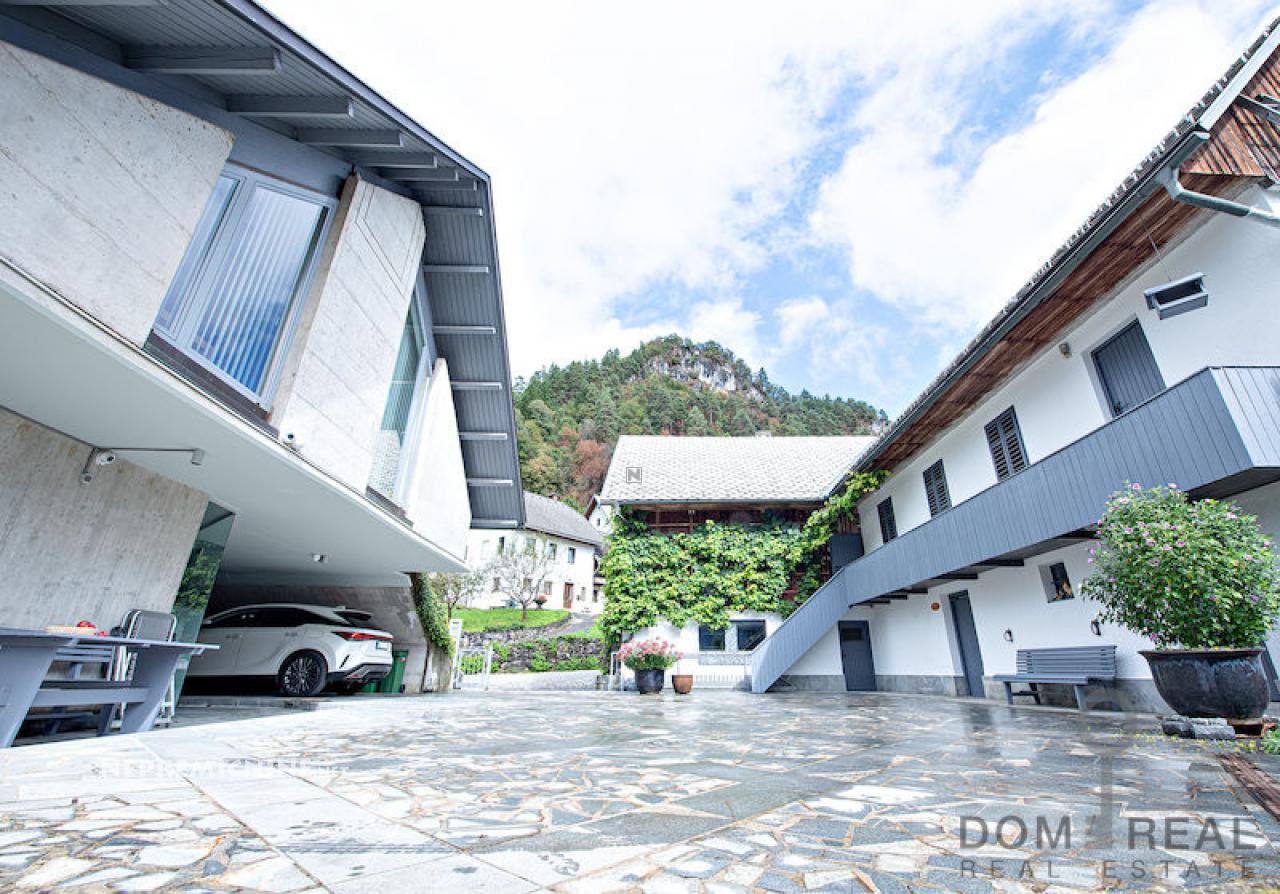 Dit uitzonderlijke landgoed aan het Meer van Bled biedt adembenemende panoramische uitzichten op de weelderige omgeving en majestueuze bergen. Het landgoed omvat twee woongebouwen, een weide, boomgaard, vijver, privépark, parkeerplaatsen, stallen, schuur en een prachtig bosgebied. De hoofdresidentie, gebouwd in 1985 en gerenoveerd in 2022, straalt bescheiden elegantie uit met drie verdiepingen en een oppervlakte van 578 m². Het beschikt over vier luxe slaapkamers, twee sauna’s en een wijnkelder. De secundaire woning, een moderne alpenstijl uitbreiding, biedt een elegant tweeverdiepingenappartement van 163 m². Het landgoed heeft een veelzijdig verwarmingssysteem en een nieuwe zonne-energie-installatie. Gelegen nabij het toeristische hoogtepunt van Bled, biedt het gemakkelijke toegang tot winkels, restaurants en transportmogelijkheden.