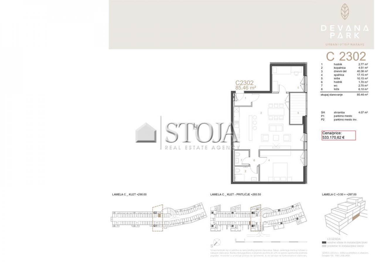 Ontdek het moderne leven in het prestigieuze Devana Park II, gelegen op de hellingen van Golovec in het centrum van Ljubljana. Dit prachtige 3-kamer appartement van 89,53 m² biedt een perfecte balans tussen stedelijk gemak en natuurlijke rust. Geniet van de ruime indeling met grote glazen oppervlakken en een balkon dat een adembenemend uitzicht op de stad en de Alpen biedt. De wijk biedt een rustige omgeving dicht bij het stadscentrum, met gemakkelijke toegang tot alle voorzieningen die Ljubljana te bieden heeft. De regio staat bekend om zijn rijke culturele erfgoed en biedt tal van toeristische attracties zoals het kasteel van Ljubljana en de pittoreske oude binnenstad. Het appartement is voorzien van hoogwaardige materialen en is klaar voor onmiddellijke bewoning, zonder wachttijd of risico op vertragingen. Inclusief parkeerplaats en berging. Mis deze kans niet om te wonen in een van de meest gewilde locaties van de stad.