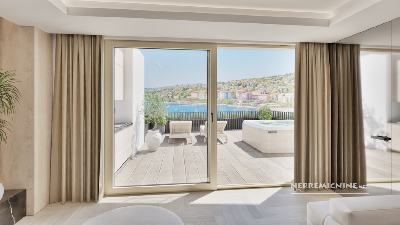 Dit exclusieve nieuwbouwproject in Portorož biedt een unieke kans om te wonen in een luxe appartement met een adembenemend uitzicht op zee. Gelegen op een toplocatie, direct aan de kust, biedt elke residentie ruime privéterrassen met panoramische uitzichten, waardoor een harmonieuze verbinding ontstaat tussen de verfijnde binnenruimtes en de serene buitenomgeving. Het project, dat in de herfst van 2025 van start gaat, omvat slechts acht luxe woningen, ontworpen met oog voor privacy, comfort en tijdloze elegantie. De appartementen variëren van 140 tot 270 m² en zijn ideaal voor veeleisende kopers die op zoek zijn naar stijl en inhoud. De hoogwaardige bouw en verfijnde afwerking, van topmaterialen tot elegante design details, maken deze woningen perfect voor zowel permanente bewoning als een exclusief vakantieverblijf. De ondergrondse garage biedt extra comfort, veiligheid en discretie. Portorož, gelegen in de regio Zuid-Primorska, is een populaire toeristische bestemming met prachtige stranden, uitstekende restaurants en diverse winkels. De regio biedt ook goede vervoersmogelijkheden en een levendige buurt met een rijke culturele geschiedenis.