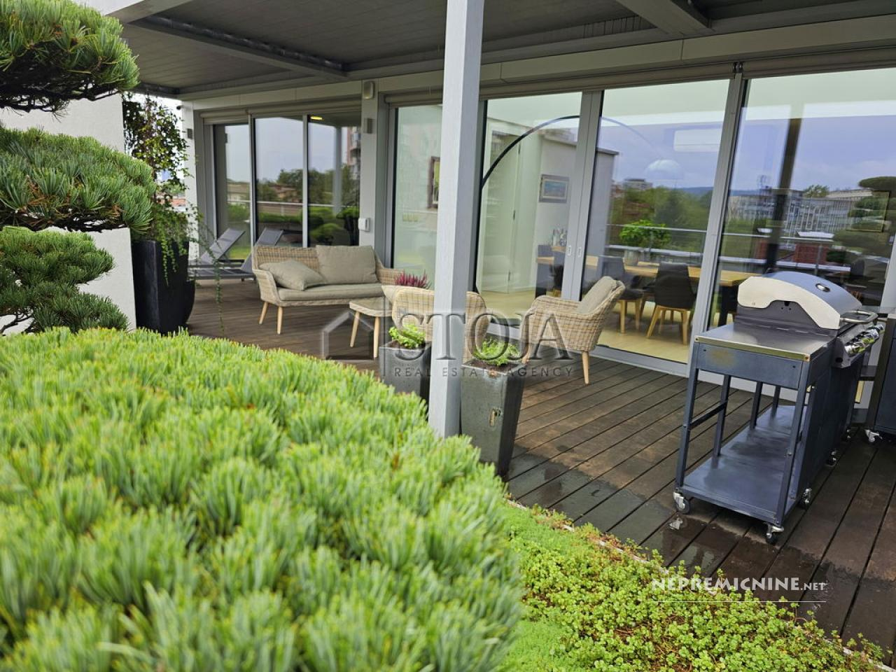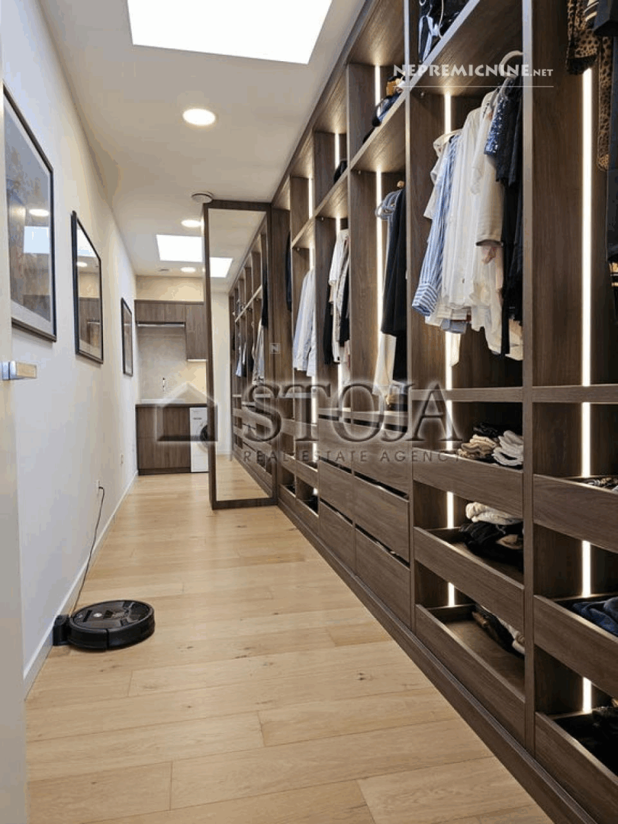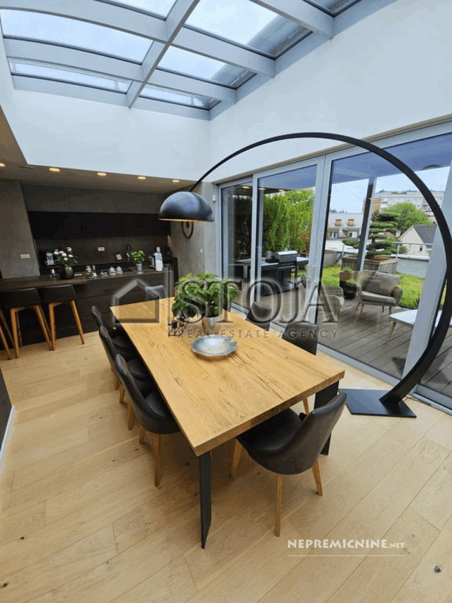 Met een royale oppervlakte van 259,7 m², inclusief een prachtig ontworpen terras en tuin, is dit appartement een zeldzame vondst. Het penthouse, gebouwd in 2018, bevindt zich op de bovenste verdieping van een moderne residentie en biedt adembenemende uitzichten en overvloedig natuurlijk licht. De locatie is ideaal voor diegenen die willen genieten van de nabijheid van het stadscentrum, terwijl ze ook profiteren van de nabijheid van winkels, scholen, en recreatiegebieden. De woning is volledig uitgerust met vloerverwarming, airconditioning, en een eigen gassysteem voor verwarming. De luxe afwerking en op maat gemaakte meubels maken dit appartement tot een waar juweeltje.