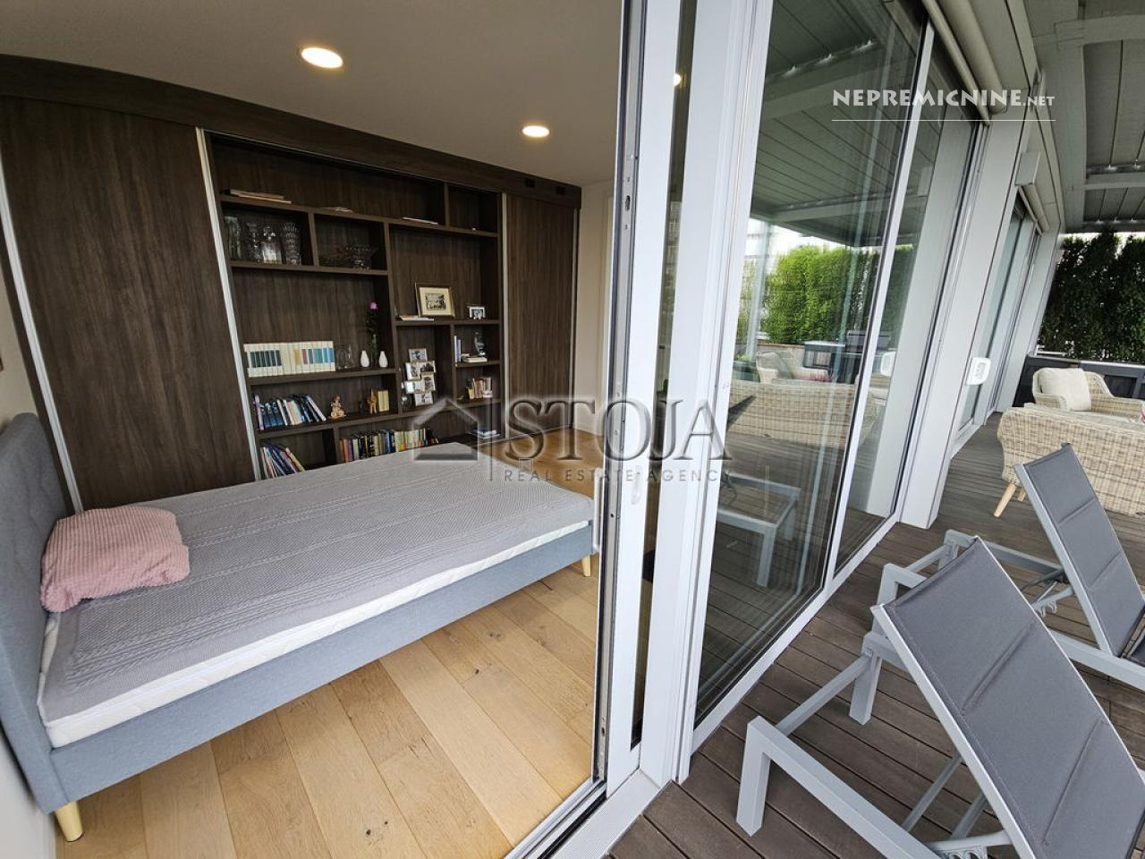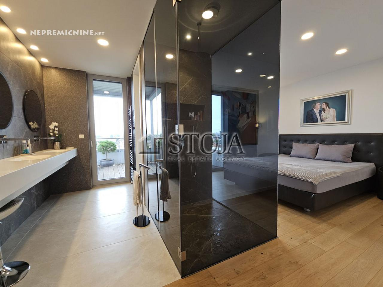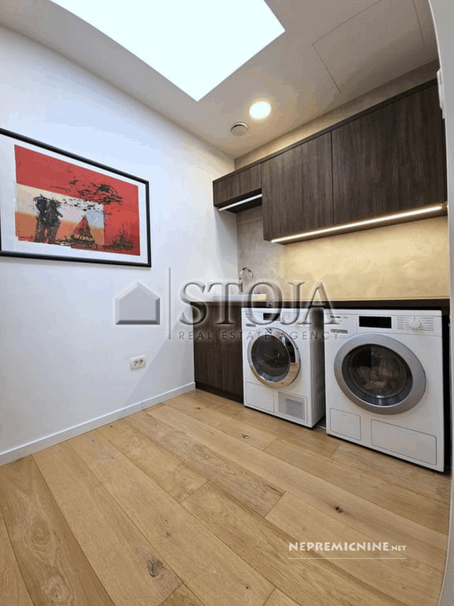 Met een royale oppervlakte van 259,7 m², inclusief een prachtig ontworpen terras en tuin, is dit appartement een zeldzame vondst. Het penthouse, gebouwd in 2018, bevindt zich op de bovenste verdieping van een moderne residentie en biedt adembenemende uitzichten en overvloedig natuurlijk licht. De locatie is ideaal voor diegenen die willen genieten van de nabijheid van het stadscentrum, terwijl ze ook profiteren van de nabijheid van winkels, scholen, en recreatiegebieden. De woning is volledig uitgerust met vloerverwarming, airconditioning, en een eigen gassysteem voor verwarming. De luxe afwerking en op maat gemaakte meubels maken dit appartement tot een waar juweeltje.