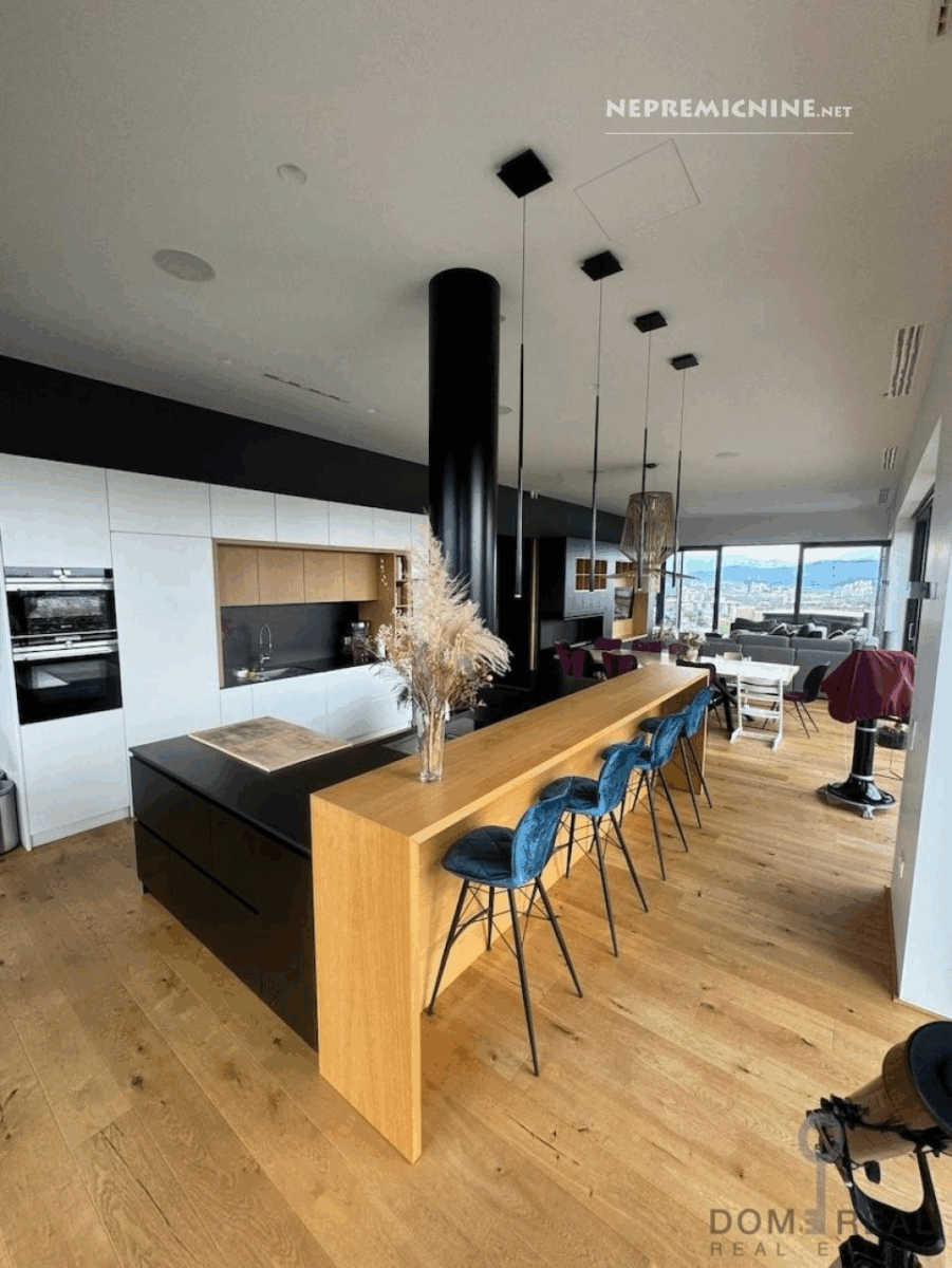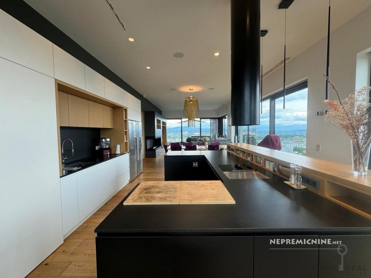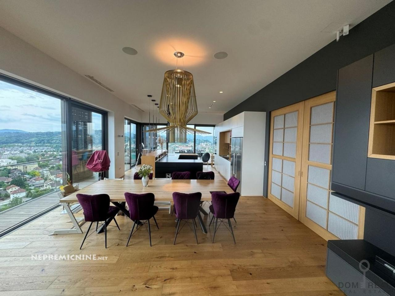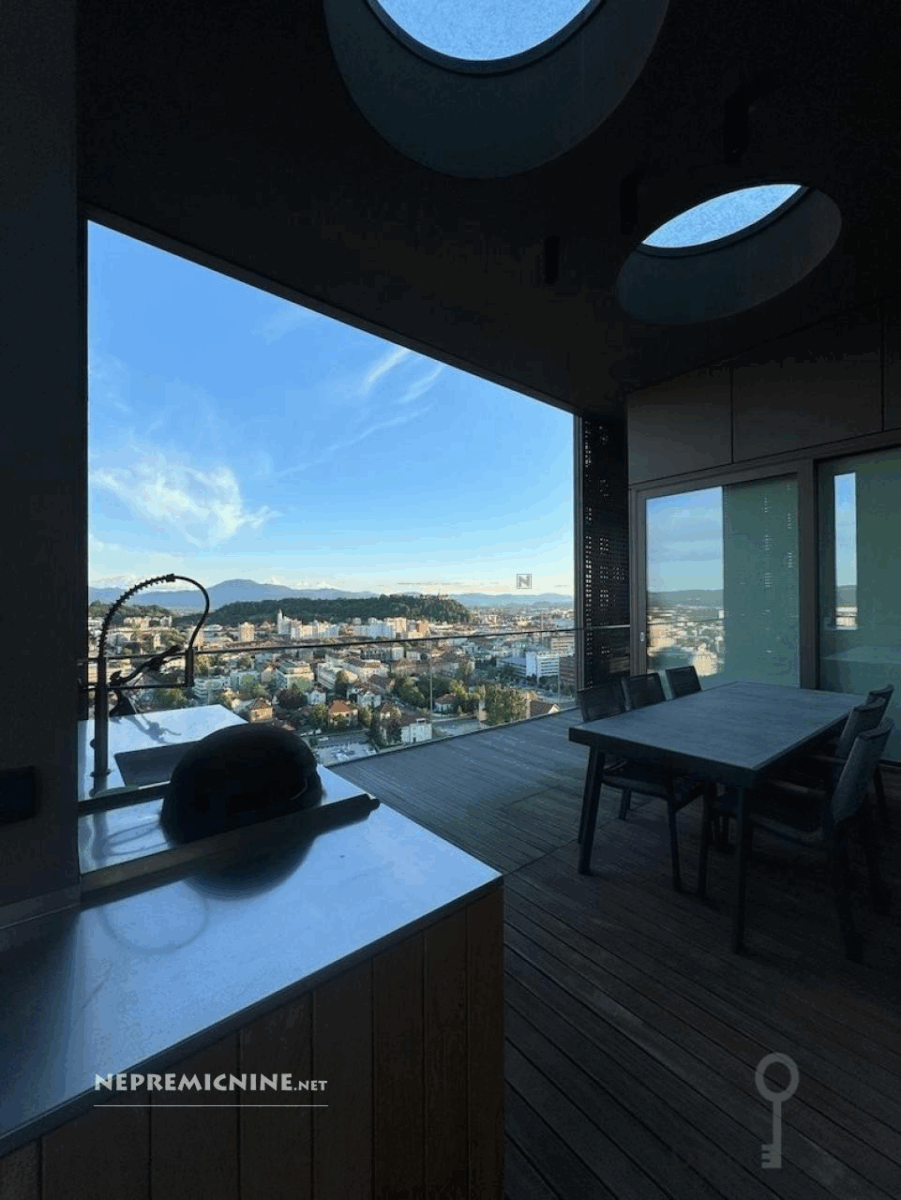 Dit uitzonderlijke penthouse appartement in Ljubljana Bežigrad biedt een ongeëvenaard uitzicht op de Alpen en het kasteel van Ljubljana.
