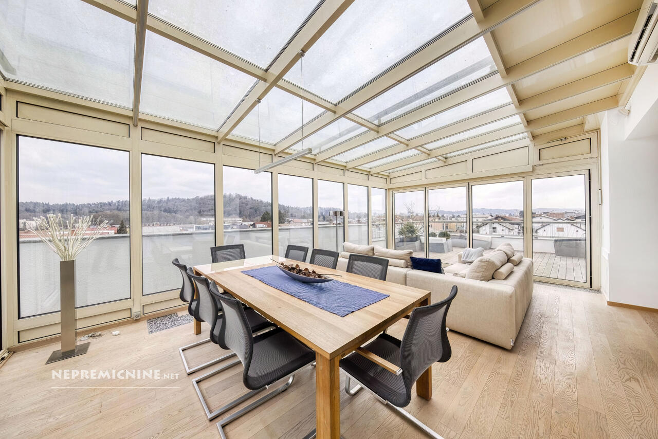 Ontdek de ultieme luxe in dit prachtige penthouse in Ljubljana Vič. Met een royale oppervlakte van 201,5 m² biedt dit vierkamerappartement een ongeëvenaarde elegantie en comfort. De moderne keuken met een luxe eiland en geavanceerde apparatuur, waaronder een wijnkoelkast, is perfect voor culinaire liefhebbers. Geniet van de ruime woonkamer en de glazen wintertuin met vloerverwarming en zonwering. De hoofdslaapkamer biedt een privé-oase met een inloopkast en luxe badkamer. Dit penthouse beschikt over drie slaapkamers, twee badkamers, een apart toilet, een balkon, een terras en drie eigen parkeerplaatsen. Gelegen tussen Rožna dolina en Brdo, biedt het een rustige en elegante omgeving. Nabijgelegen voorzieningen omvatten winkels, restaurants en uitstekende vervoersverbindingen. Ljubljana, de hoofdstad van Slovenië, staat bekend om zijn rijke geschiedenis, culturele bezienswaardigheden en bruisende stadsleven.